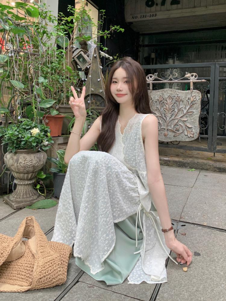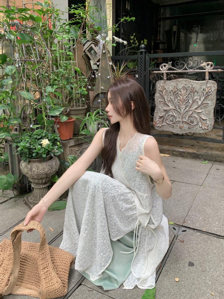 Falda verde con tirantes: largo de la falda 118CMBandolera:Ajustable, no desmontablePecho 90CM