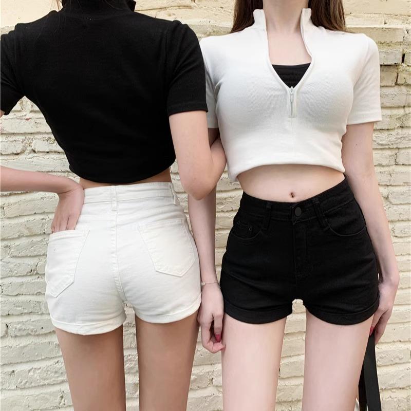 Jeans de Mujer Cintura Baja Pantalones Rectos Negros Otoño Combinación Total Cadera Pantalones Calientes Ajustados Adelgazantes Casuales Super Shorts