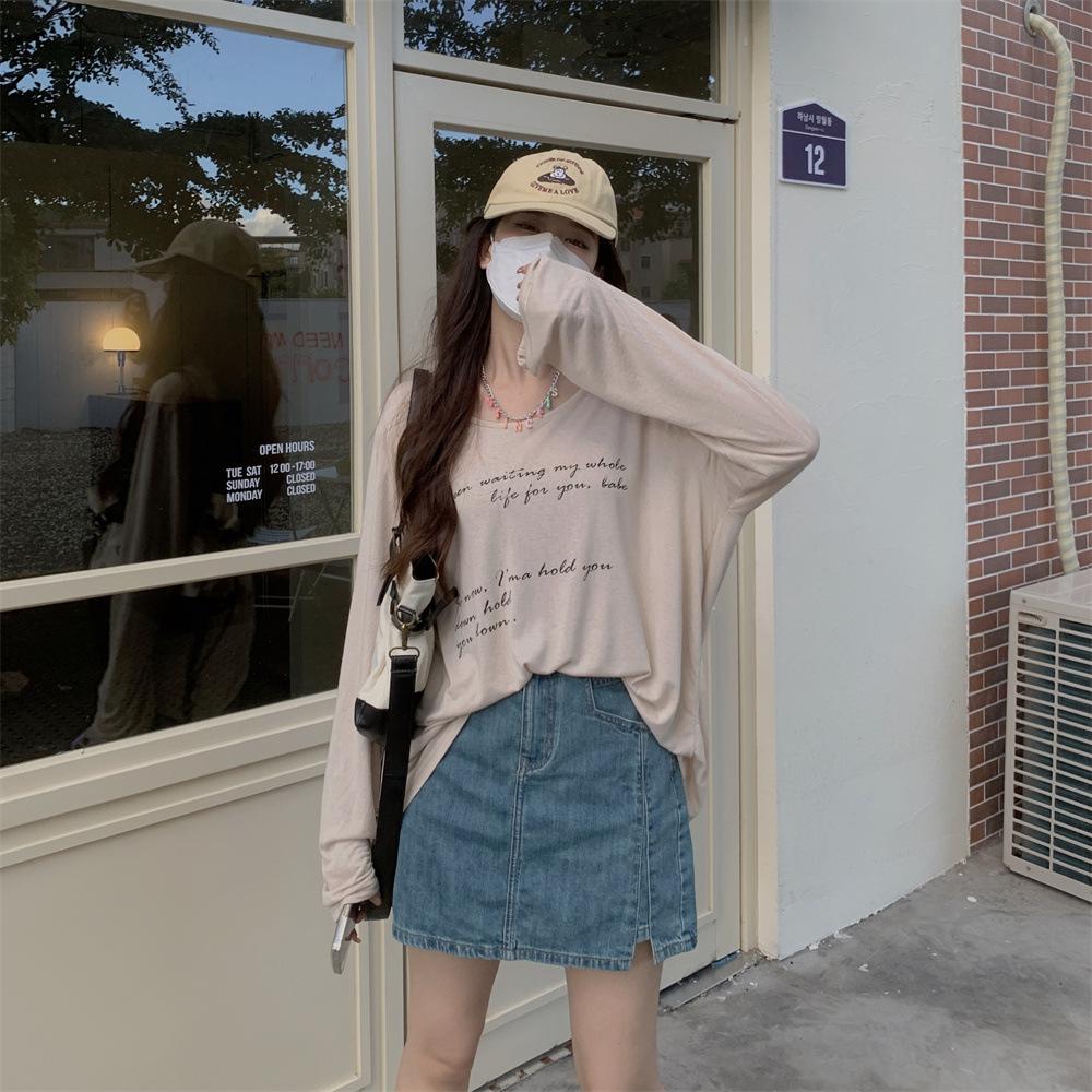 Talla Grande Elegante, Versátil Falda A-Line con Abertura Antiexposición de Mezclilla Estilo Coreano de Cintura Alta con Aspecto Adelgazante Falda Ajustada a las Caderas