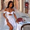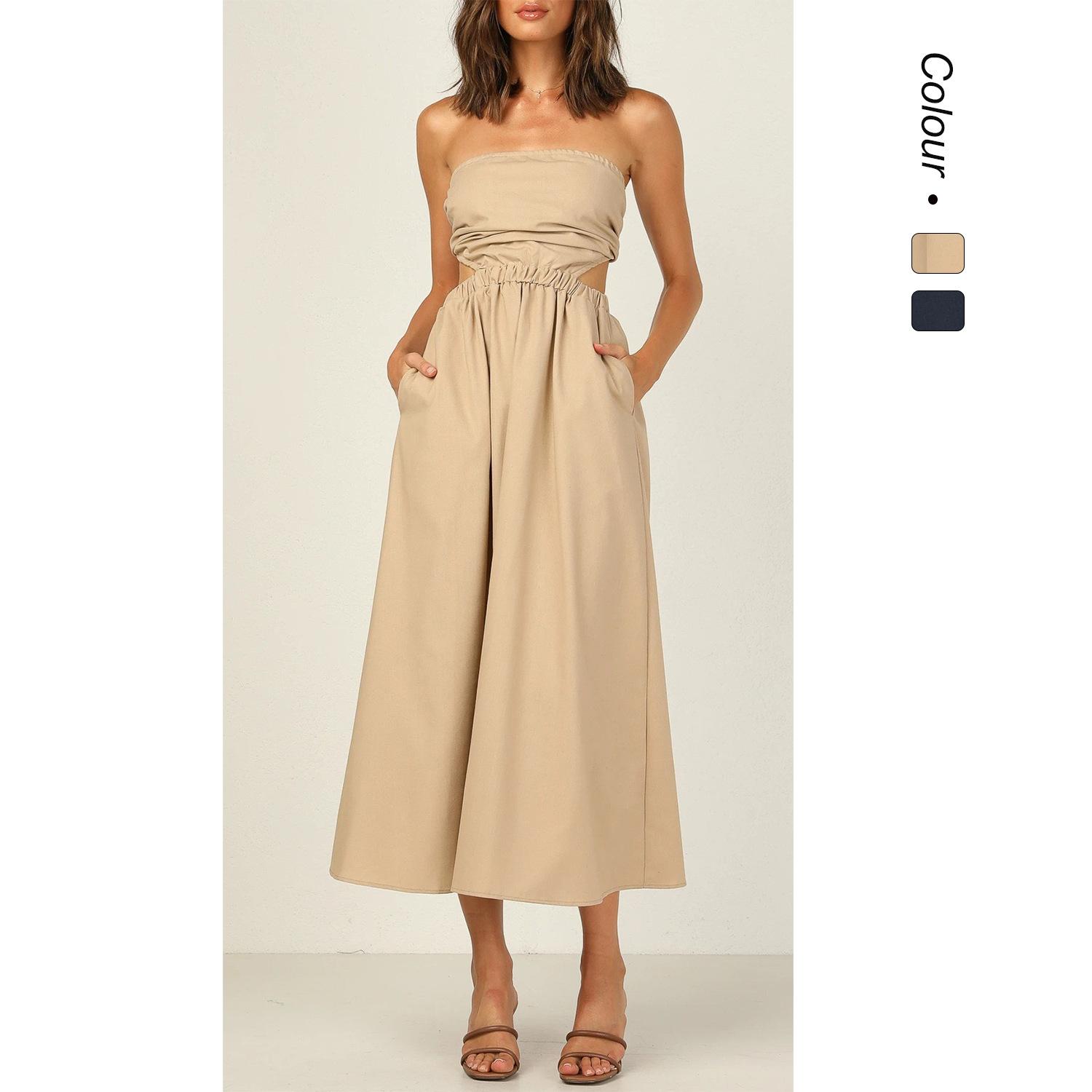 2025 Europeo y Americano Transfronterizo Primavera y Verano Nuevo Vestido Sexy Tendencia con Hombros Descubiertos Color Puro Envuelto al Pecho 22035