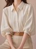 Camisa de manga farol a rayas color albaricoque, estilo occidental, francesa, elegante y de alta gama, de lujo, antiedad, nueva, 2025