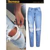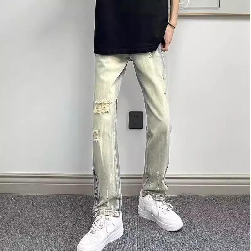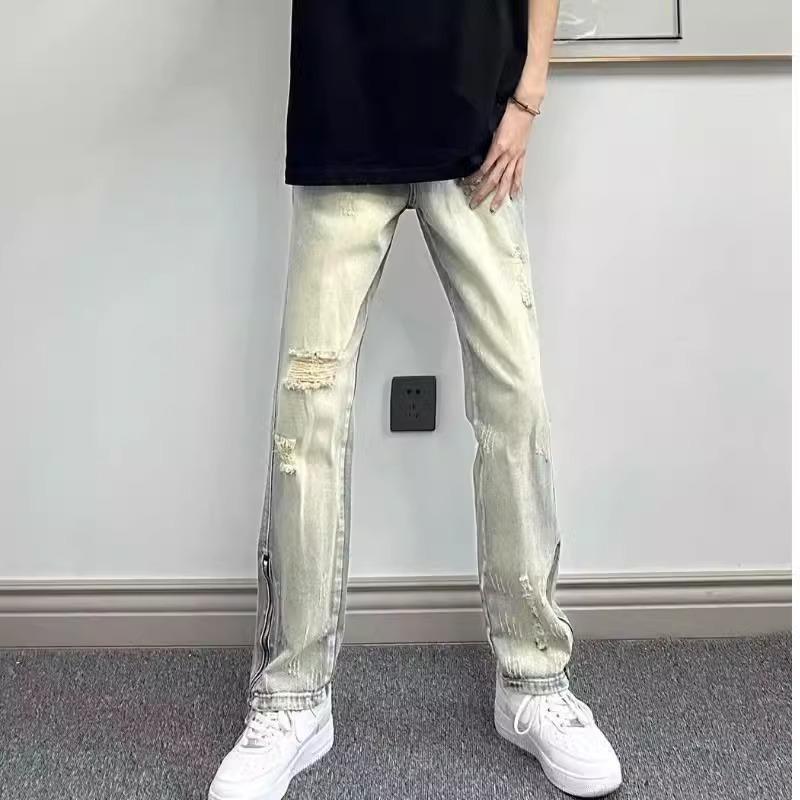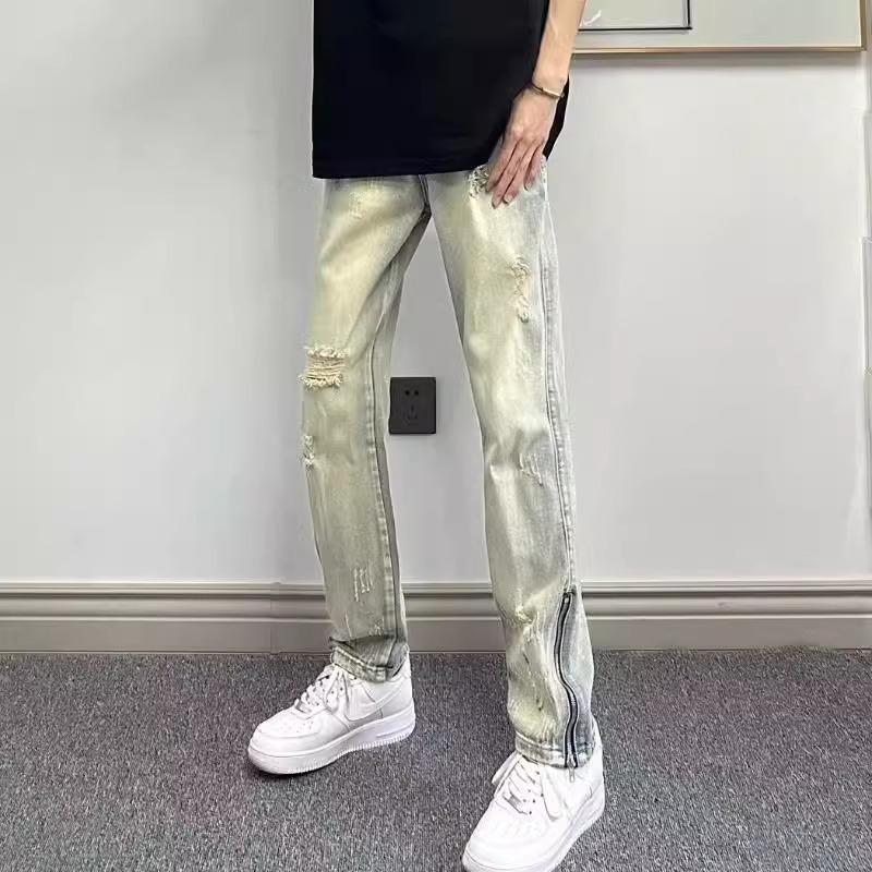 Pantalones vaqueros rotos de primavera y otoño para mujer, populares en Internet, estilo americano, de calle, con cremallera lateral, lavados, ajustados y rectos.