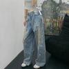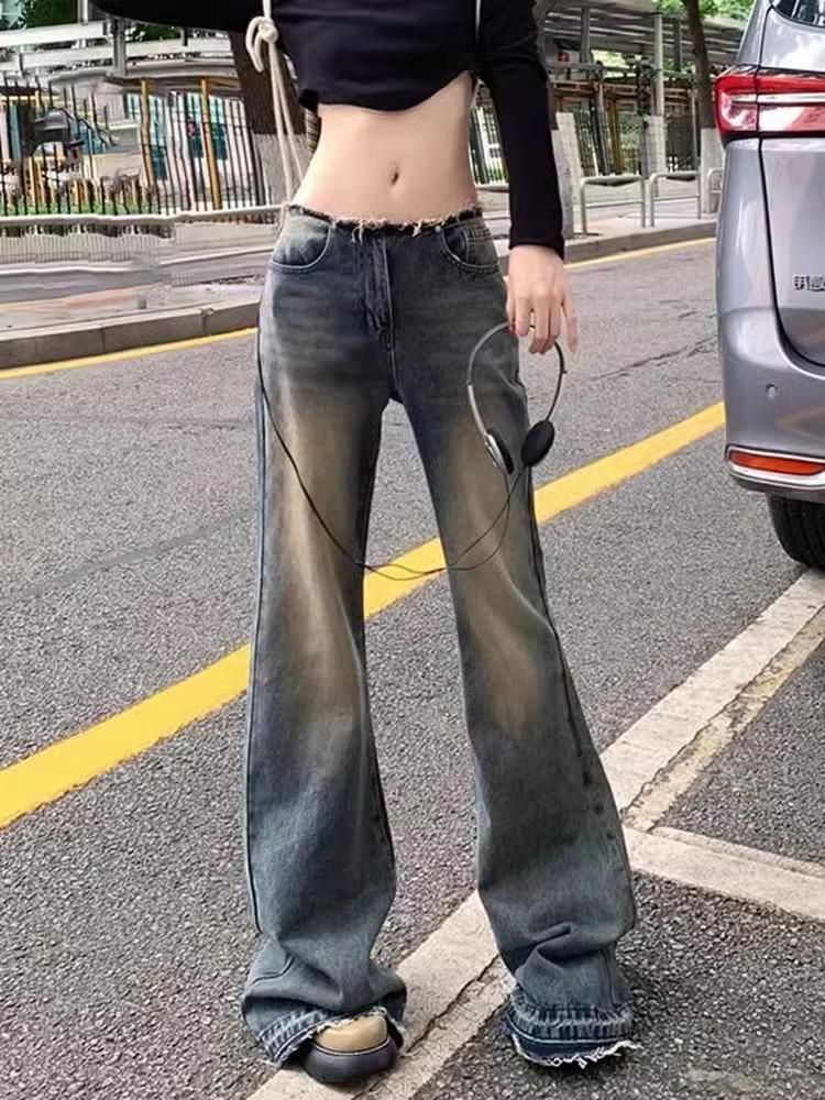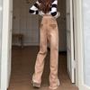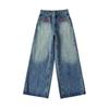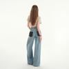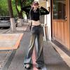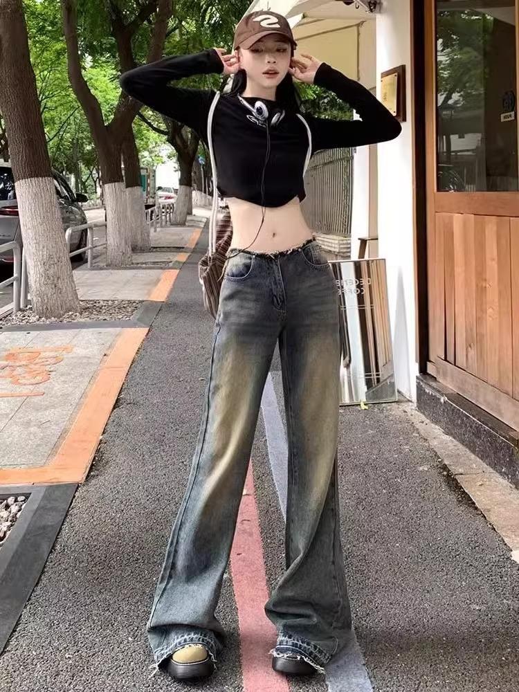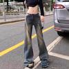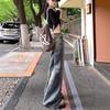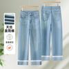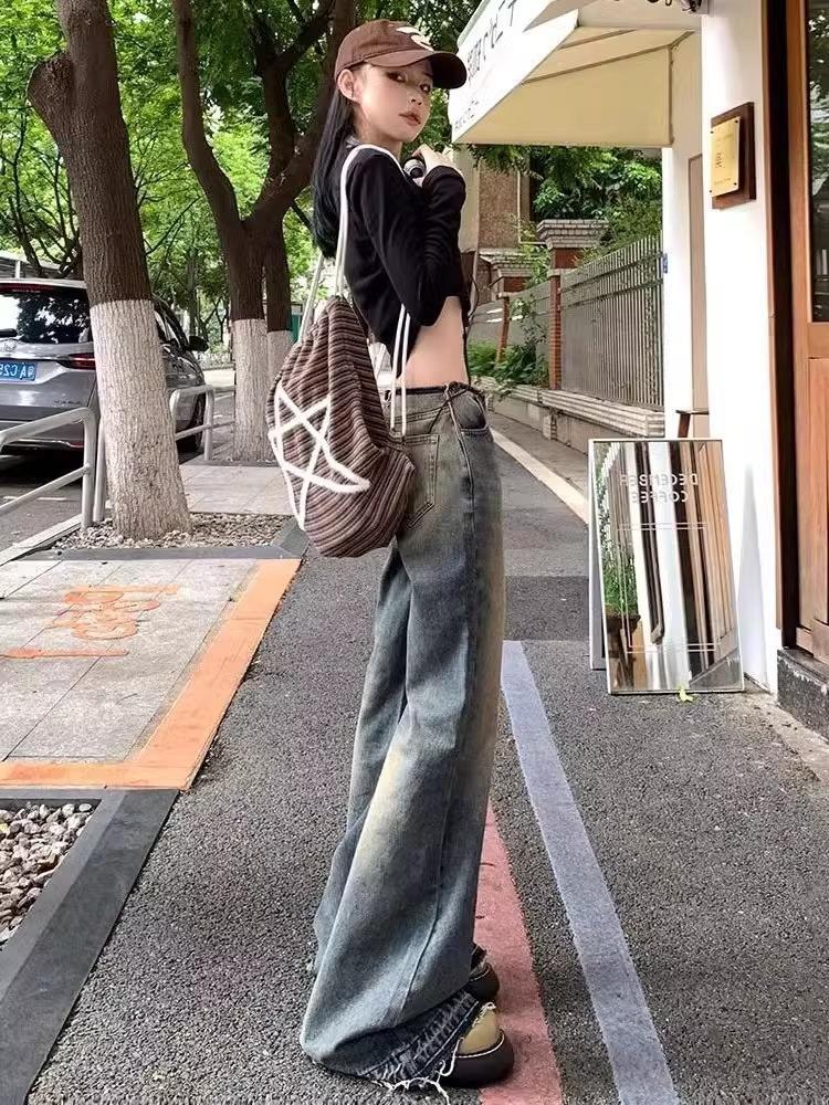 Pantalones vaqueros rectos de mujer estilo americano vintage azul lavado con tres rayas para otoño e invierno 2025
