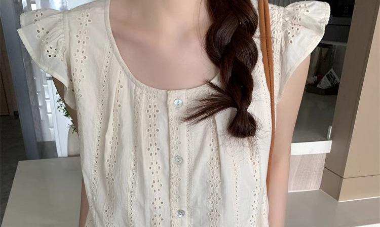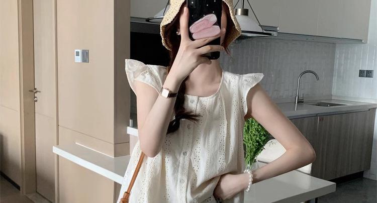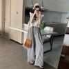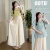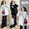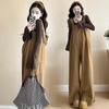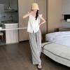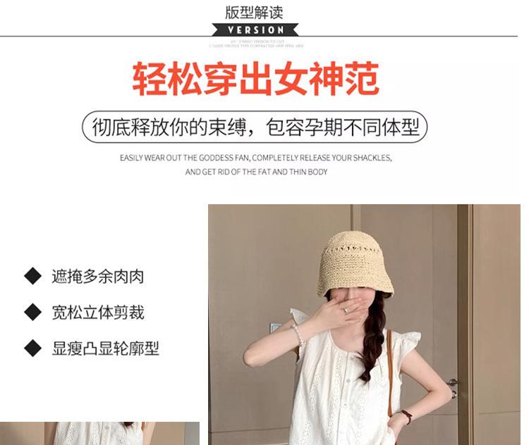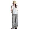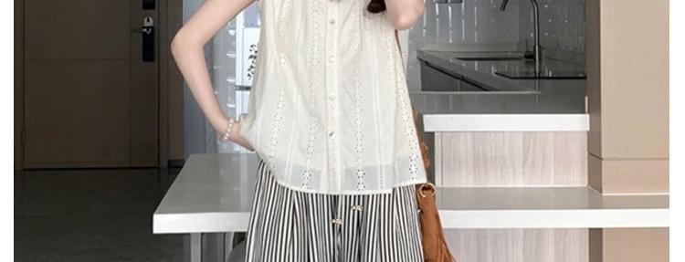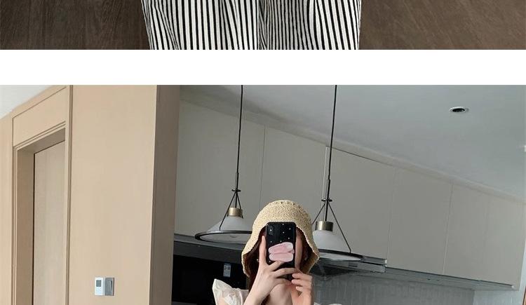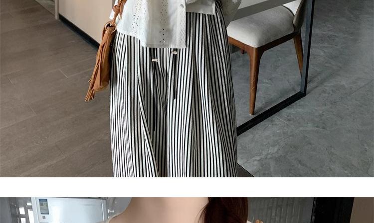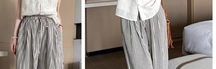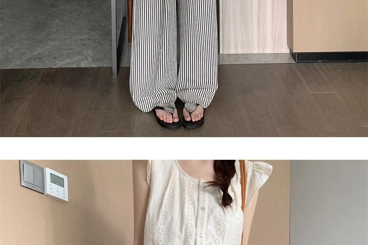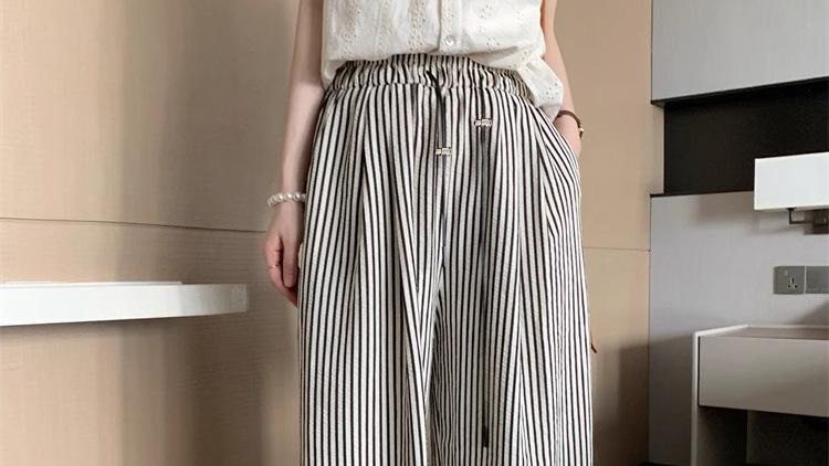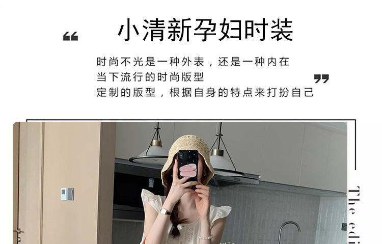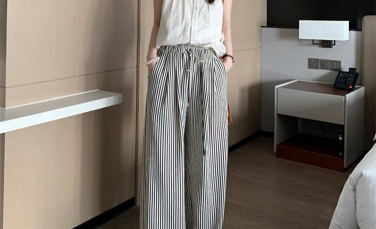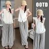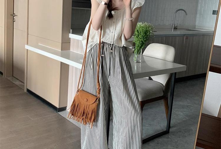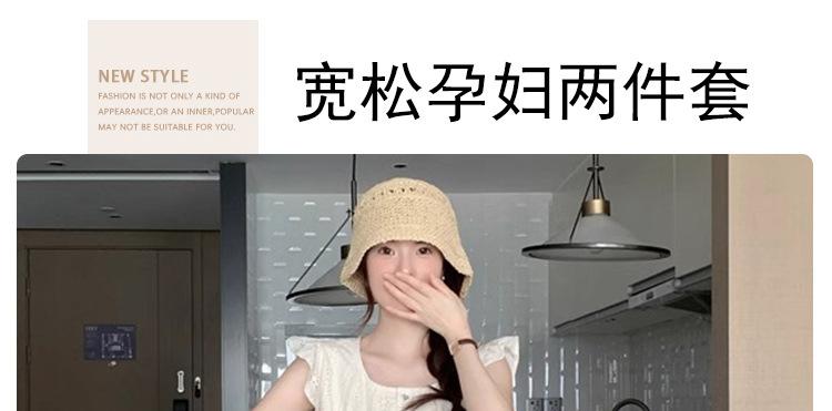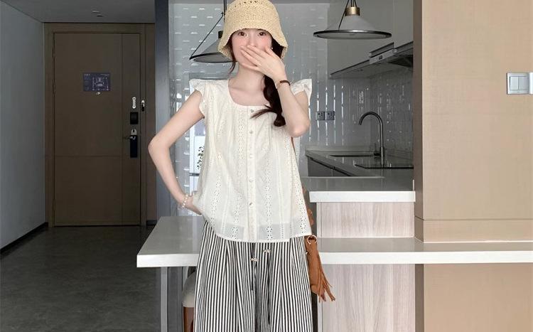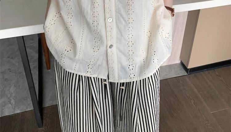 En stock 2025 Verano Encaje Soluble en Agua Camisa Pequeña para Mujeres Embarazadas Pantalones de Pierna Ancha a Rayas Traje para Mujeres Embarazadas