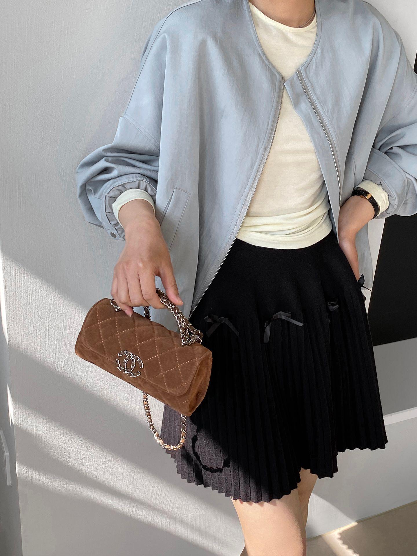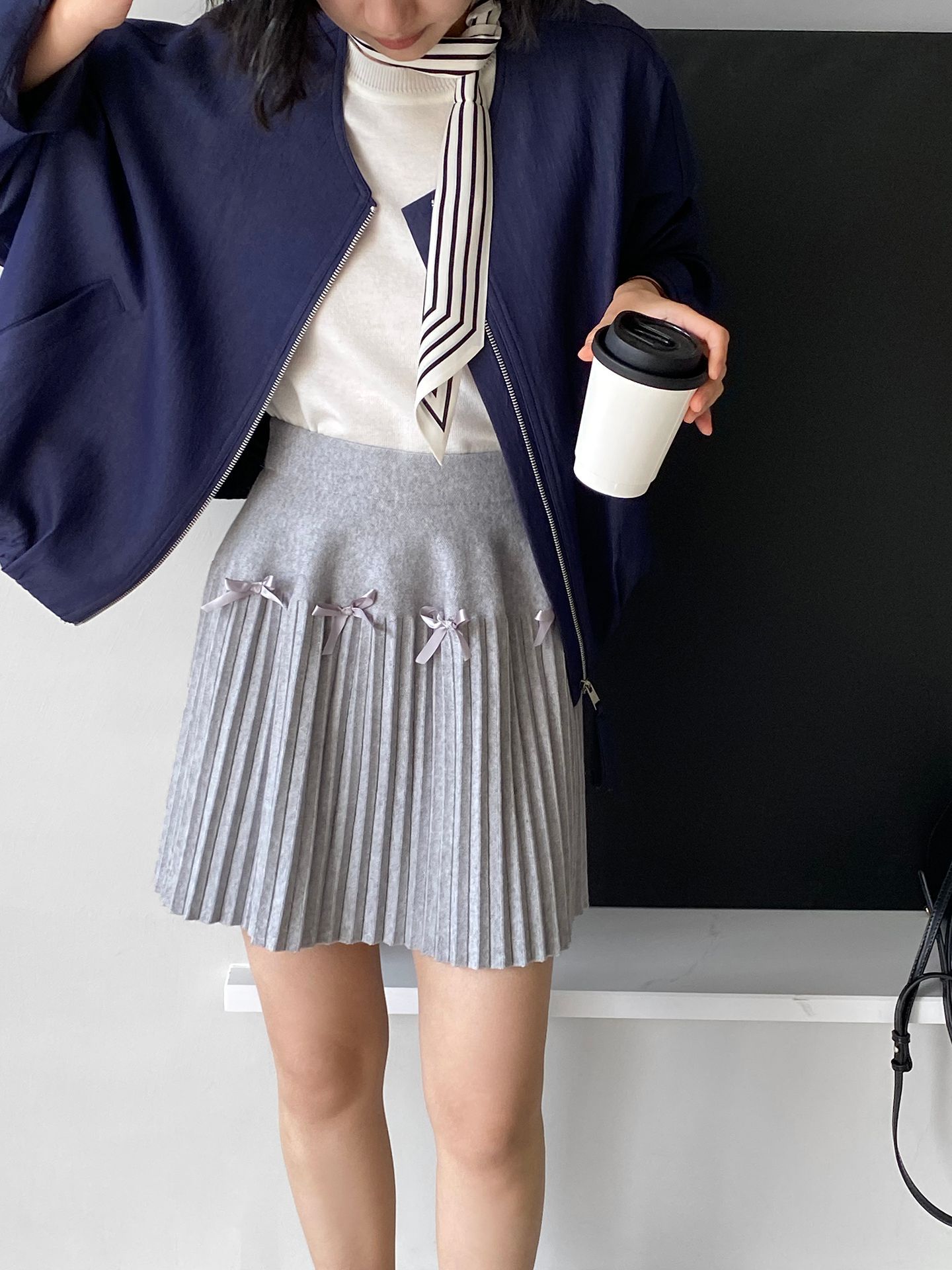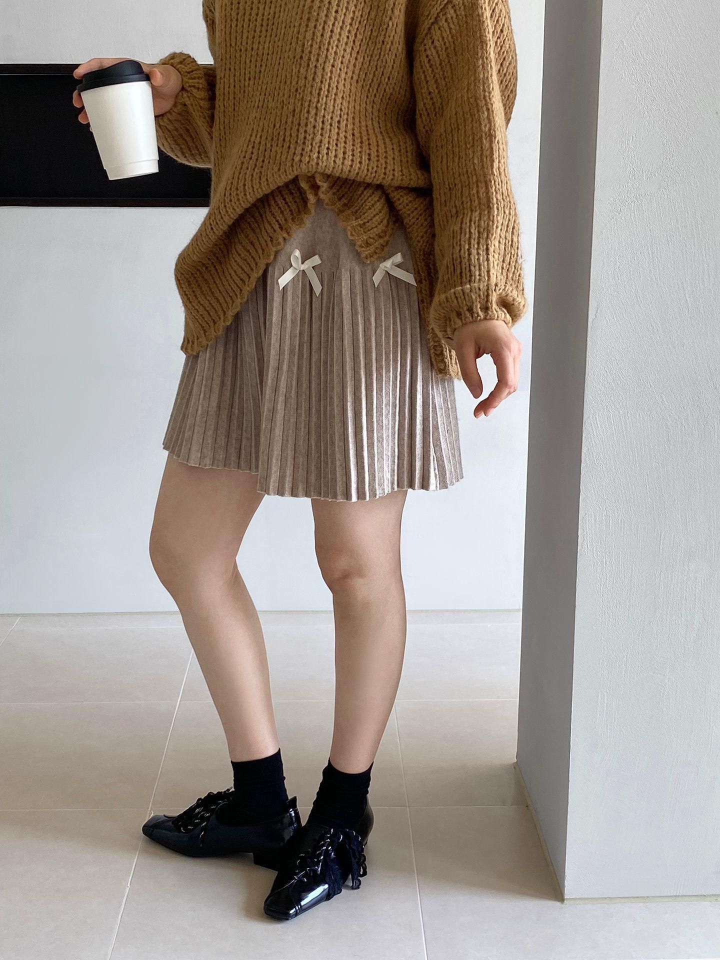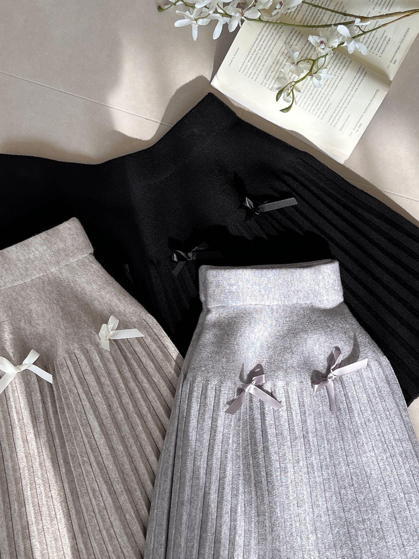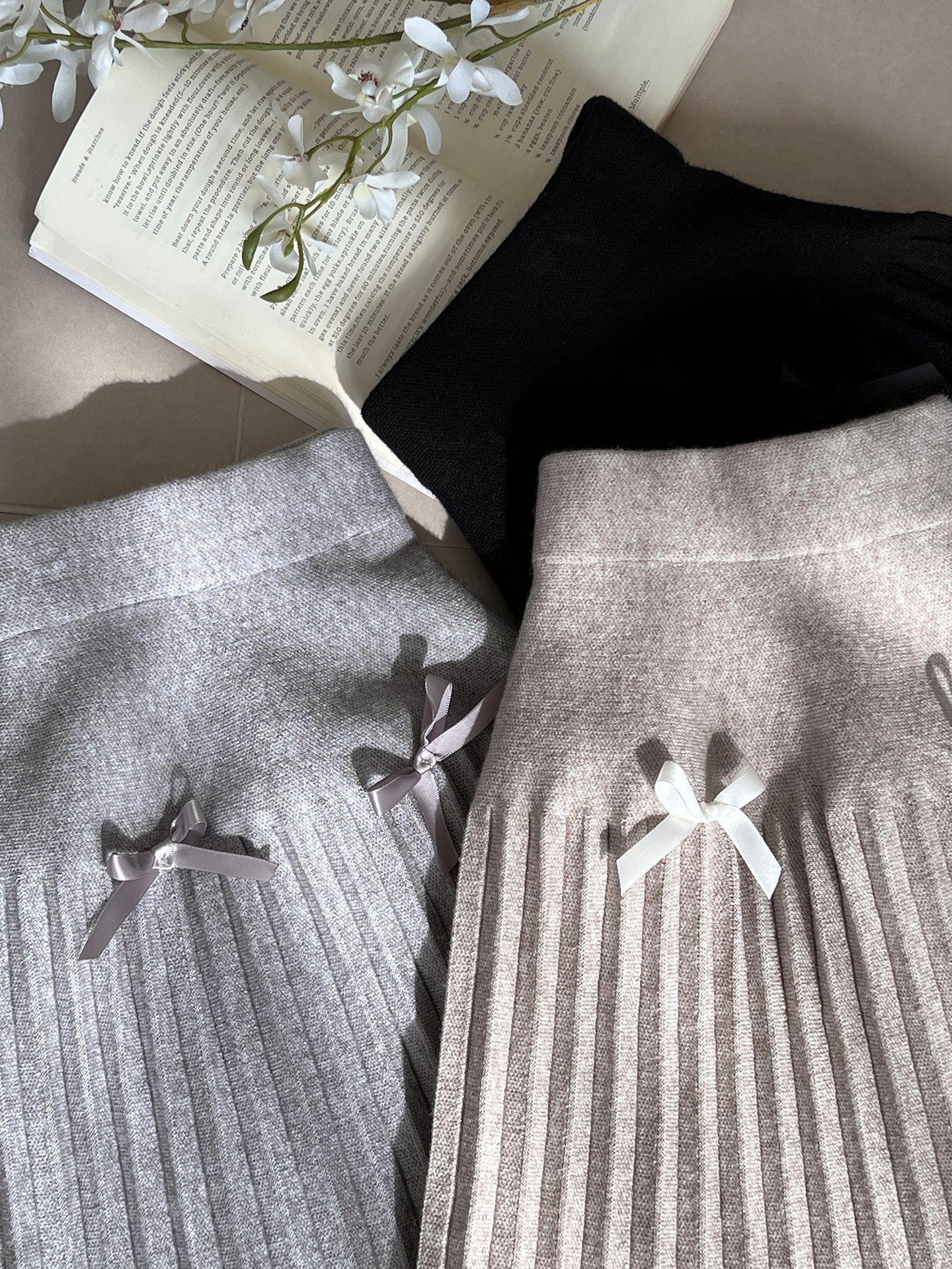 Falda plisada Jiangzuo Miu estilo universitario, cintura alta, lazo, para mujer, de punto, primavera y verano, 9016