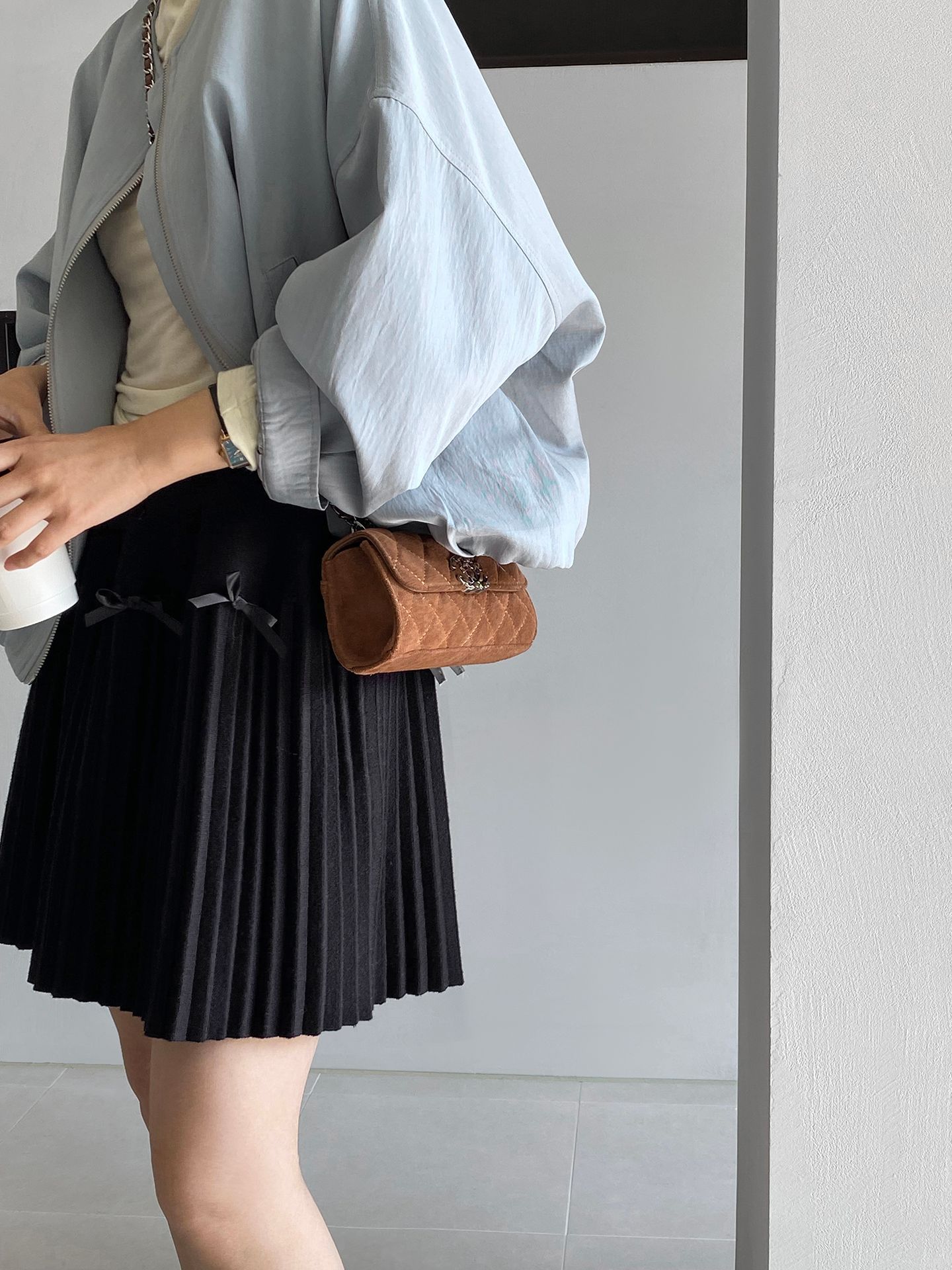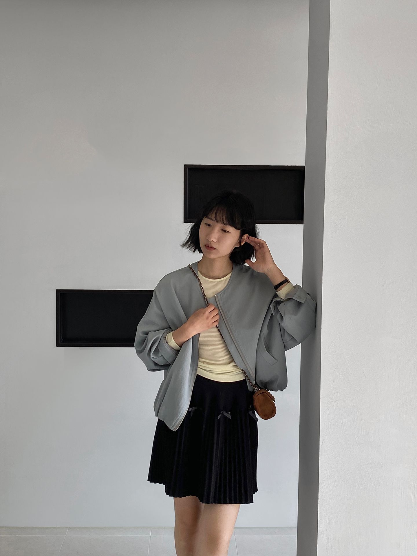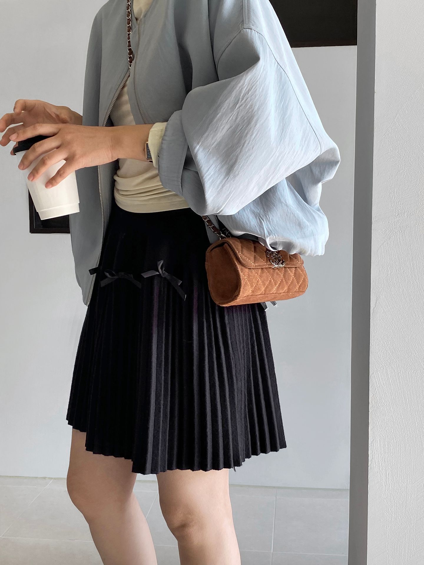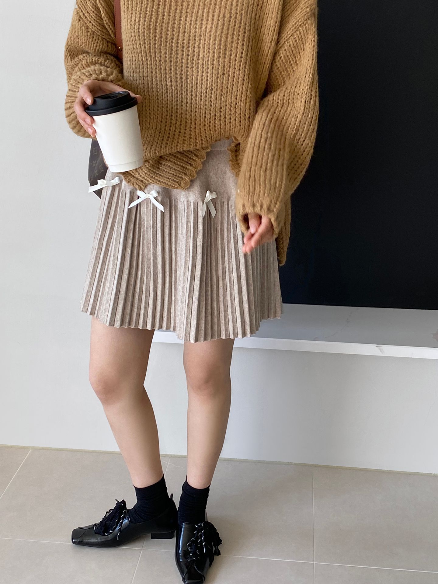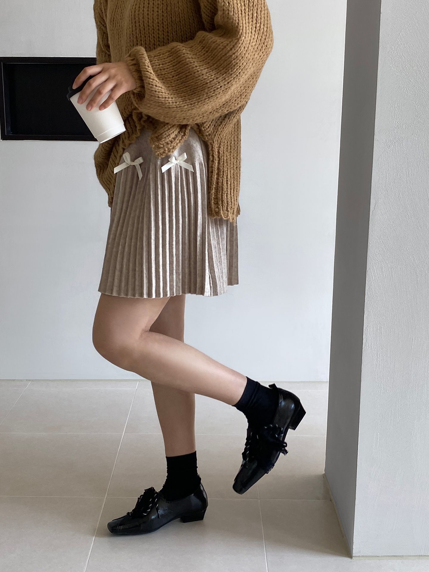 Falda plisada Jiangzuo Miu estilo universitario, cintura alta, lazo, para mujer, de punto, primavera y verano, 9016
