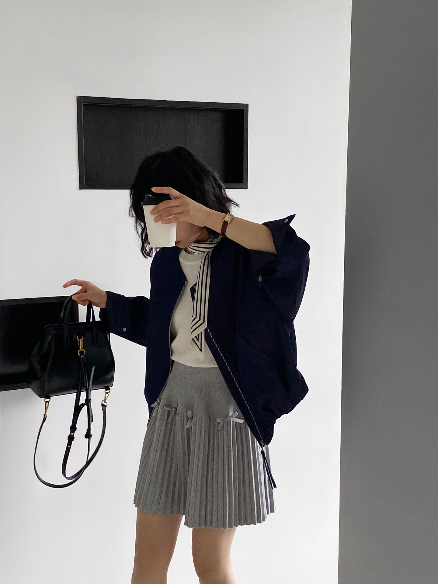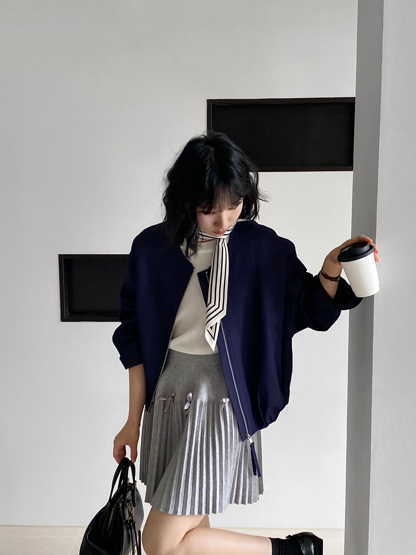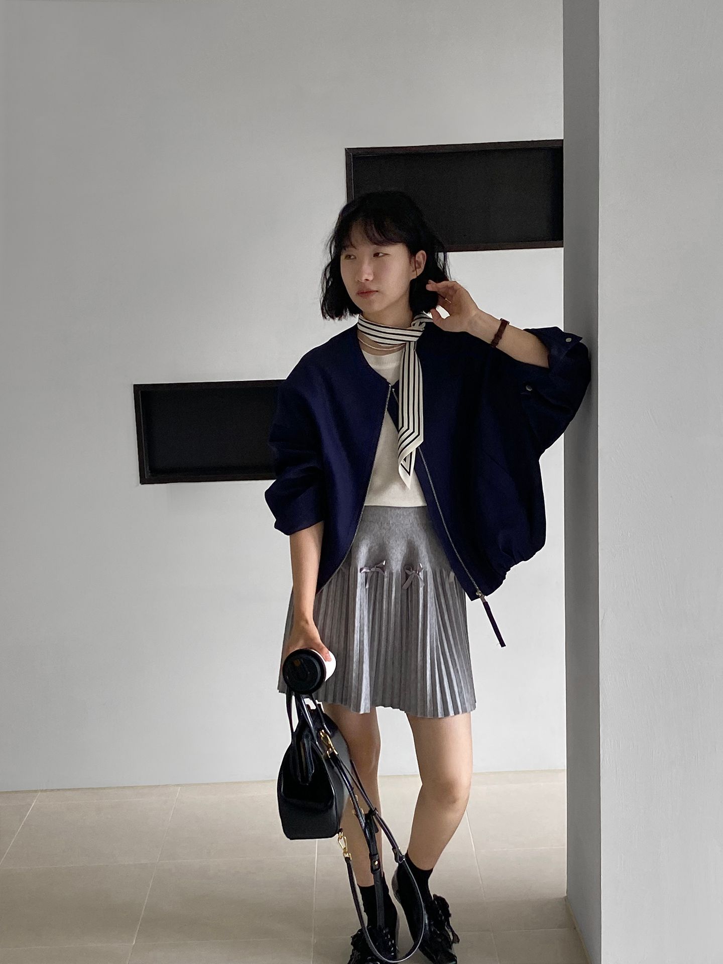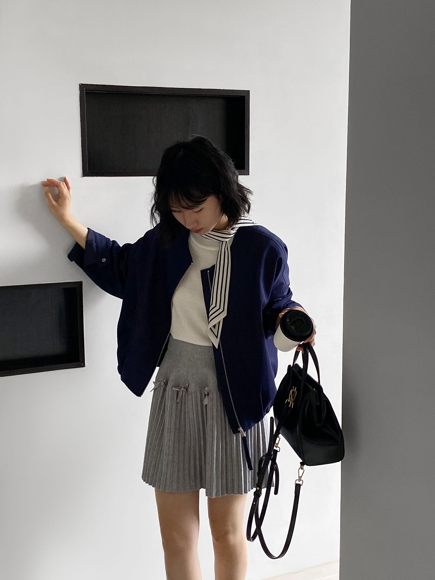 Falda plisada Jiangzuo Miu estilo universitario, cintura alta, lazo, para mujer, de punto, primavera y verano, 9016