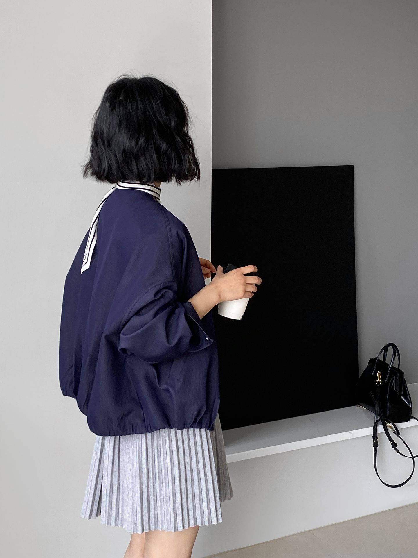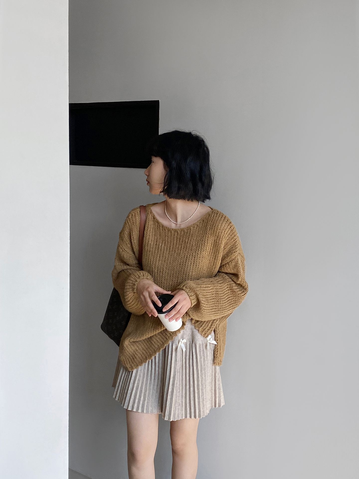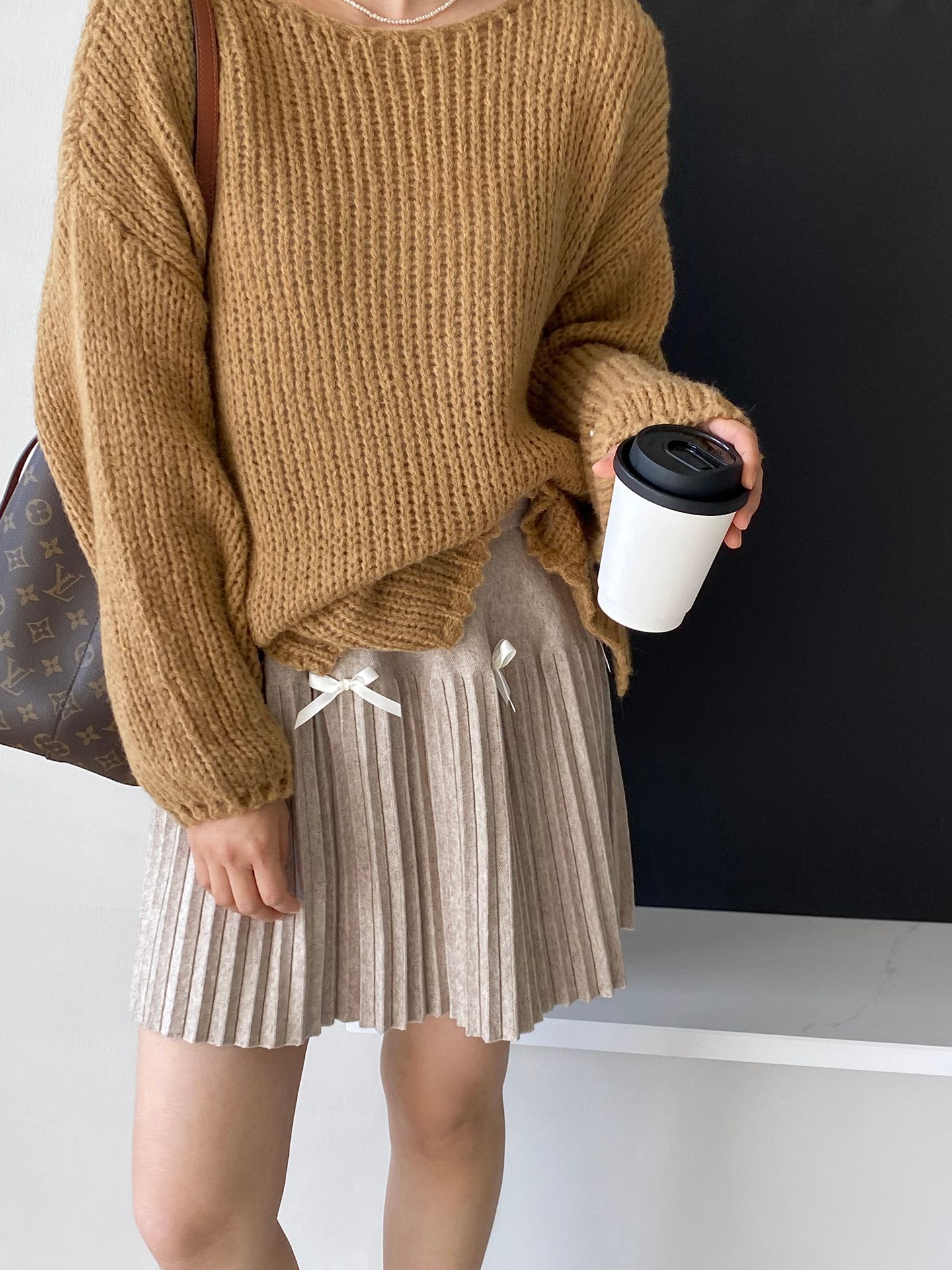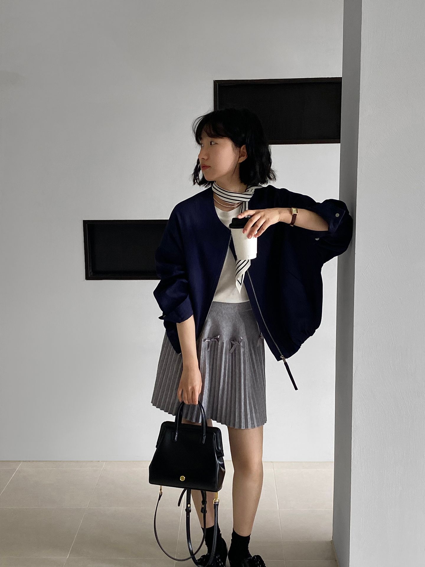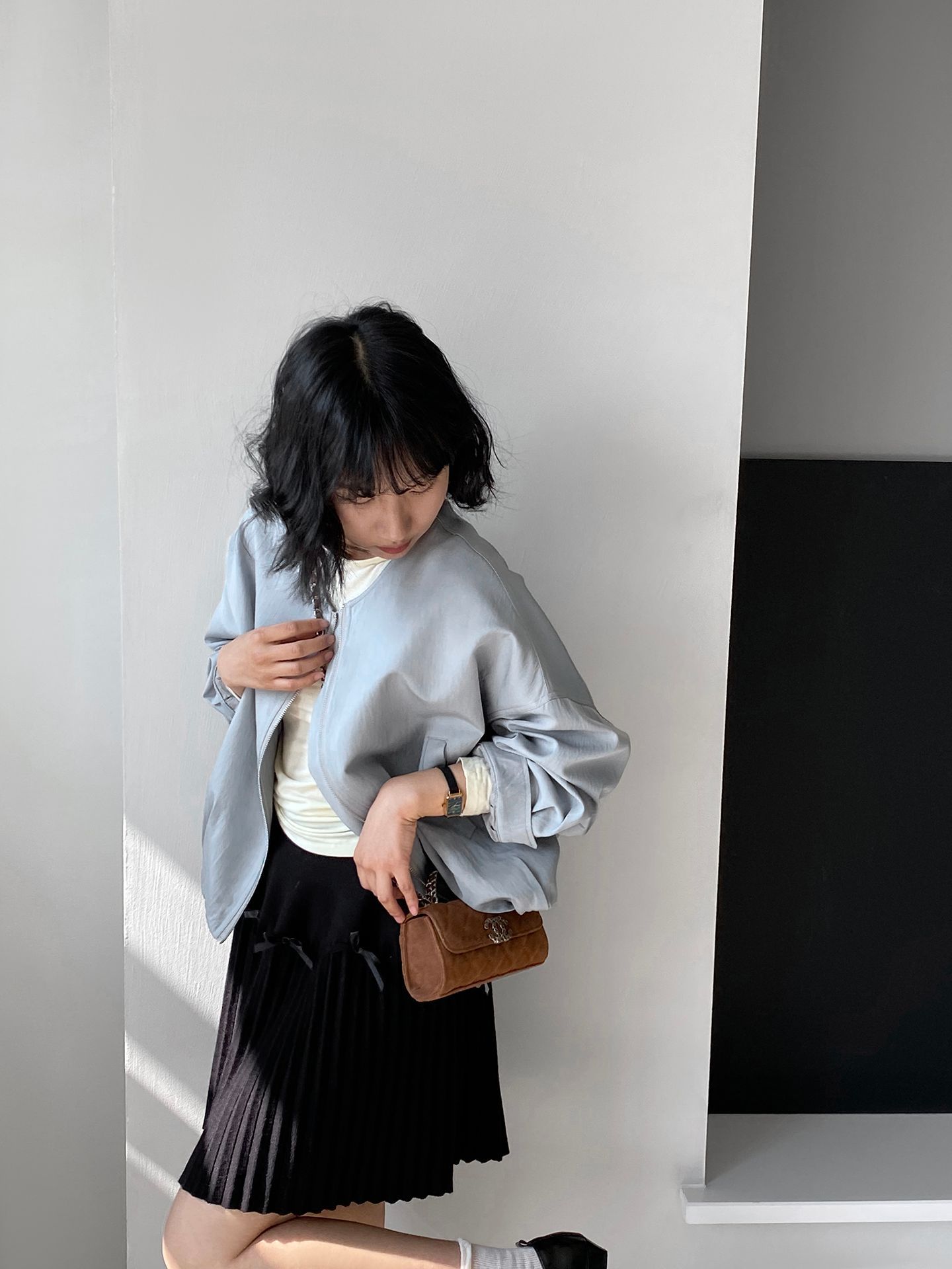 Falda plisada Jiangzuo Miu estilo universitario, cintura alta, lazo, para mujer, de punto, primavera y verano, 9016