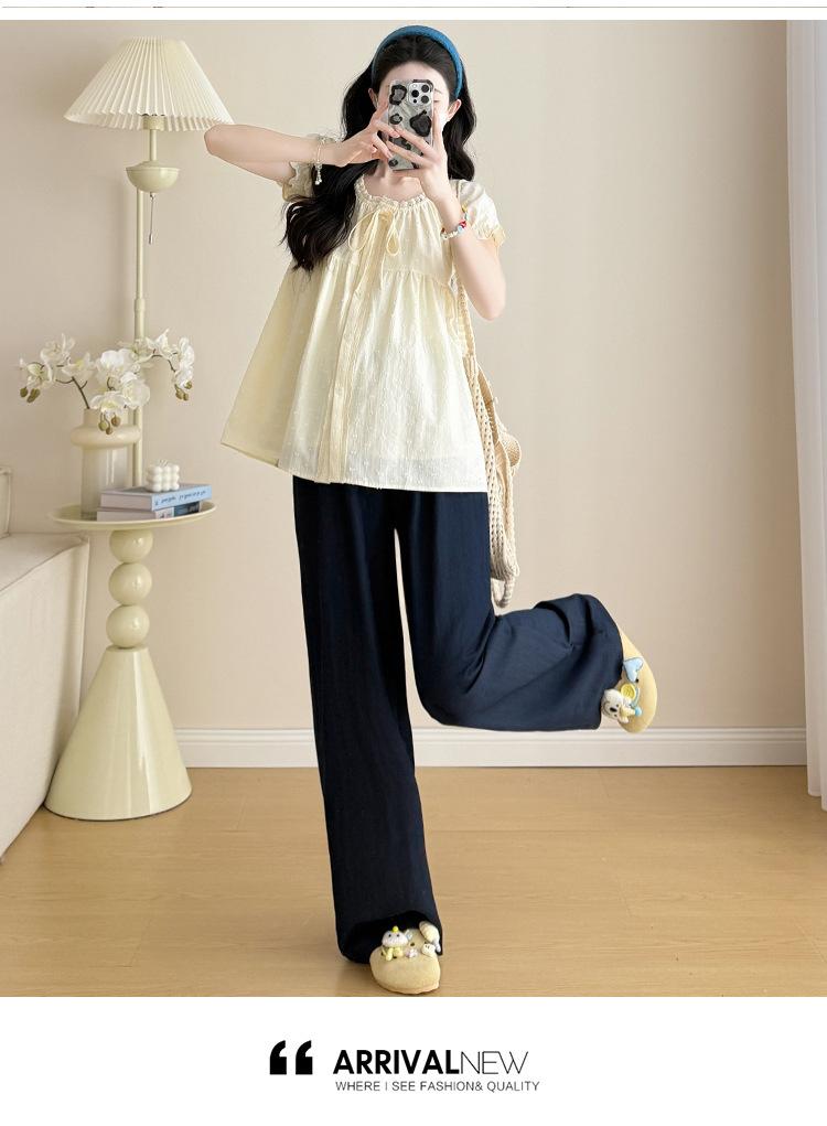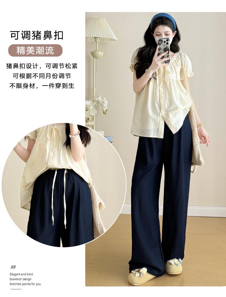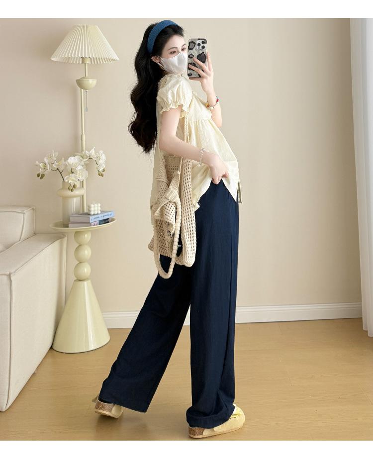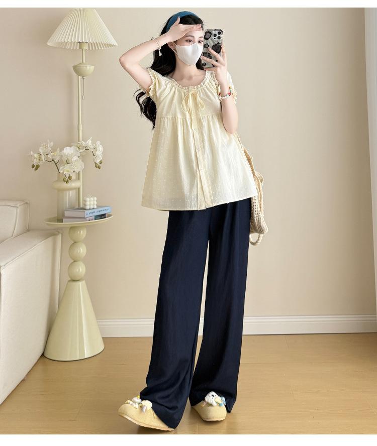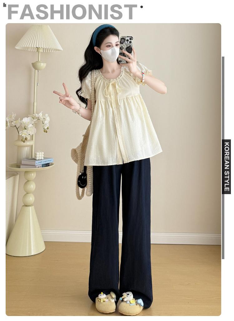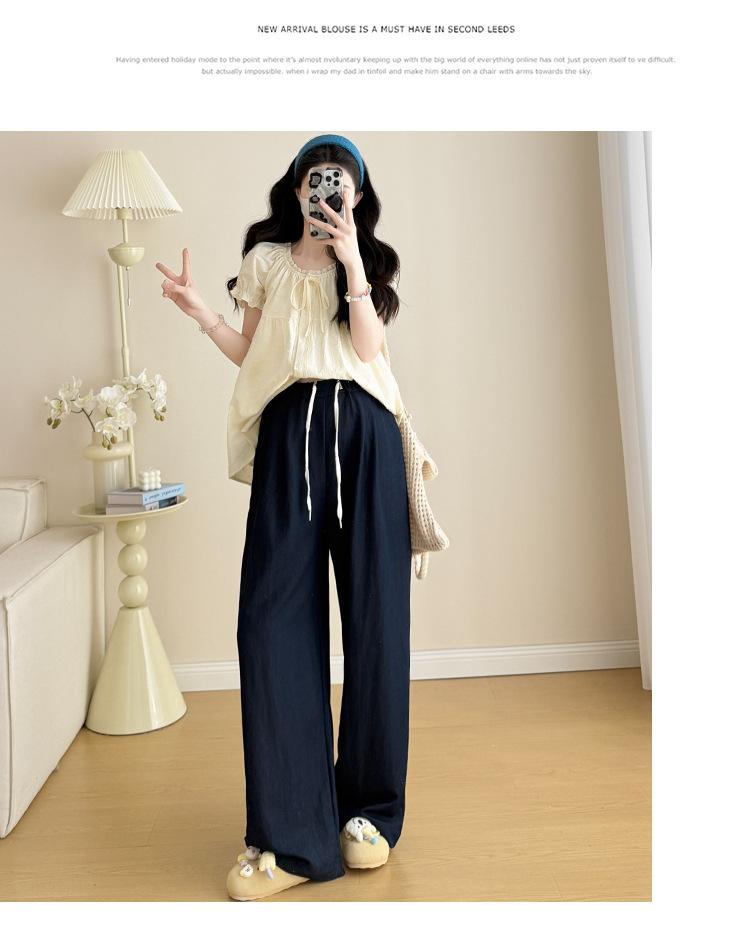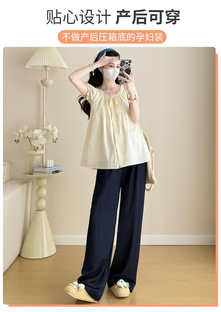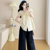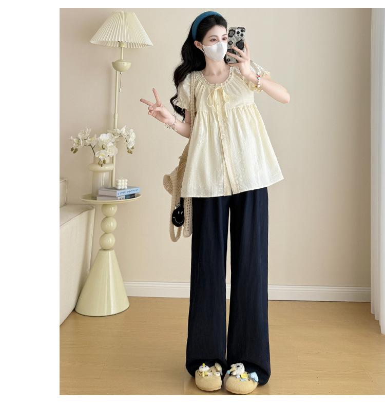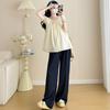 En stock 2025 Nueva camisa de algodón de ganchillo de verano para mujeres embarazadas Pantalones de pierna ancha de tencel para mujeres embarazadas Denim