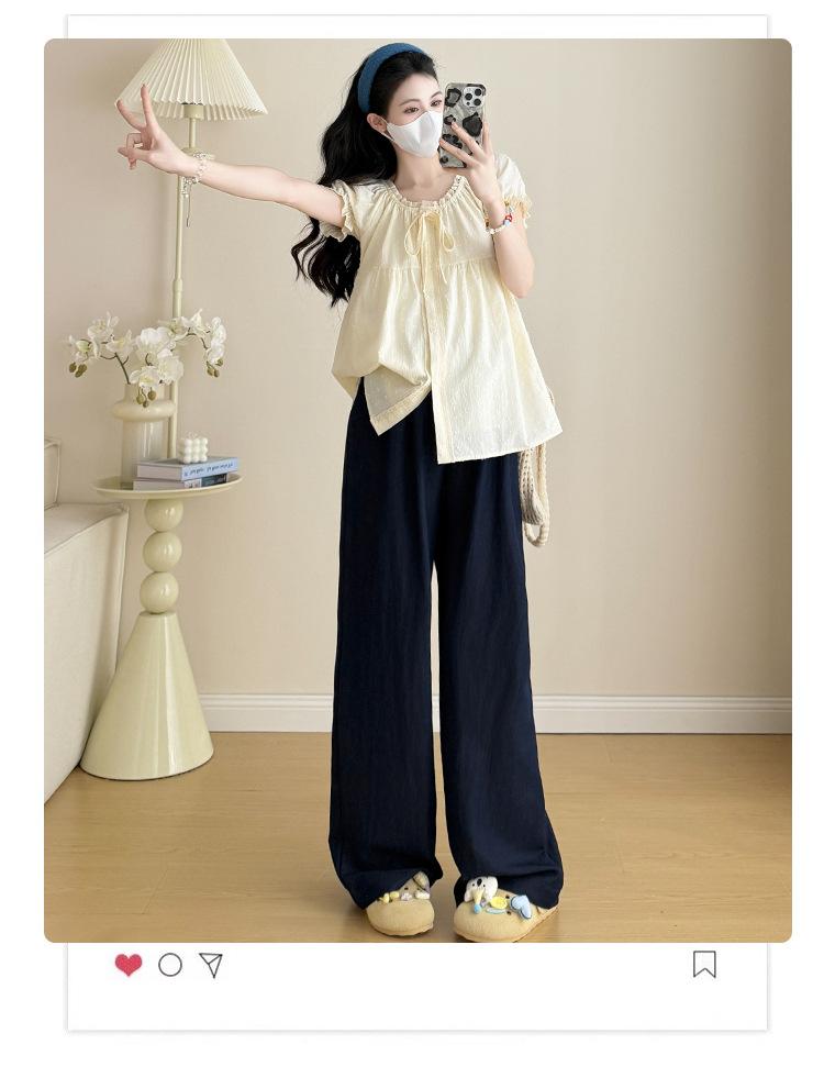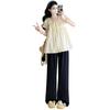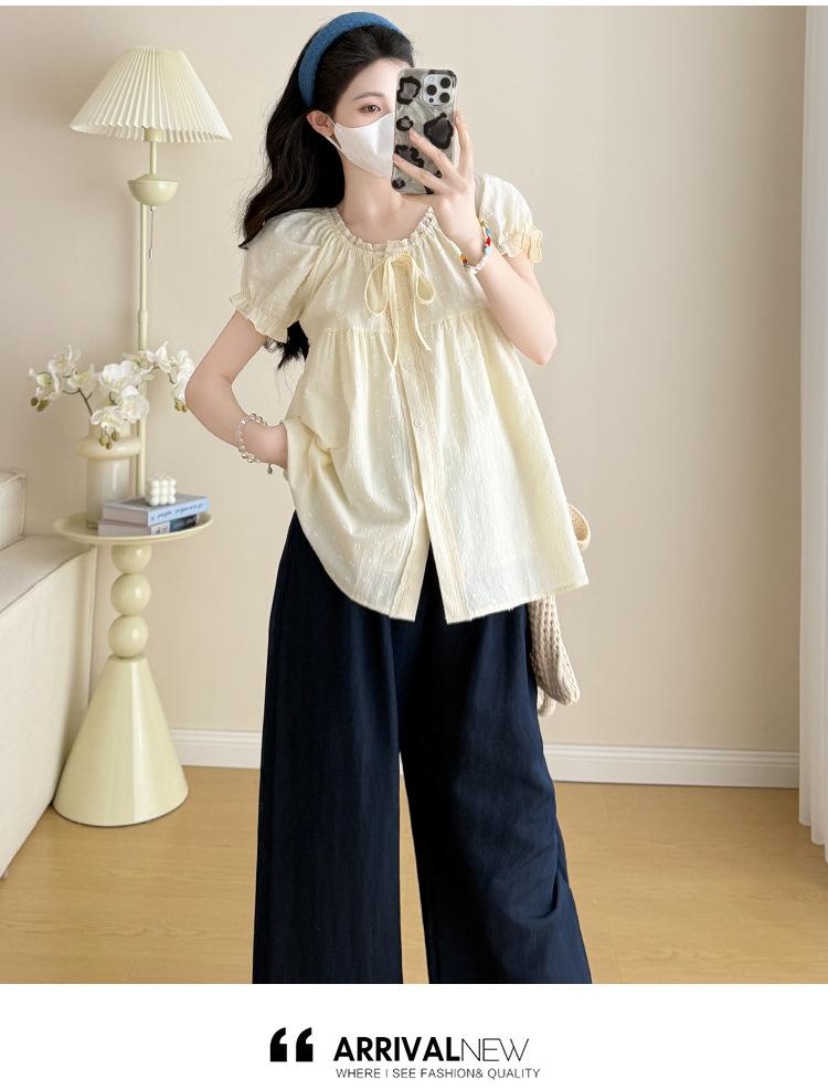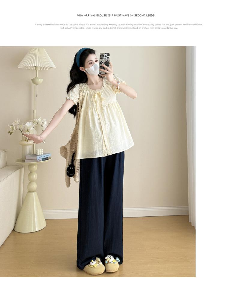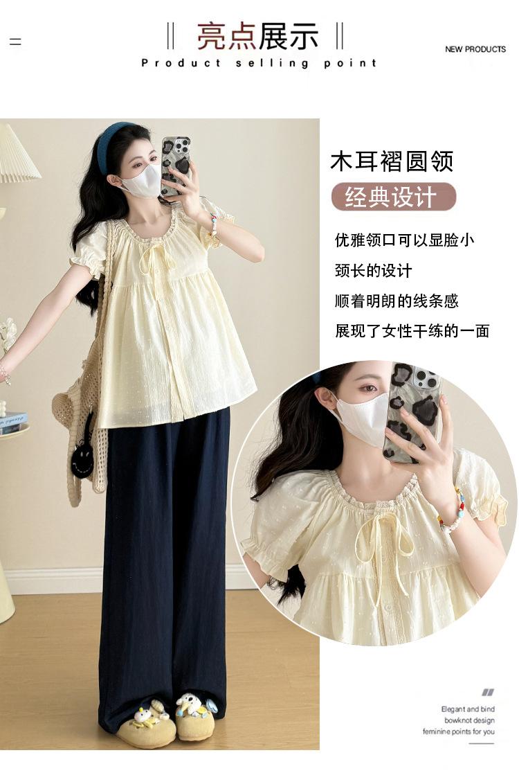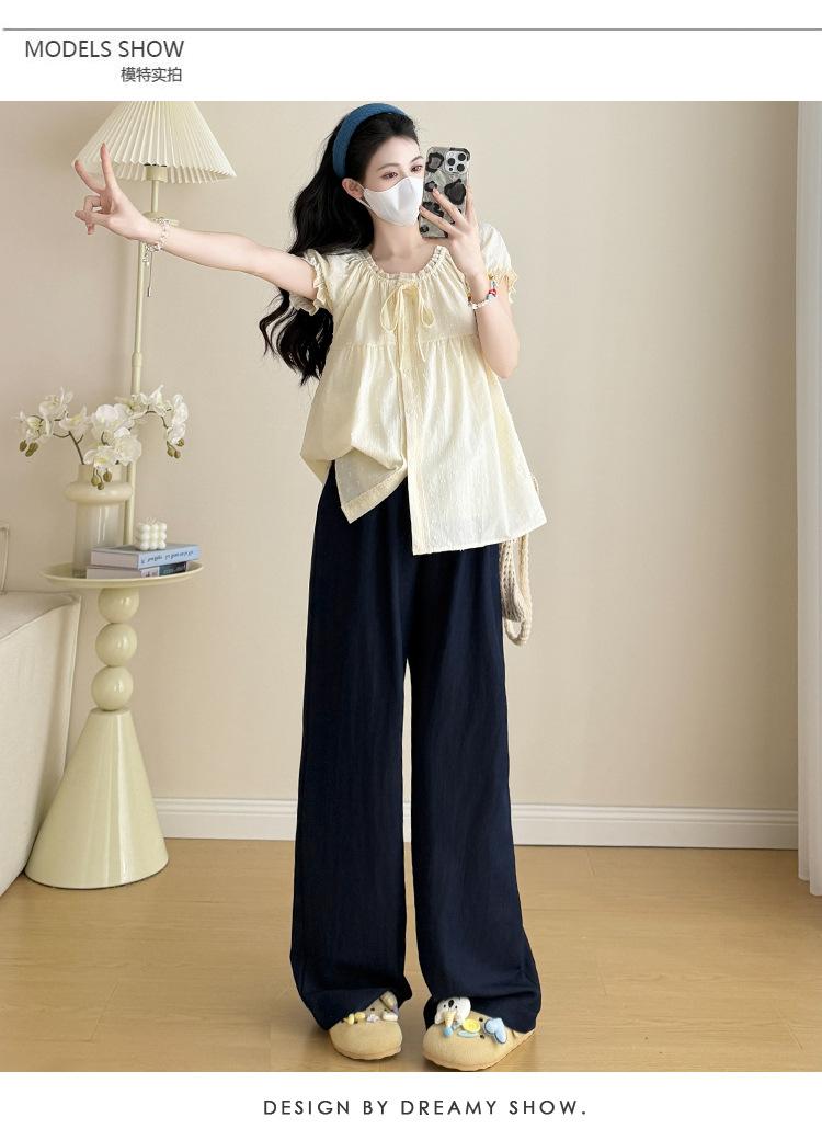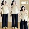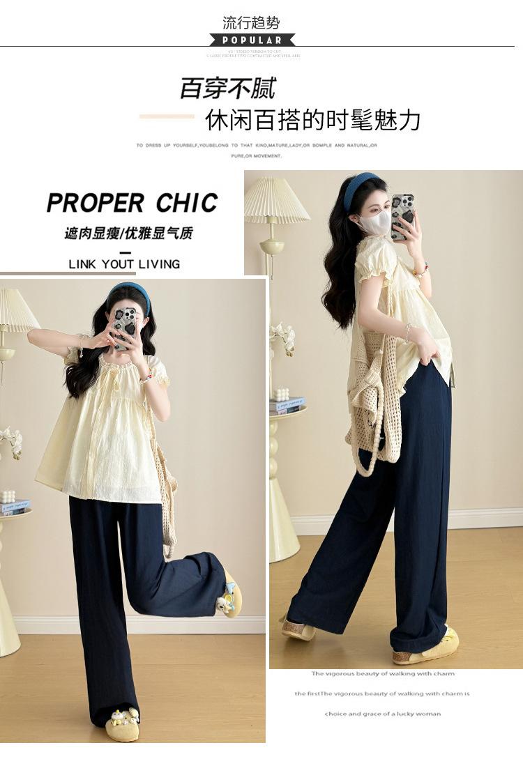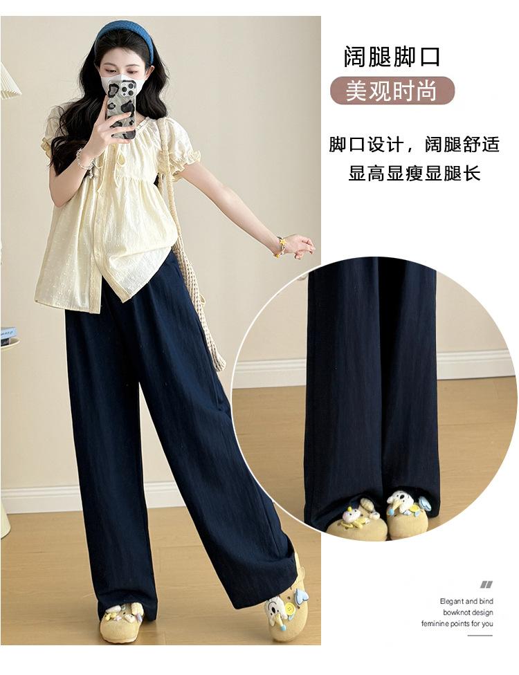 En stock 2025 Nueva camisa de algodón de ganchillo de verano para mujeres embarazadas Pantalones de pierna ancha de tencel para mujeres embarazadas Denim