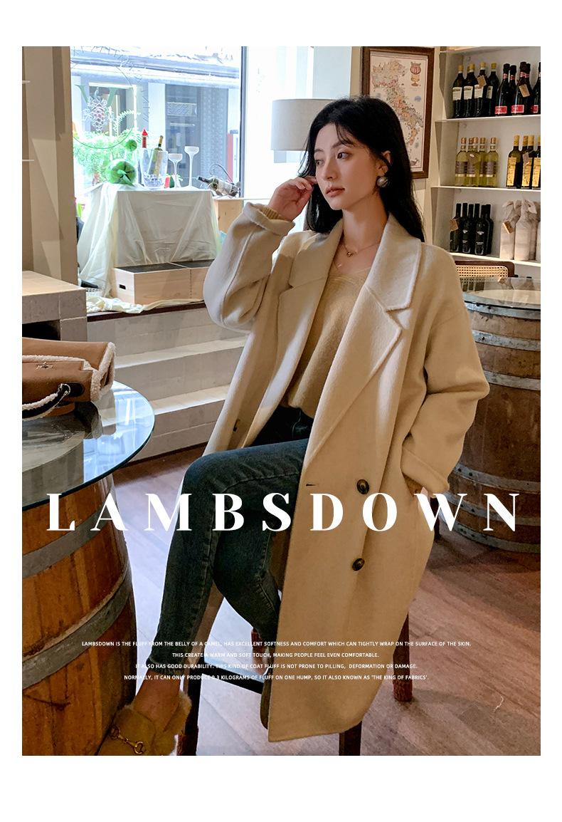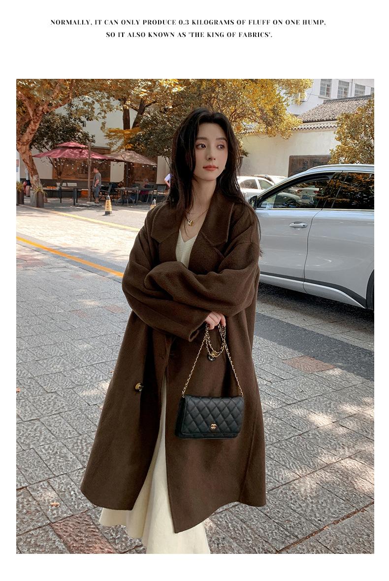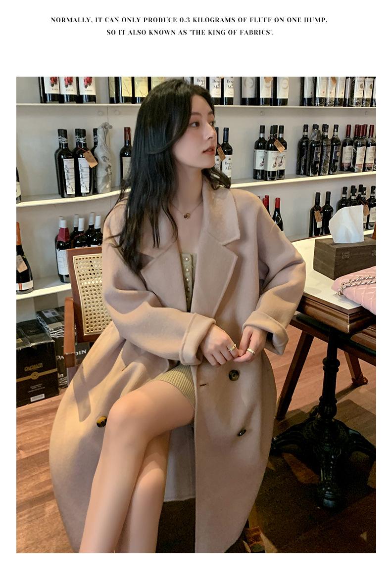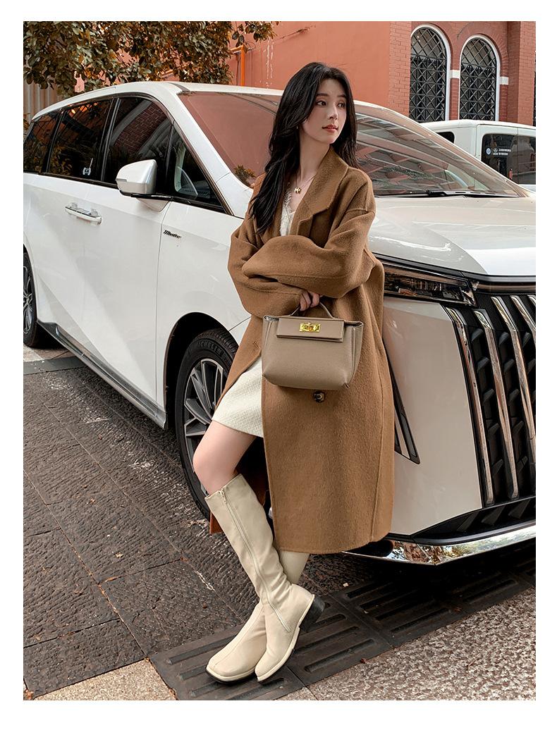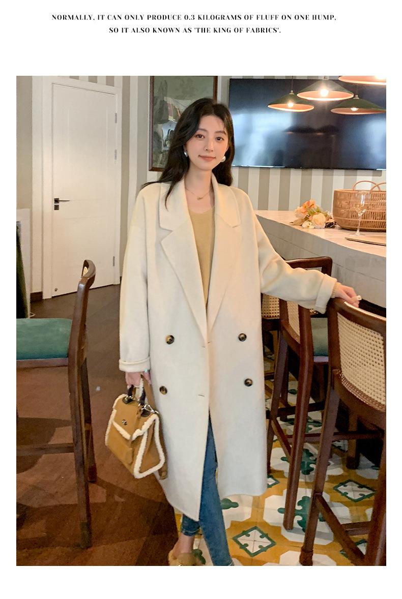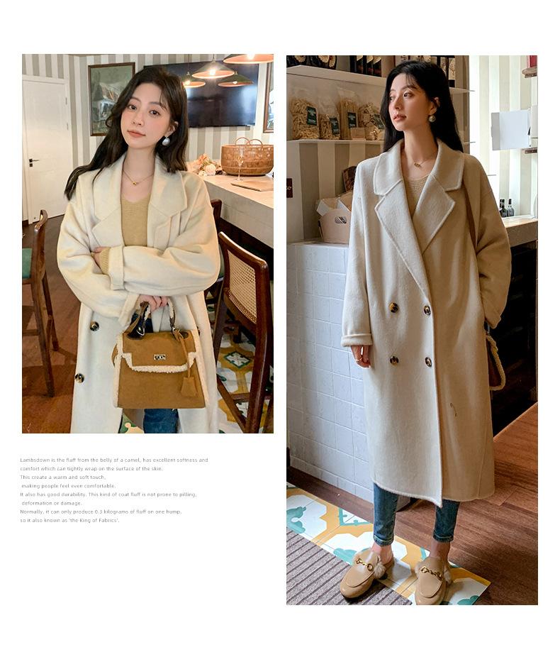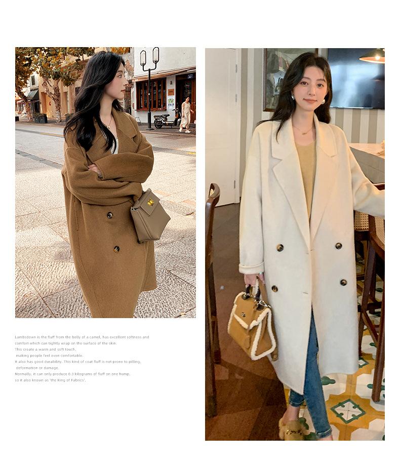 Abrigo Camel Blanco Cremoso Estilo Socialité para Mujer Abrigo Grueso de Lana de Doble Cara de Largo Medio Abrigo para Mujer de Alta Gama Estilo Nuevo