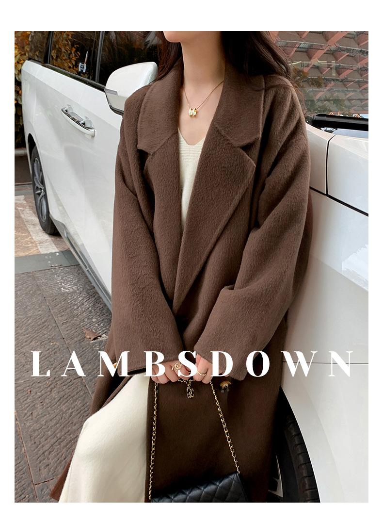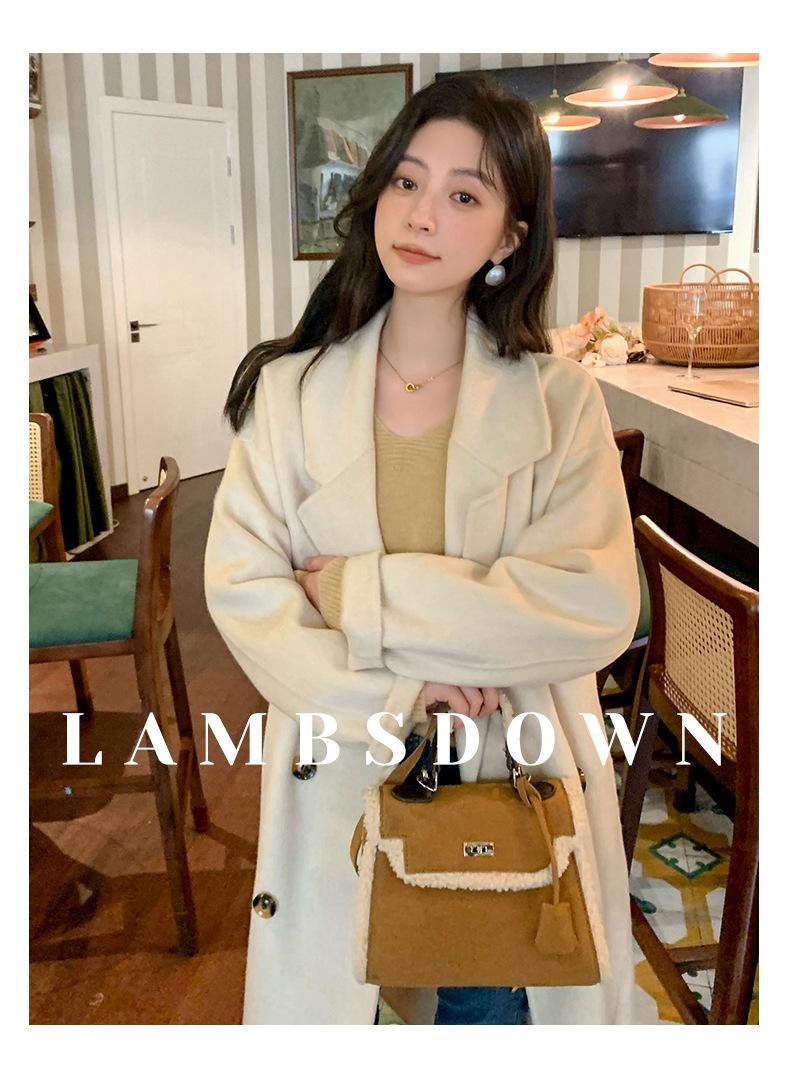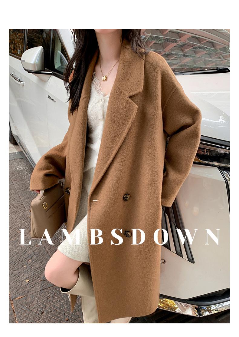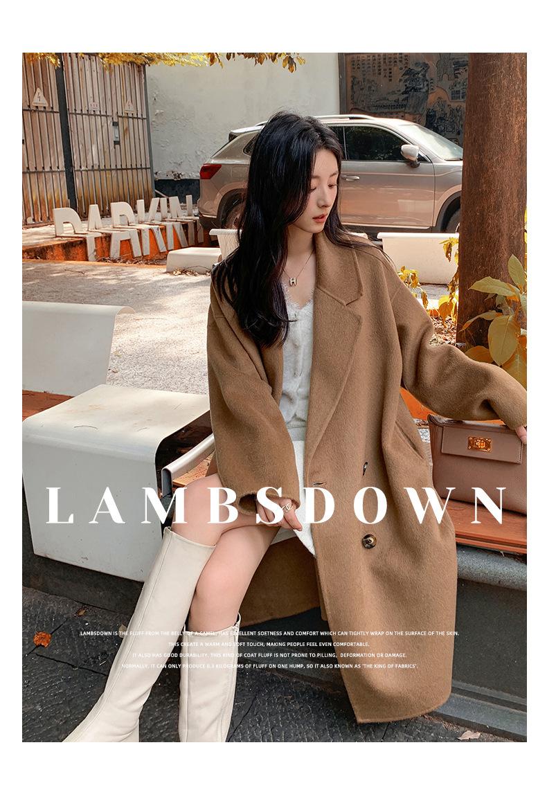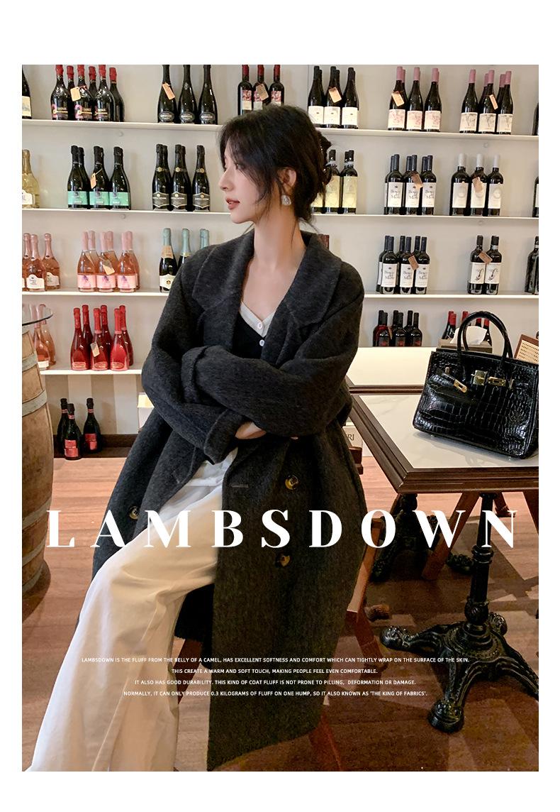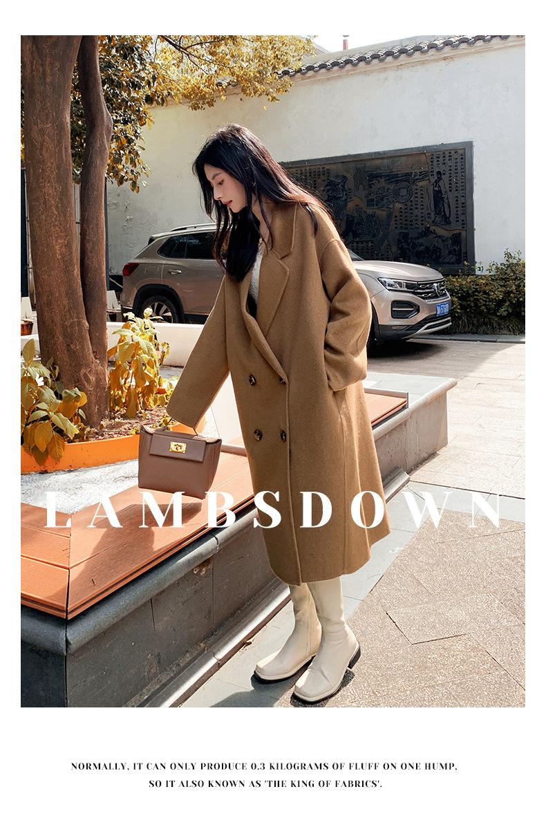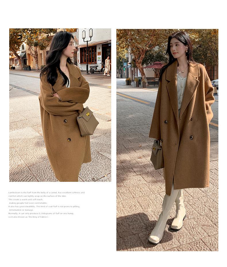 Abrigo Camel Blanco Cremoso Estilo Socialité para Mujer Abrigo Grueso de Lana de Doble Cara de Largo Medio Abrigo para Mujer de Alta Gama Estilo Nuevo