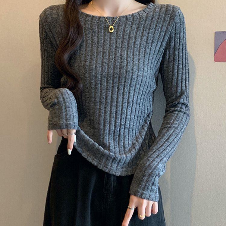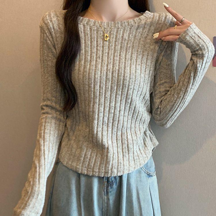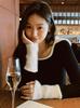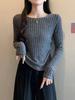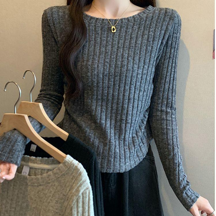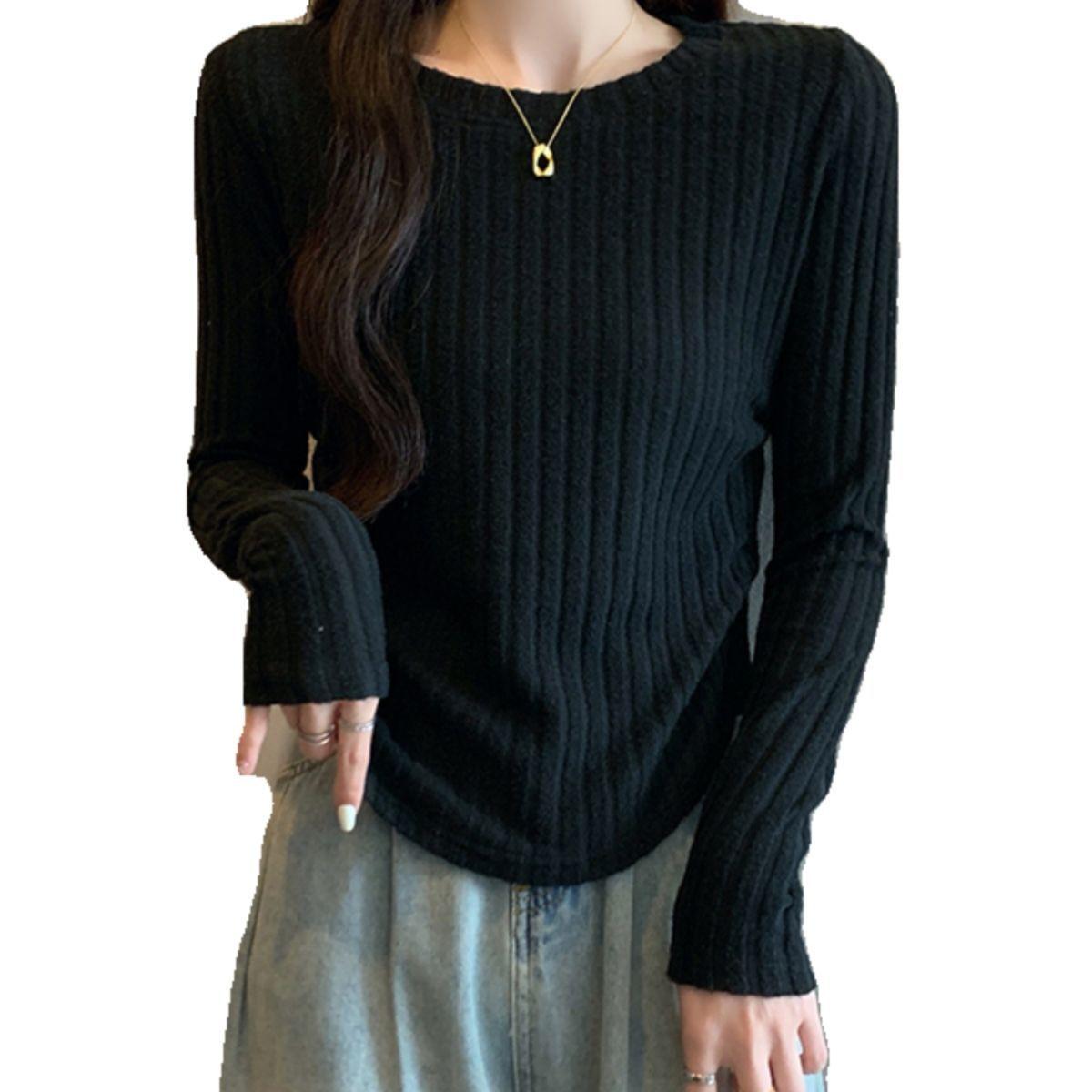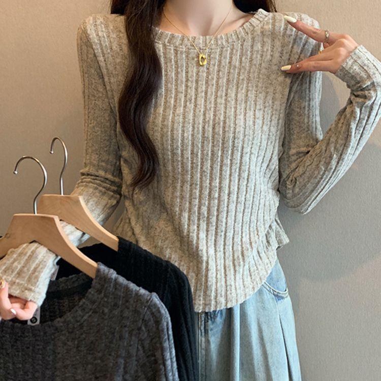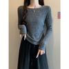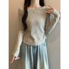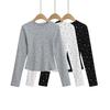 Otoño 2024 Camiseta de punto de manga larga irregular Entallada Adelgazante Combinación completa Reductor de edad Top elegante de las Spice Girls de nicho