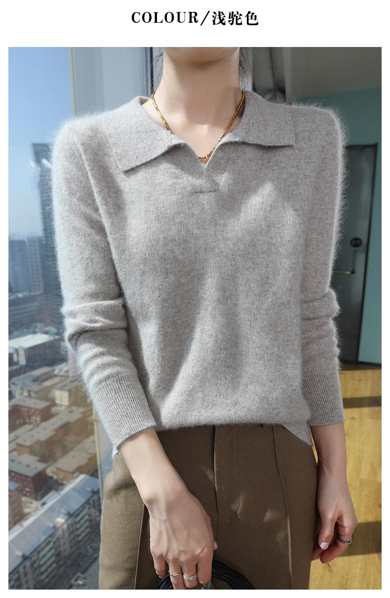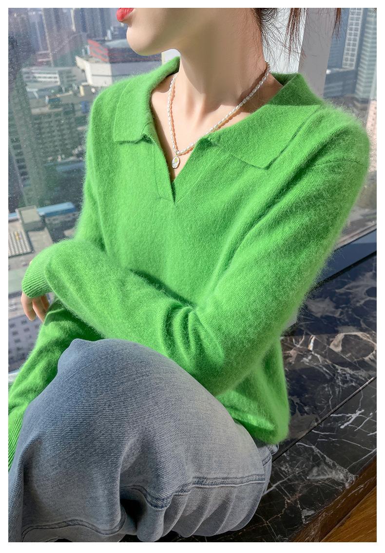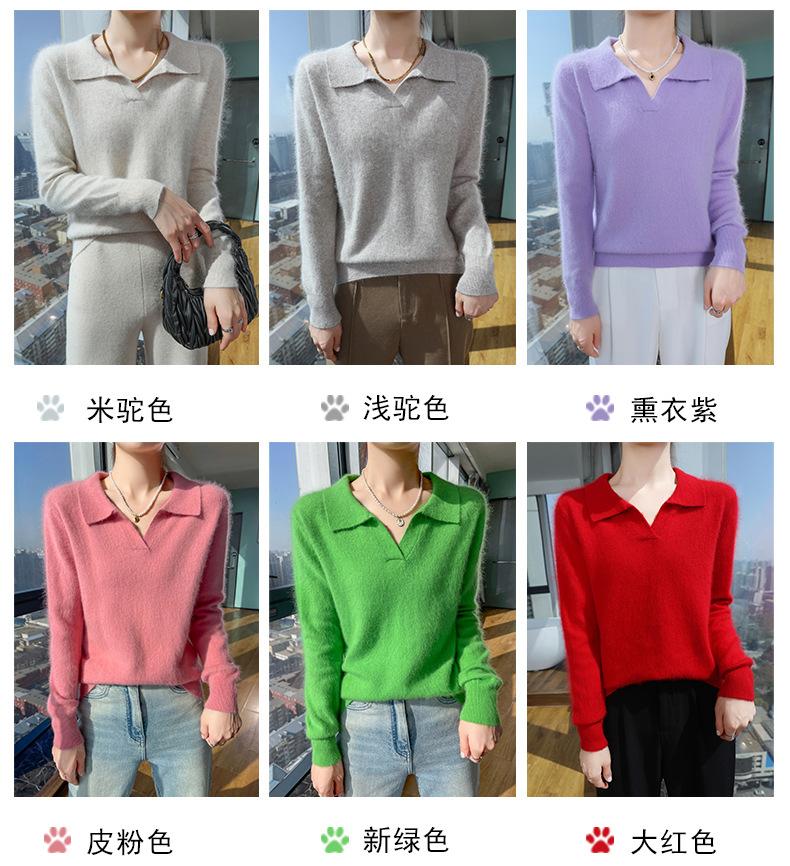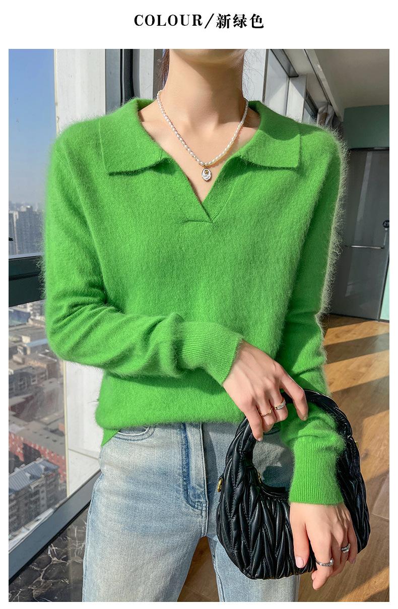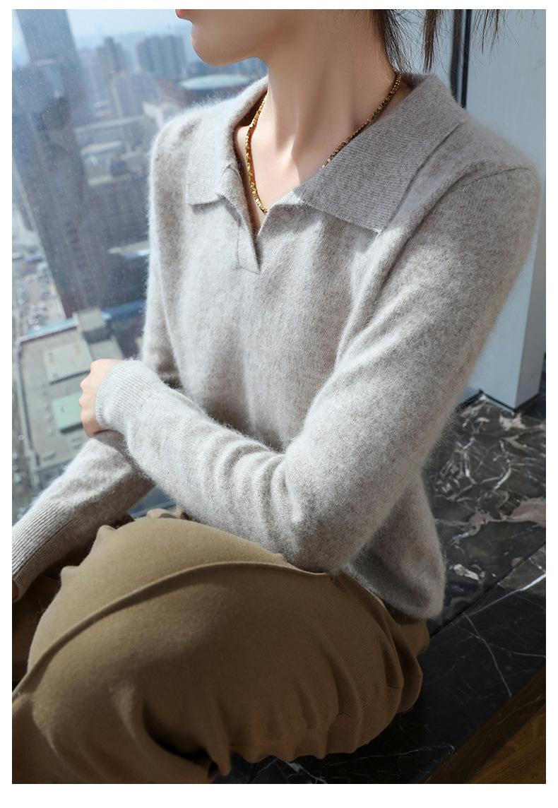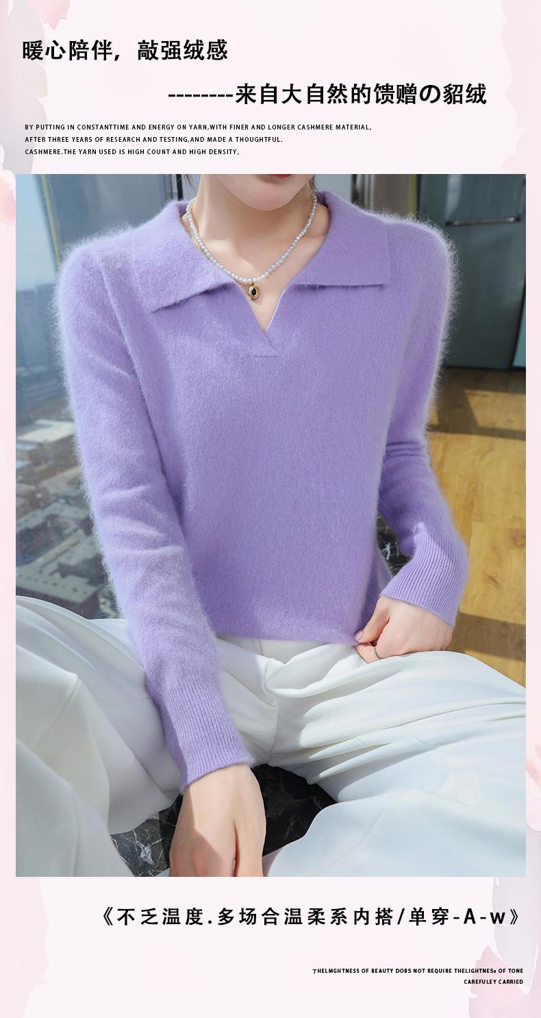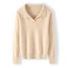 Suéter nuevo de visón de terciopelo con cuello POLO y solapa para primavera y otoño, suéter holgado de punto cálido para mujer