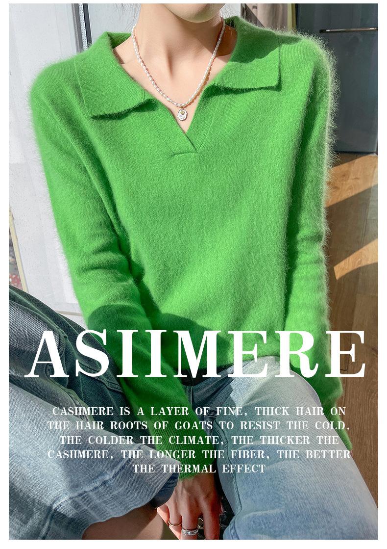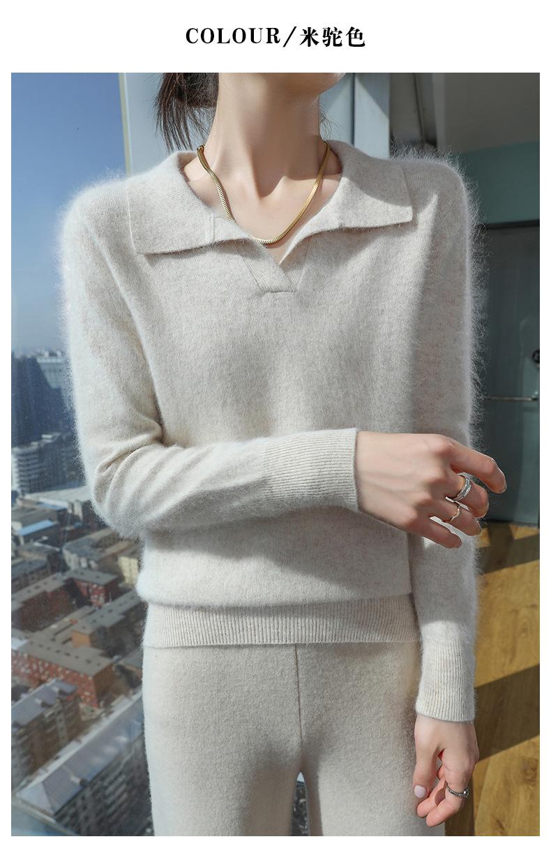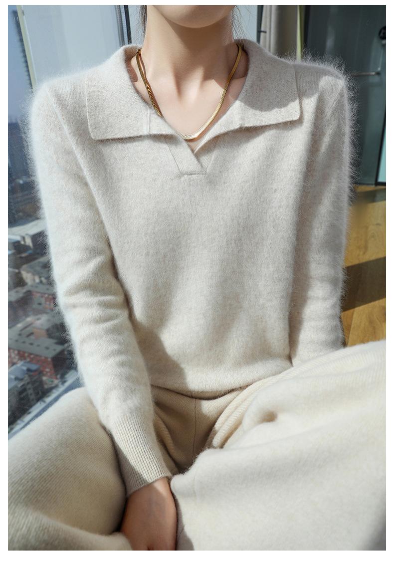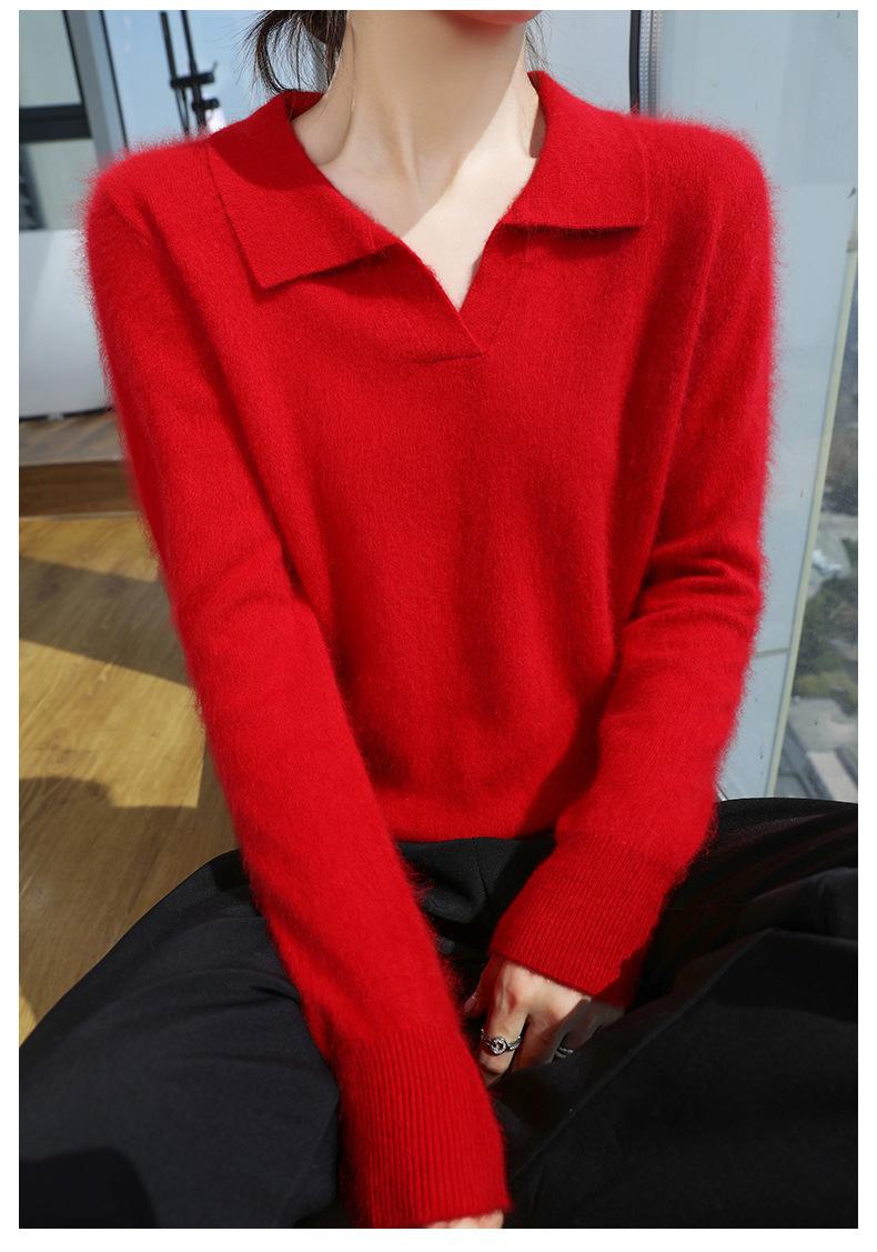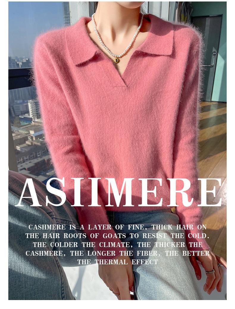 Suéter nuevo de visón de terciopelo con cuello POLO y solapa para primavera y otoño, suéter holgado de punto cálido para mujer