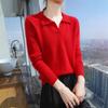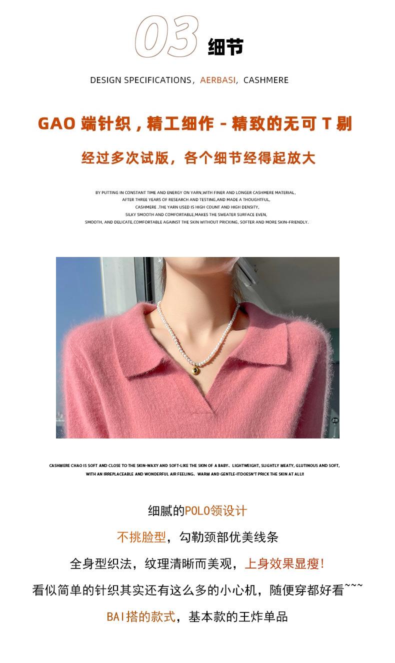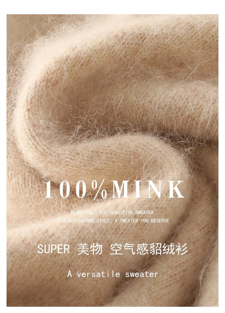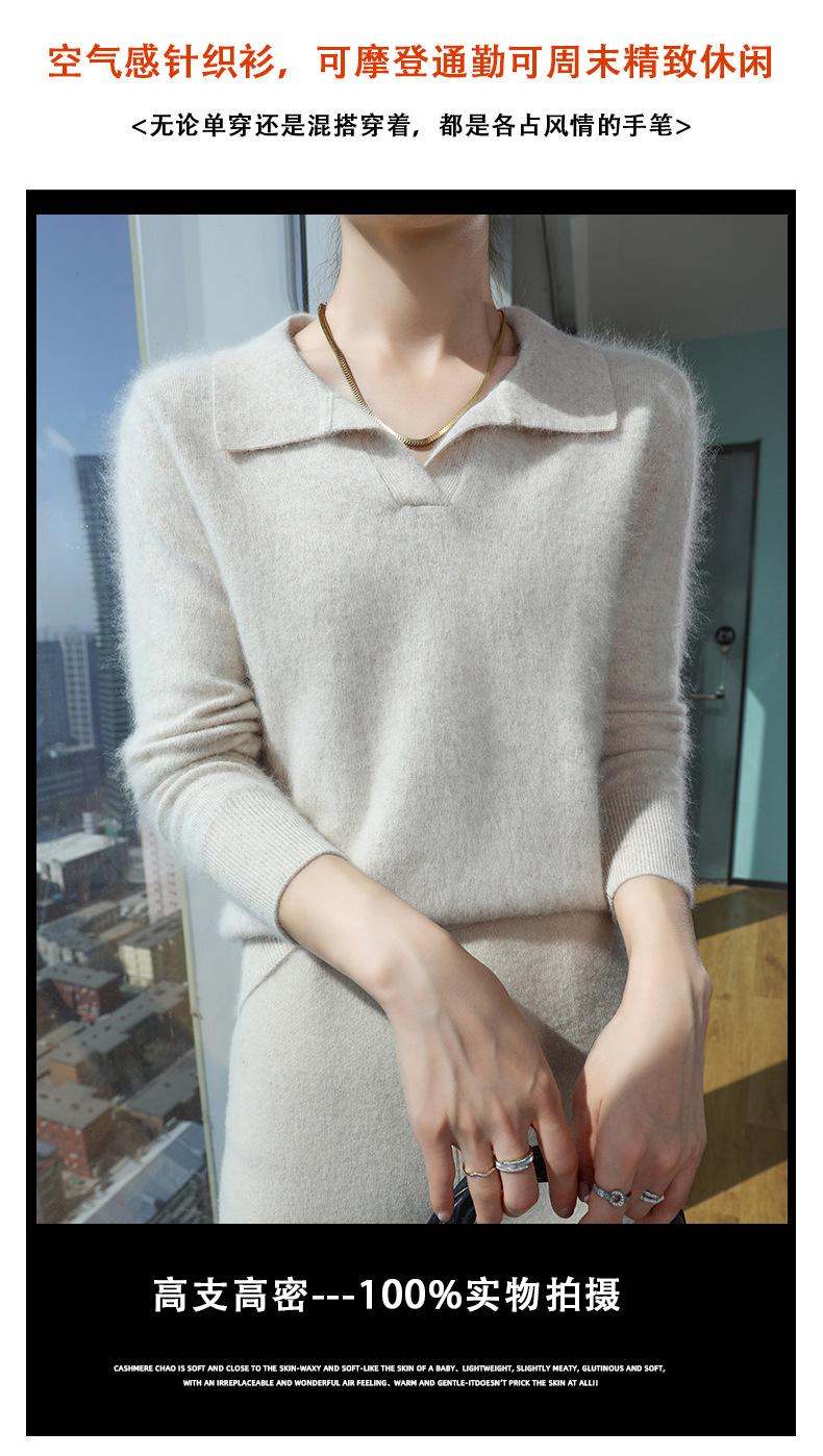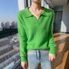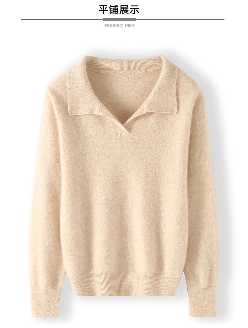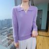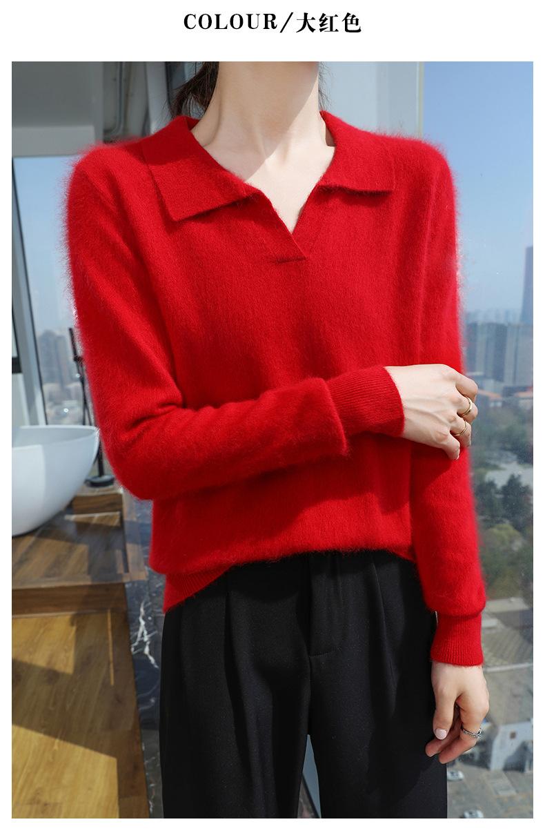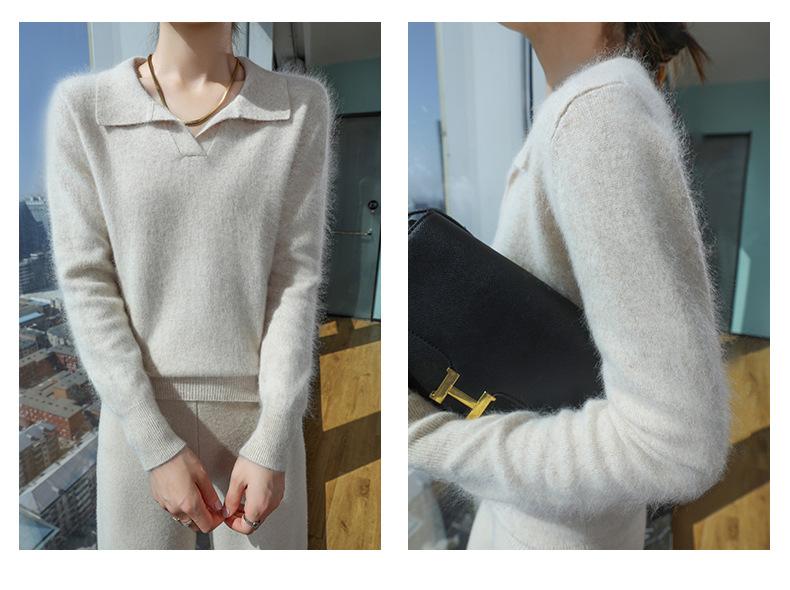 Suéter nuevo de visón de terciopelo con cuello POLO y solapa para primavera y otoño, suéter holgado de punto cálido para mujer