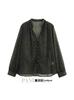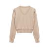 Camisa de manga larga con cuello en V y decoración laminada para mujer, estilo transfronterizo europeo y americano, 2025, talla 017 y 019