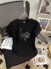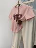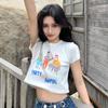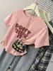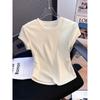 Camiseta de Algodón Puro de Manga Corta con Hombro Derecho Descubierto para Mujer Verano 2025 Nueva Slim Top Corto con Pinzas en la Cintura Camiseta de Media Manga Trendy