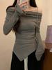 Camiseta de manga larga adelgazante estilo Pure Desire de Spice Girls, ajustada, combinable, irregular, elegante, a la moda, sexy, con hombros descubiertos.