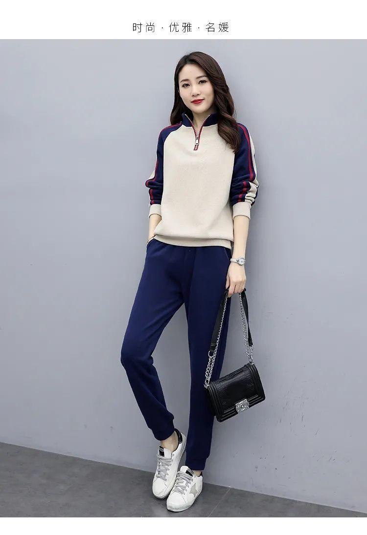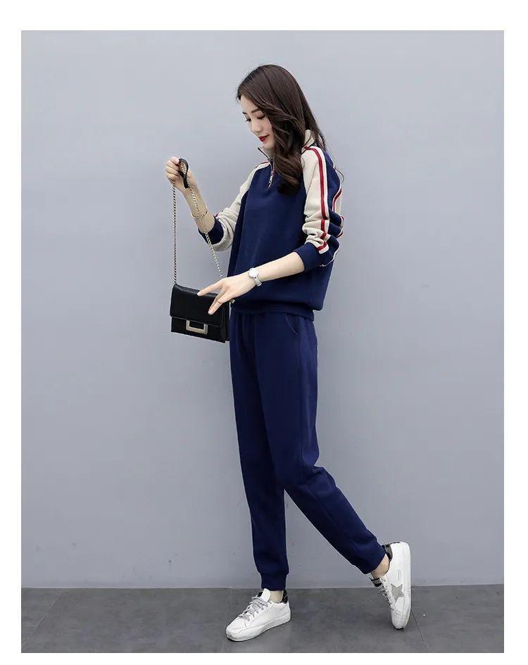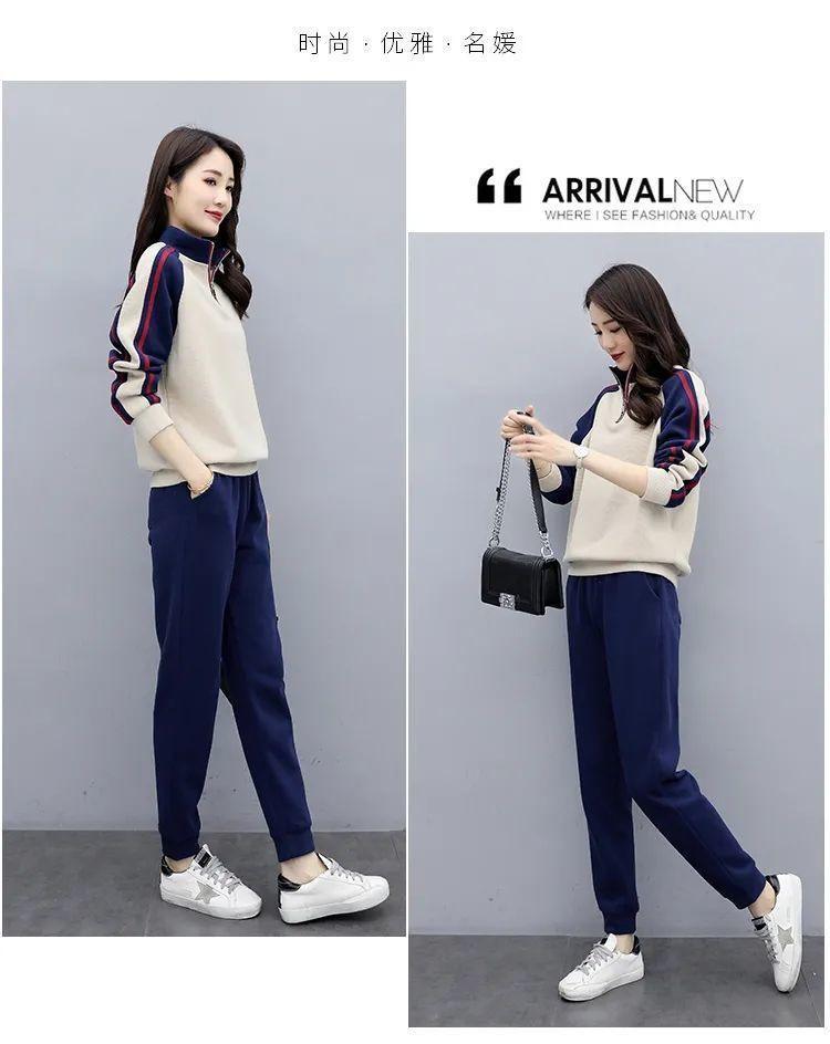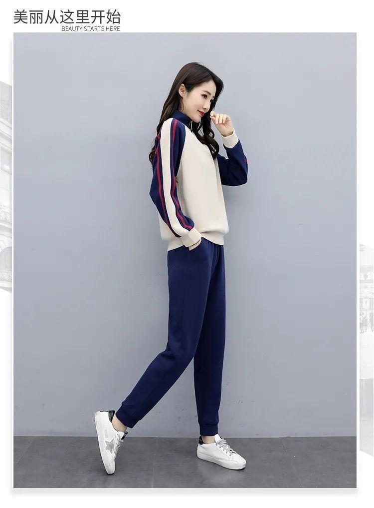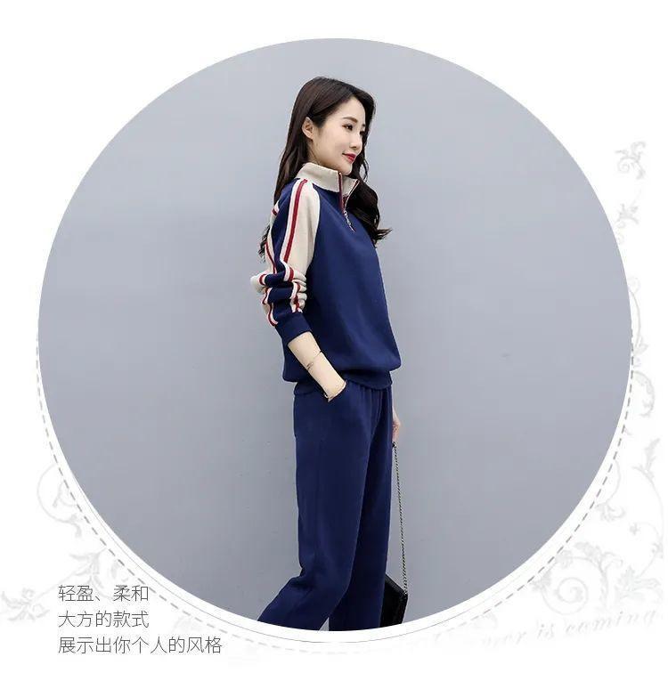 Traje deportivo 2024 para mujer otoño e invierno nuevo conjunto de suéter y pantalones de manga larga cuello alto costuras casual coreano holgado moda
