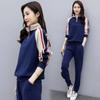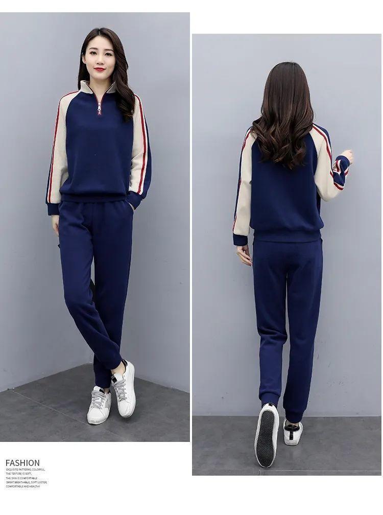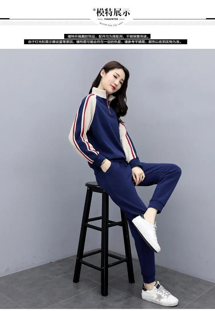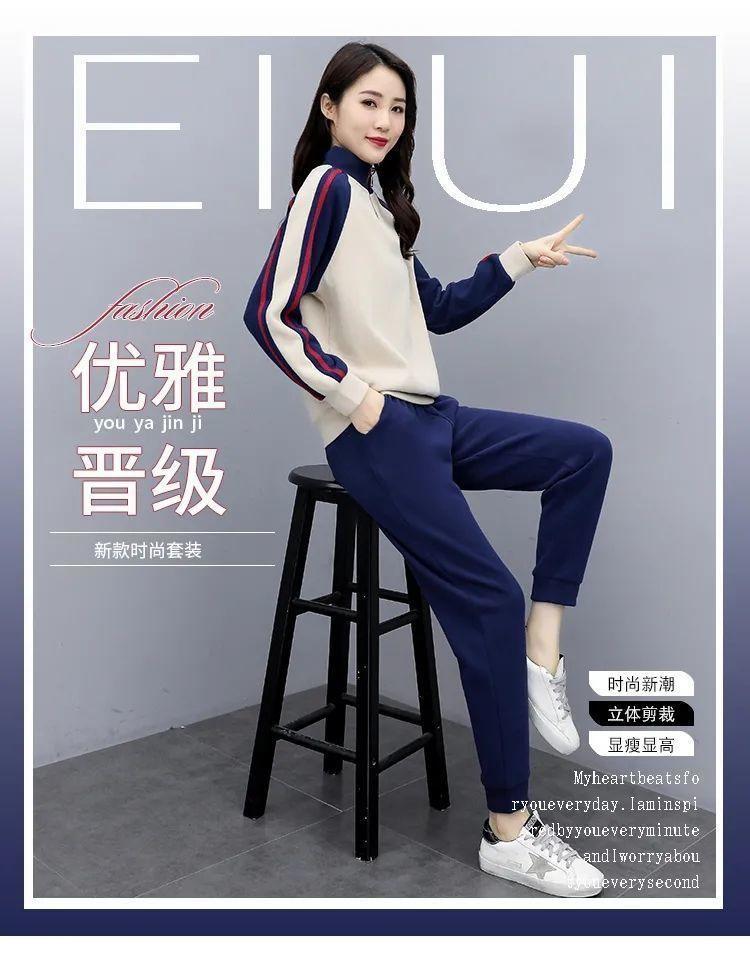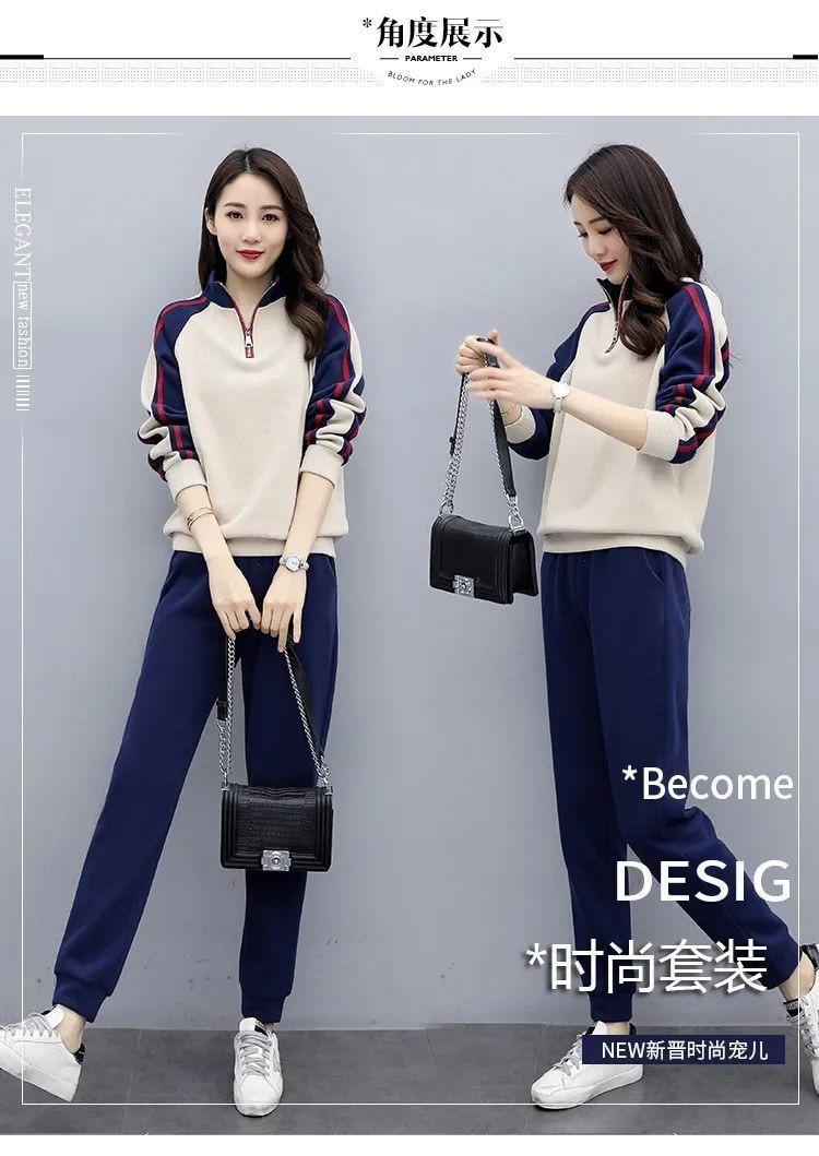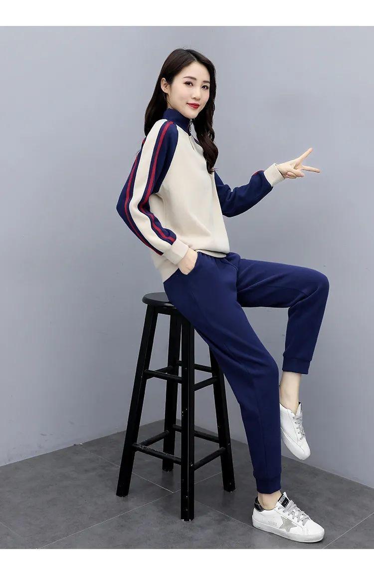 Traje deportivo 2024 para mujer otoño e invierno nuevo conjunto de suéter y pantalones de manga larga cuello alto costuras casual coreano holgado moda