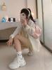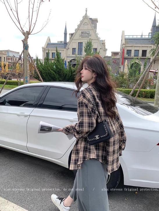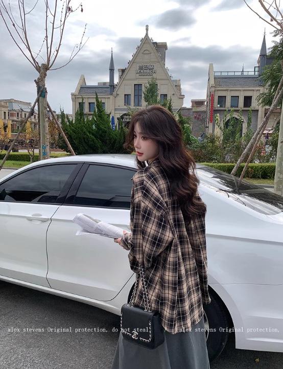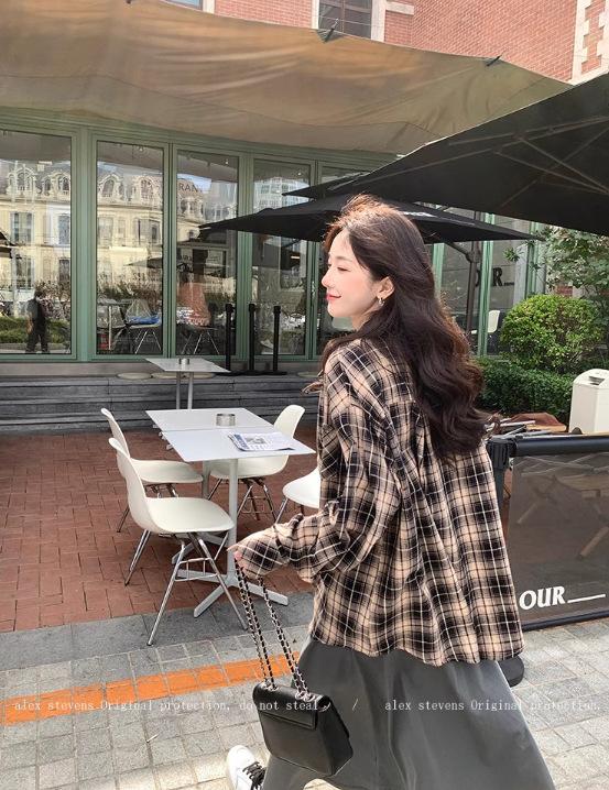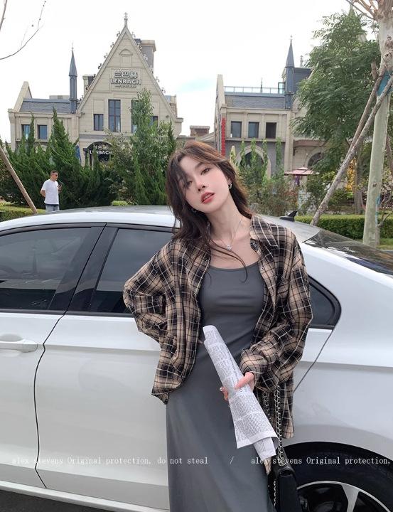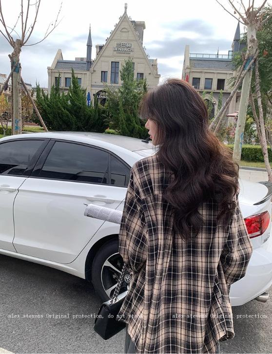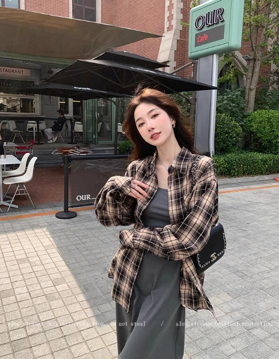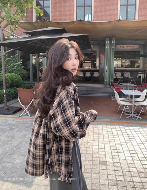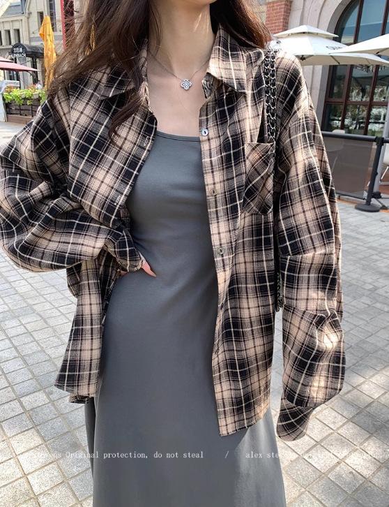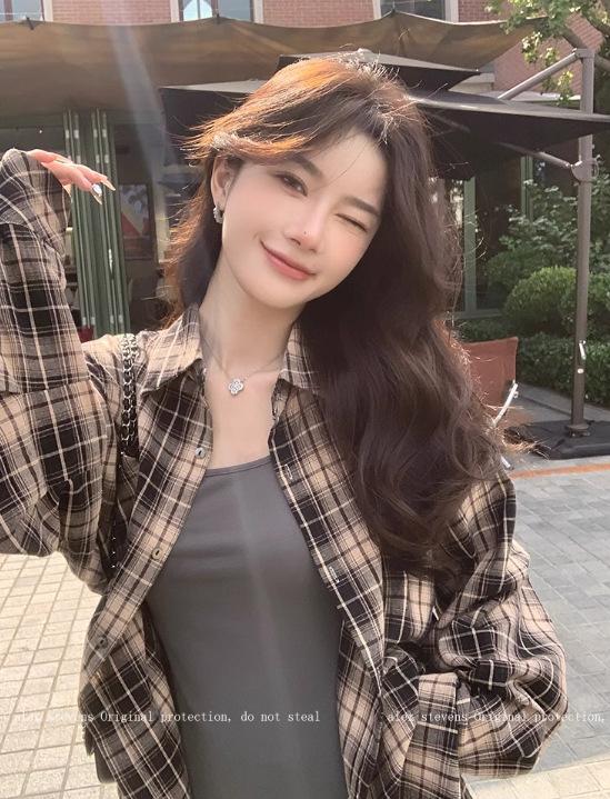 Camisa de manga larga a cuadros 2025, estilo japonés, estilo Hong Kong, camisa holgada, chaqueta informal de verano a la moda para niñas, combinable con todo.