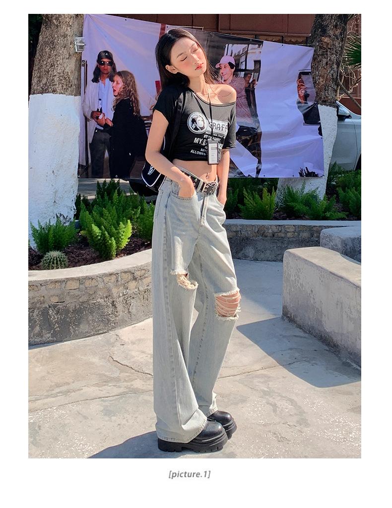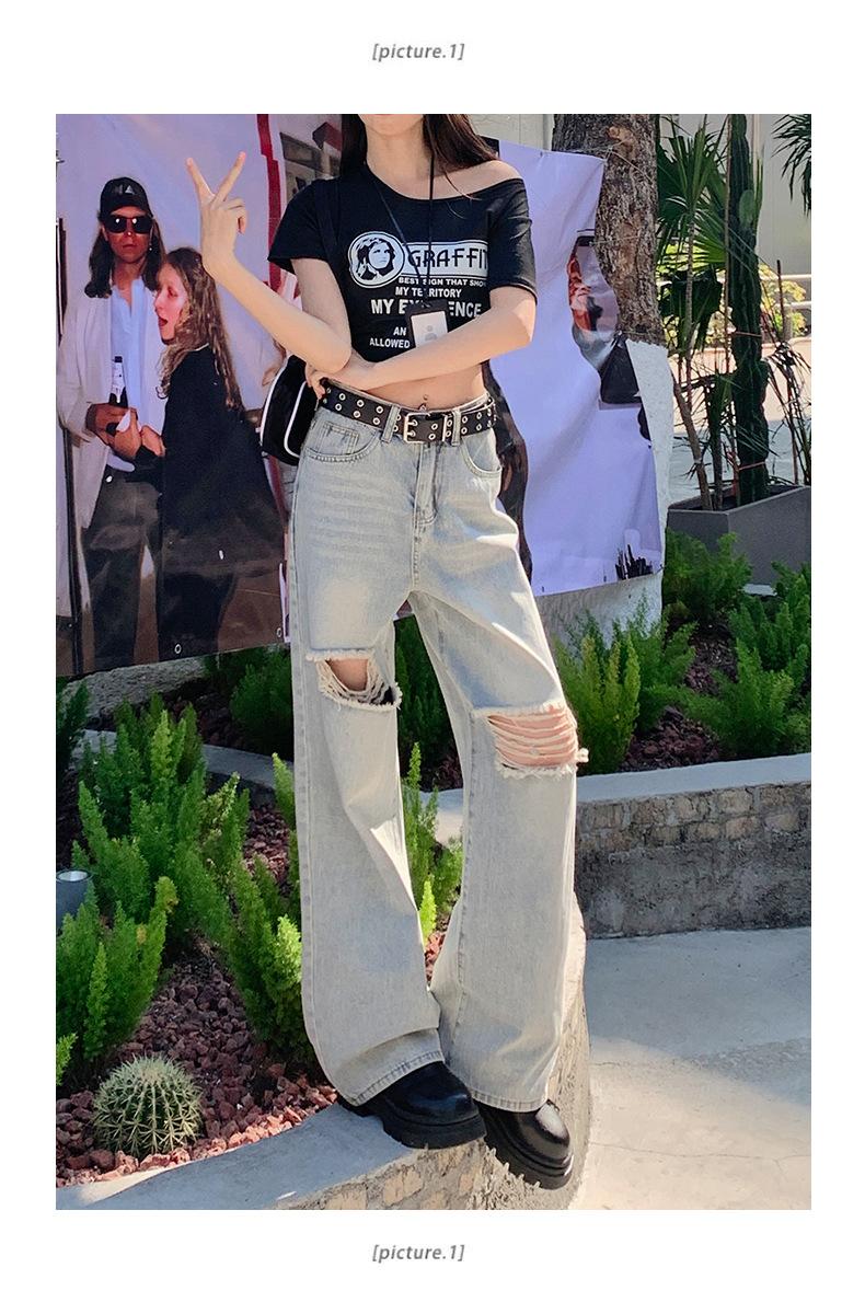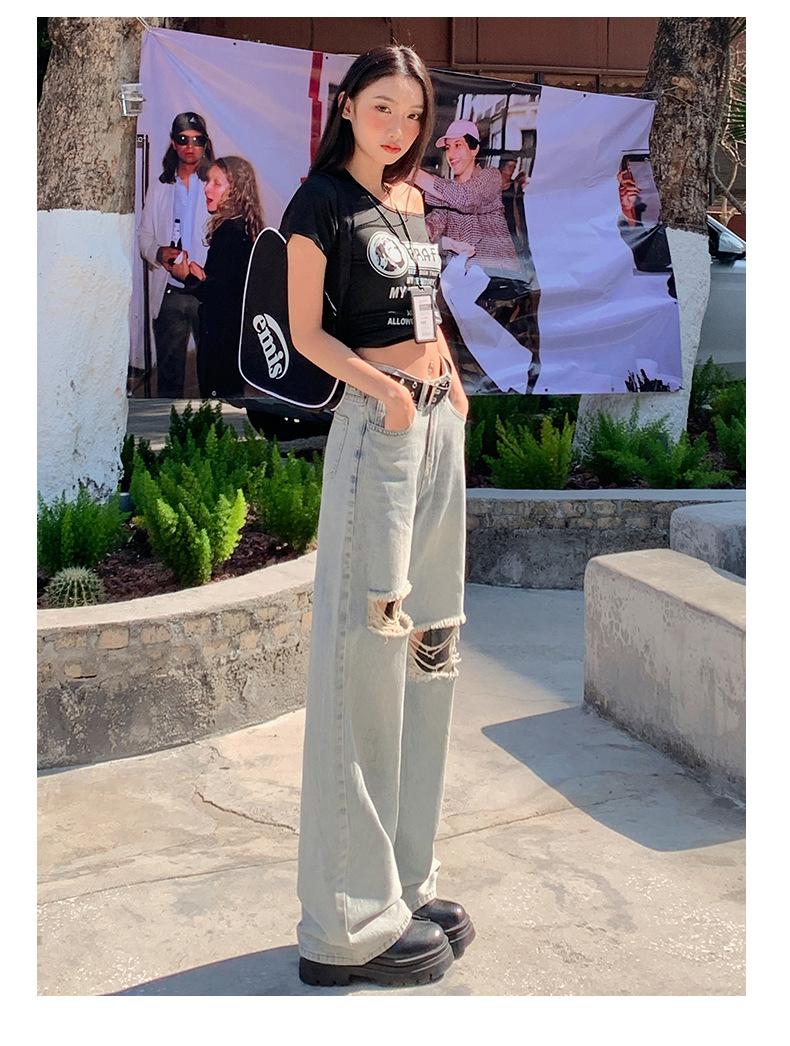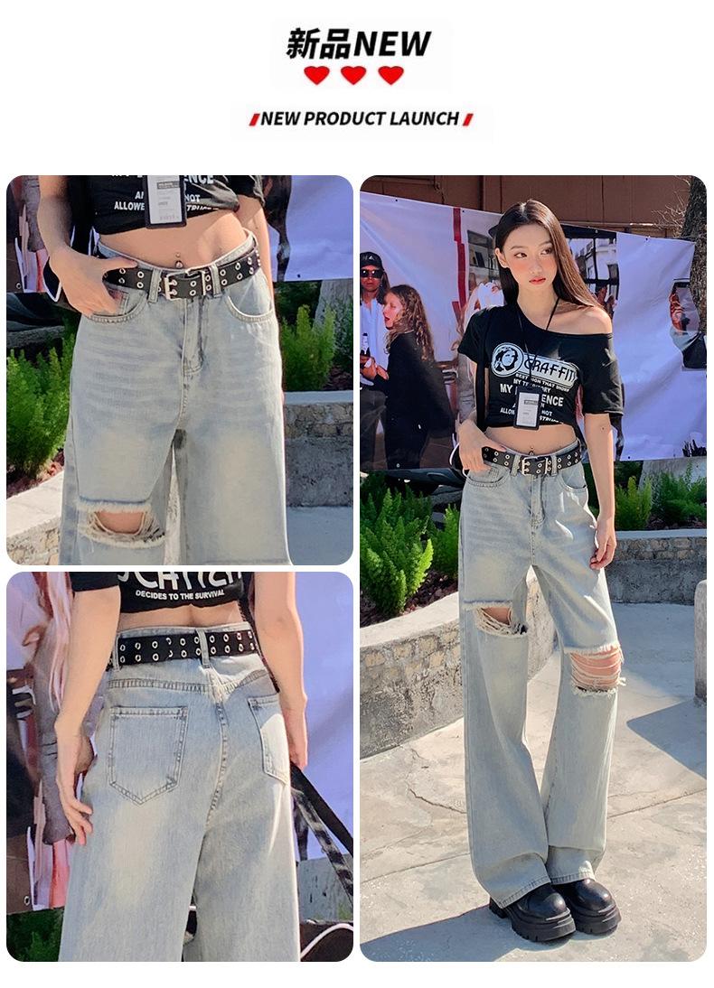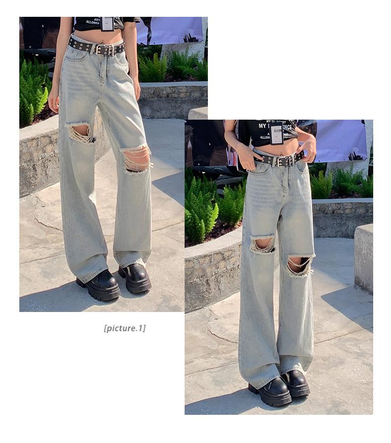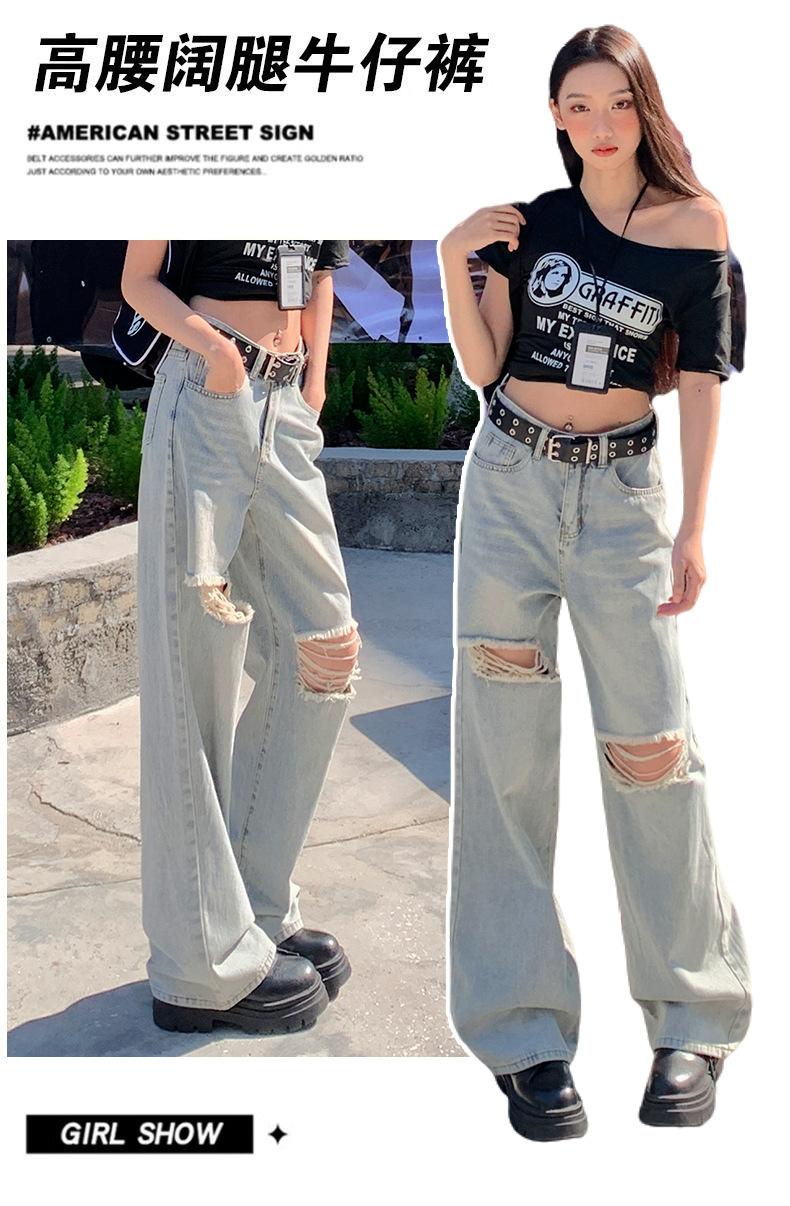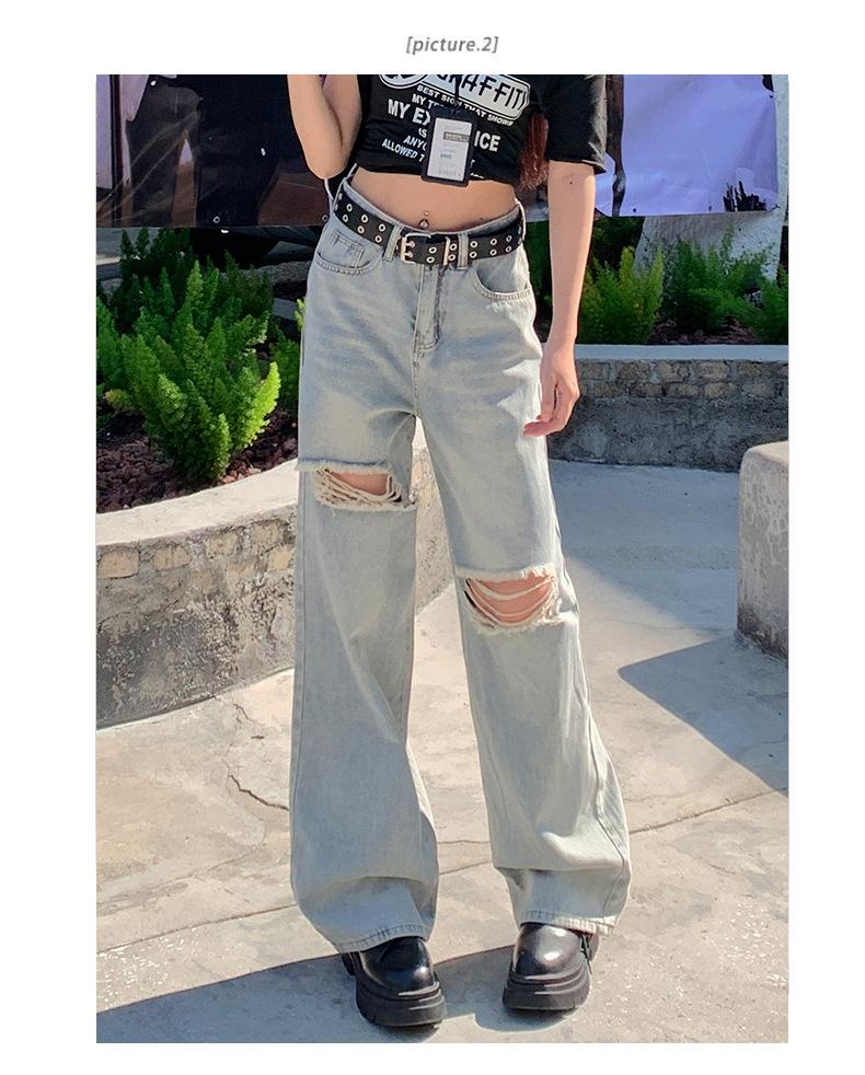 Jeans Rotos de Color Claro para Mujer Nuevos Pantalones Rectos de Cintura Alta Talla Grande para Forma de Pera Pantalones Largos para Mujer Pantalones Delgados de Verano para Altas
