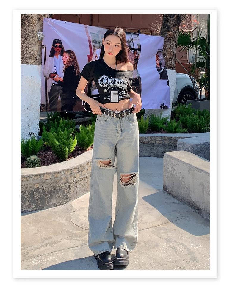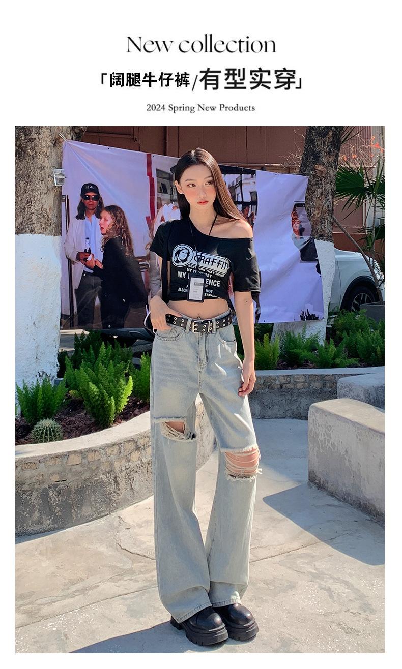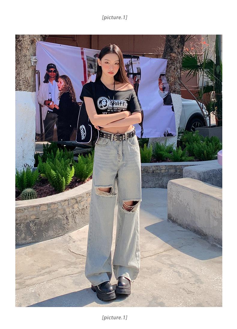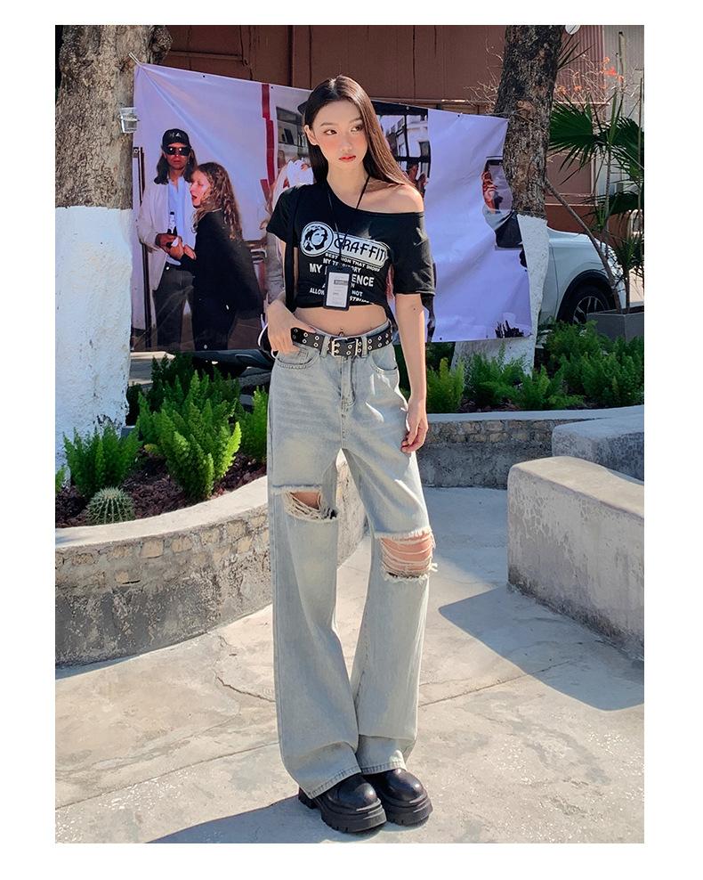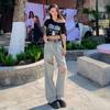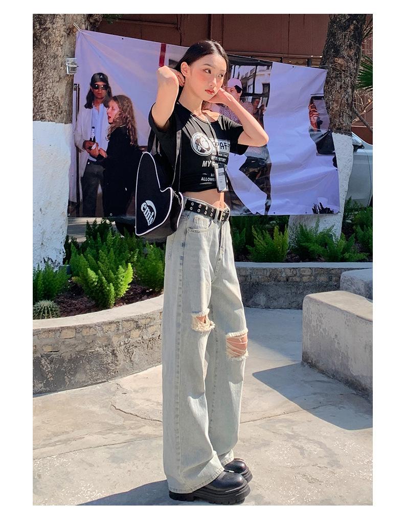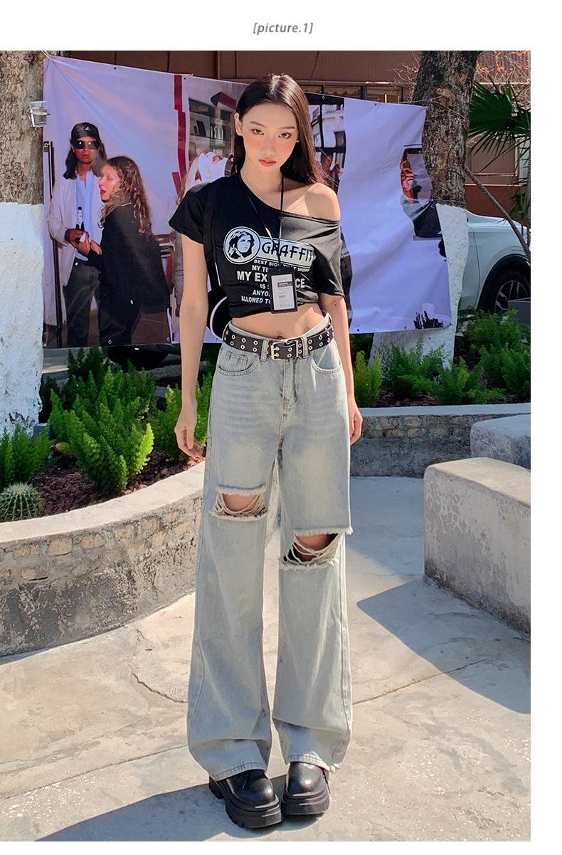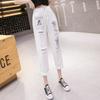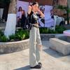 Jeans Rotos de Color Claro para Mujer Nuevos Pantalones Rectos de Cintura Alta Talla Grande para Forma de Pera Pantalones Largos para Mujer Pantalones Delgados de Verano para Altas