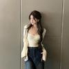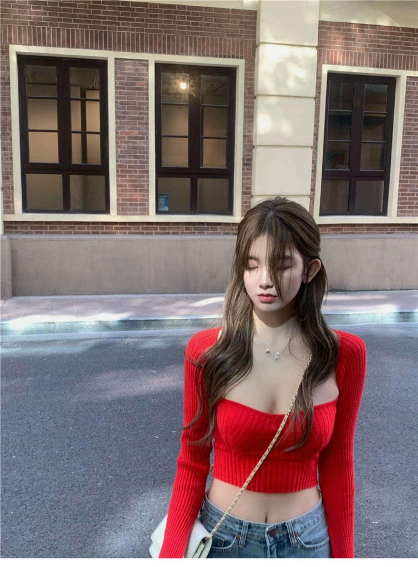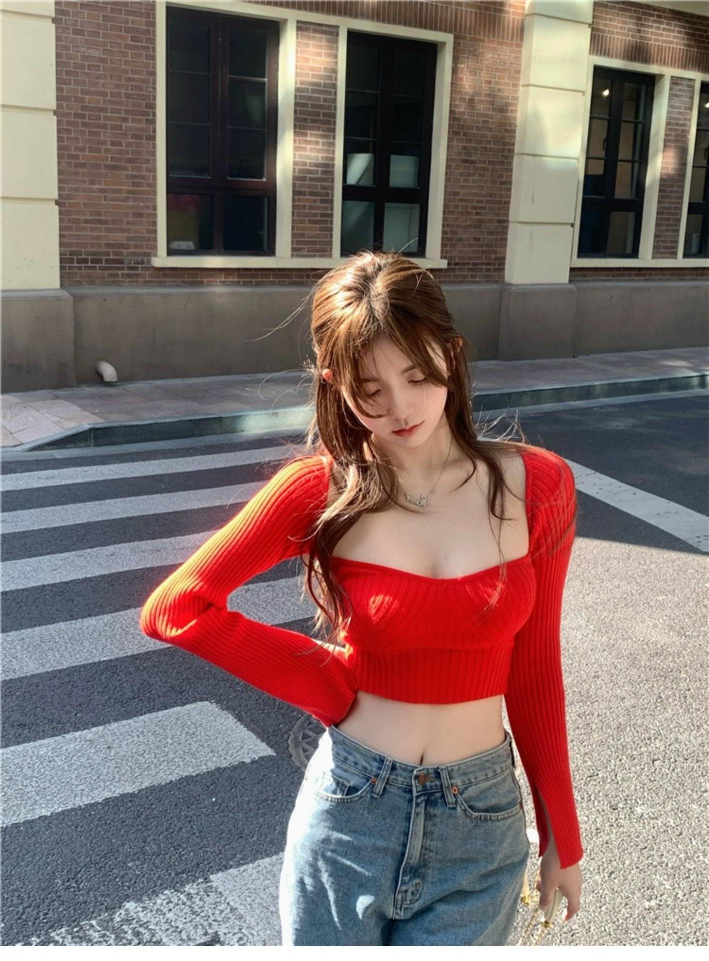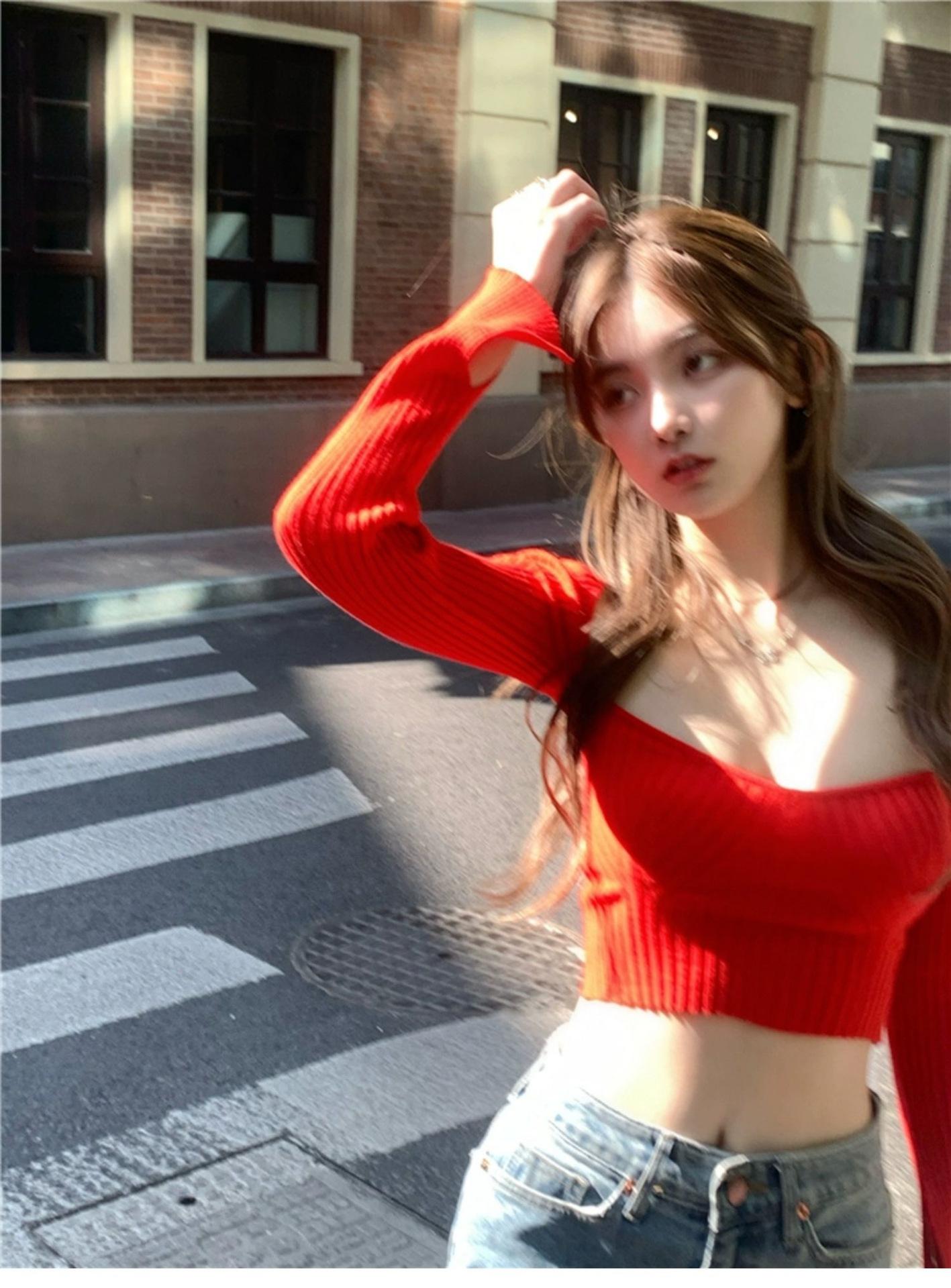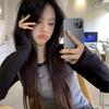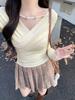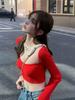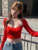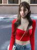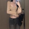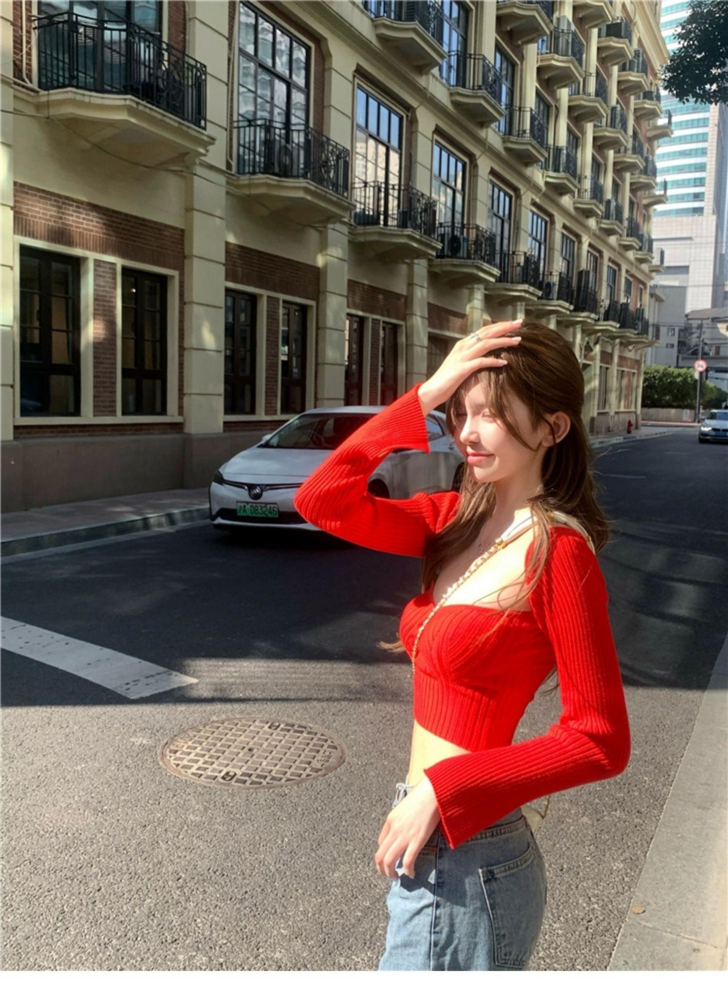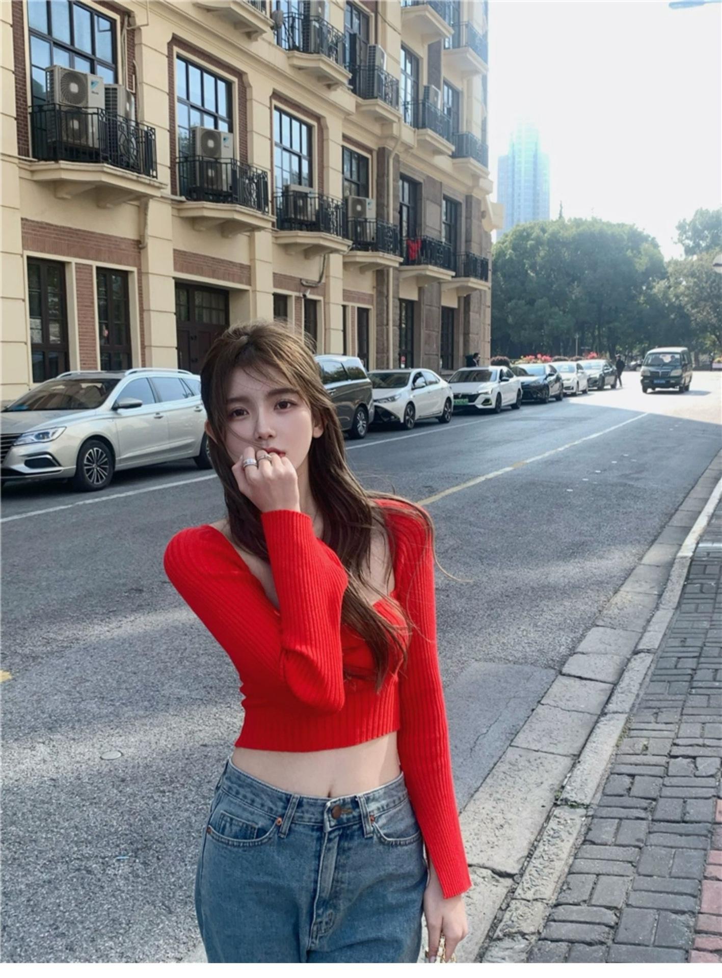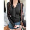 Otoño 2024 Nueva camiseta entallada adelgazante de cuello en V de manga larga Spice Girls Estilo Puro Deseo Sexy Versátil Top Nicho Ins