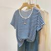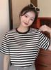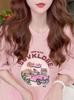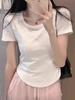 Camiseta de manga corta de algodón rosa intenso para mujer, diseño de nicho de verano, cuello redondo, suelta, estilo Hong Kong, elegante, de media manga.
