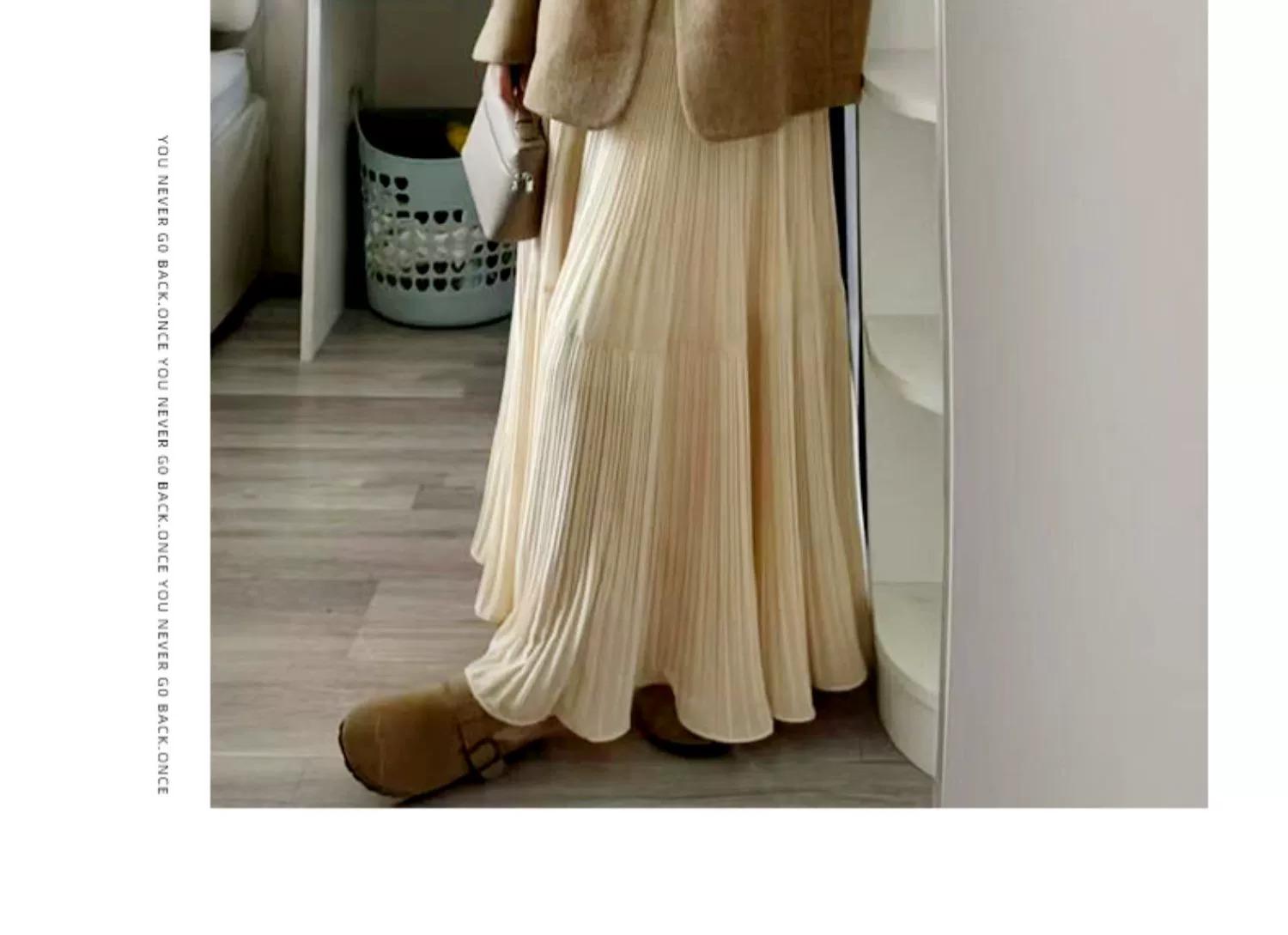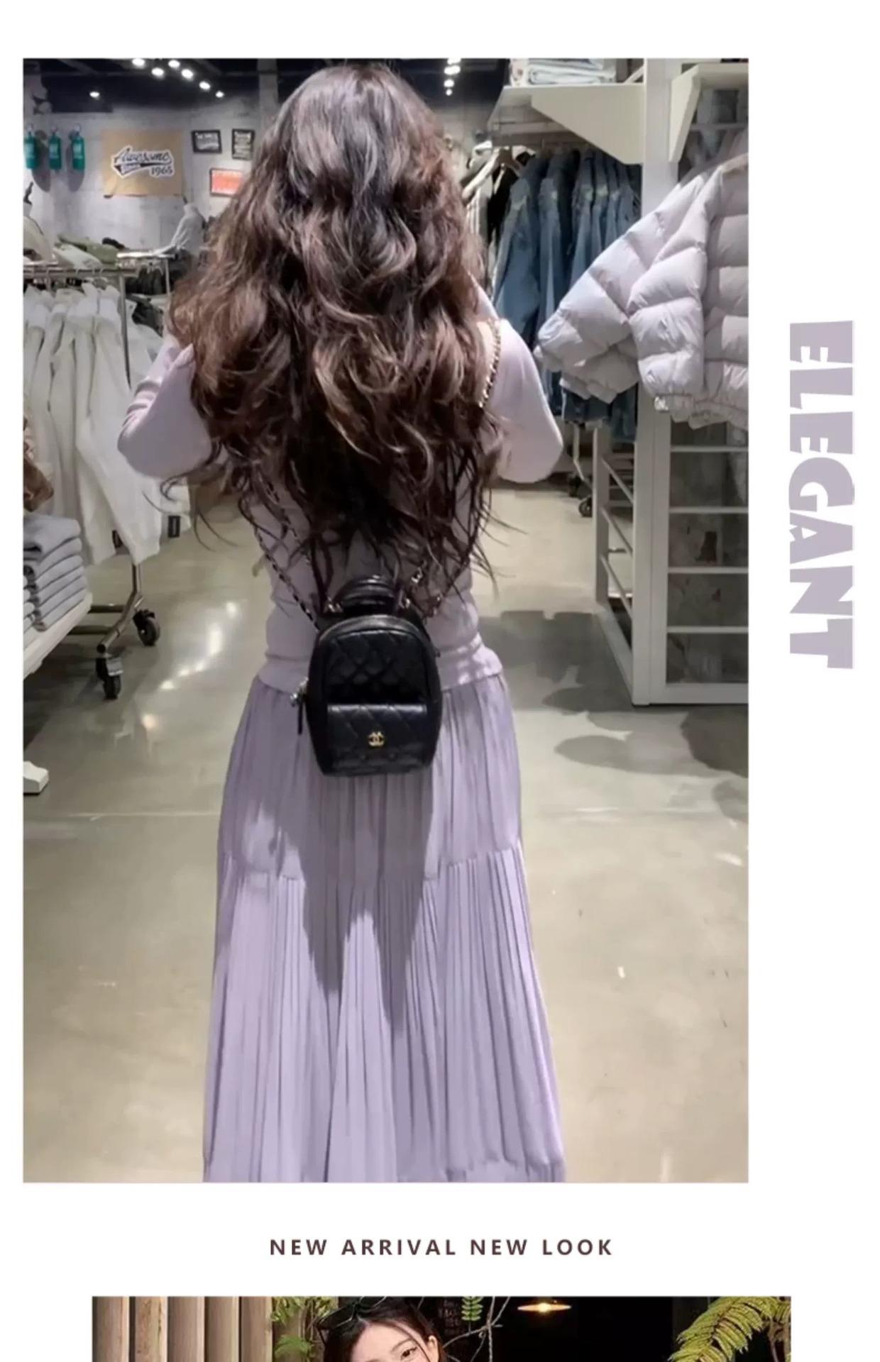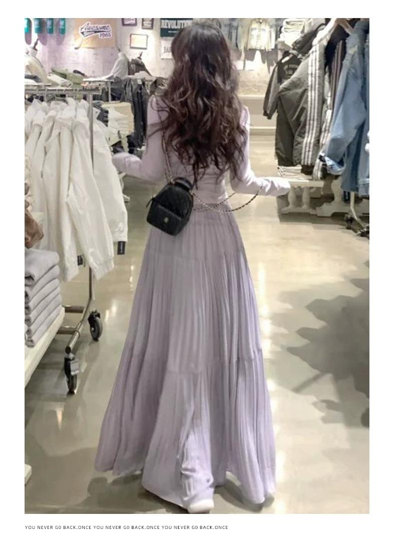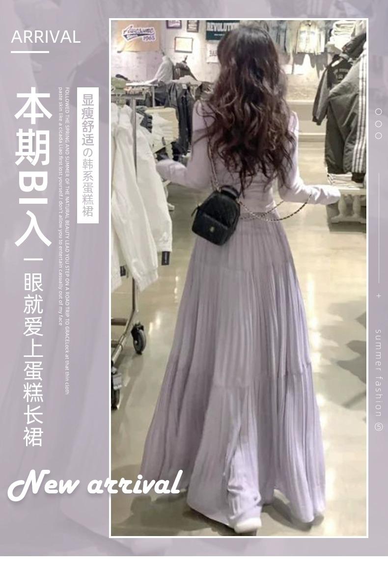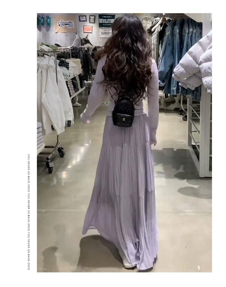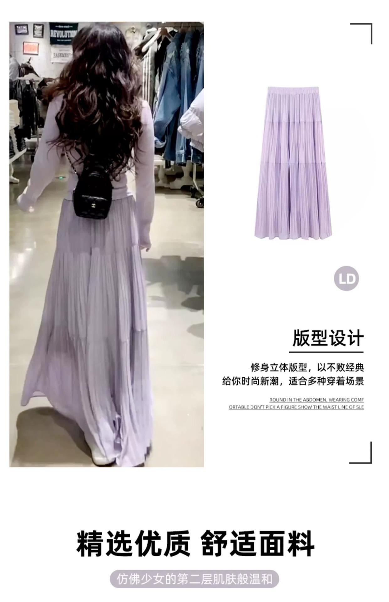 Falda morada estilo coreano para mujer, primavera y verano 2025, nueva falda plisada de longitud media, cintura alta, adelgazante, corte A, falda pastel