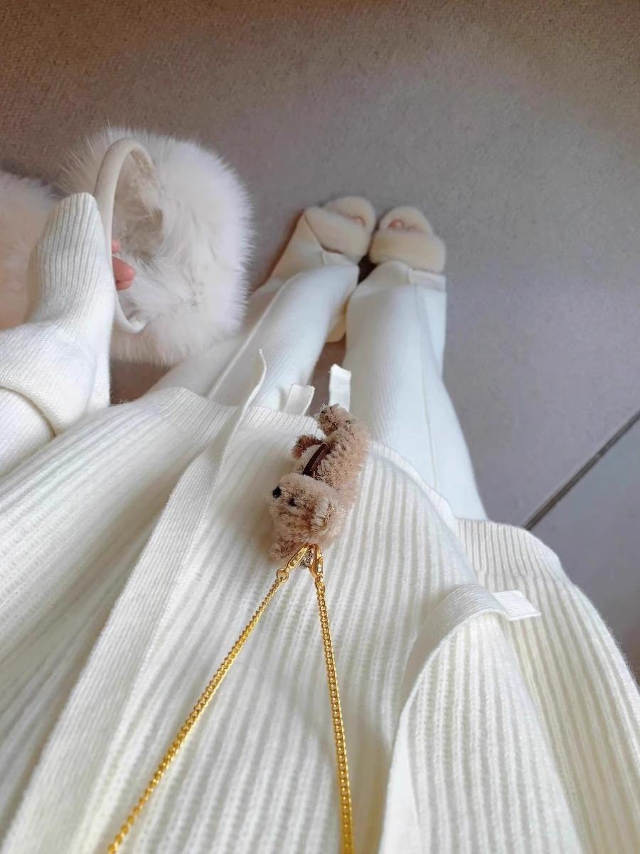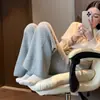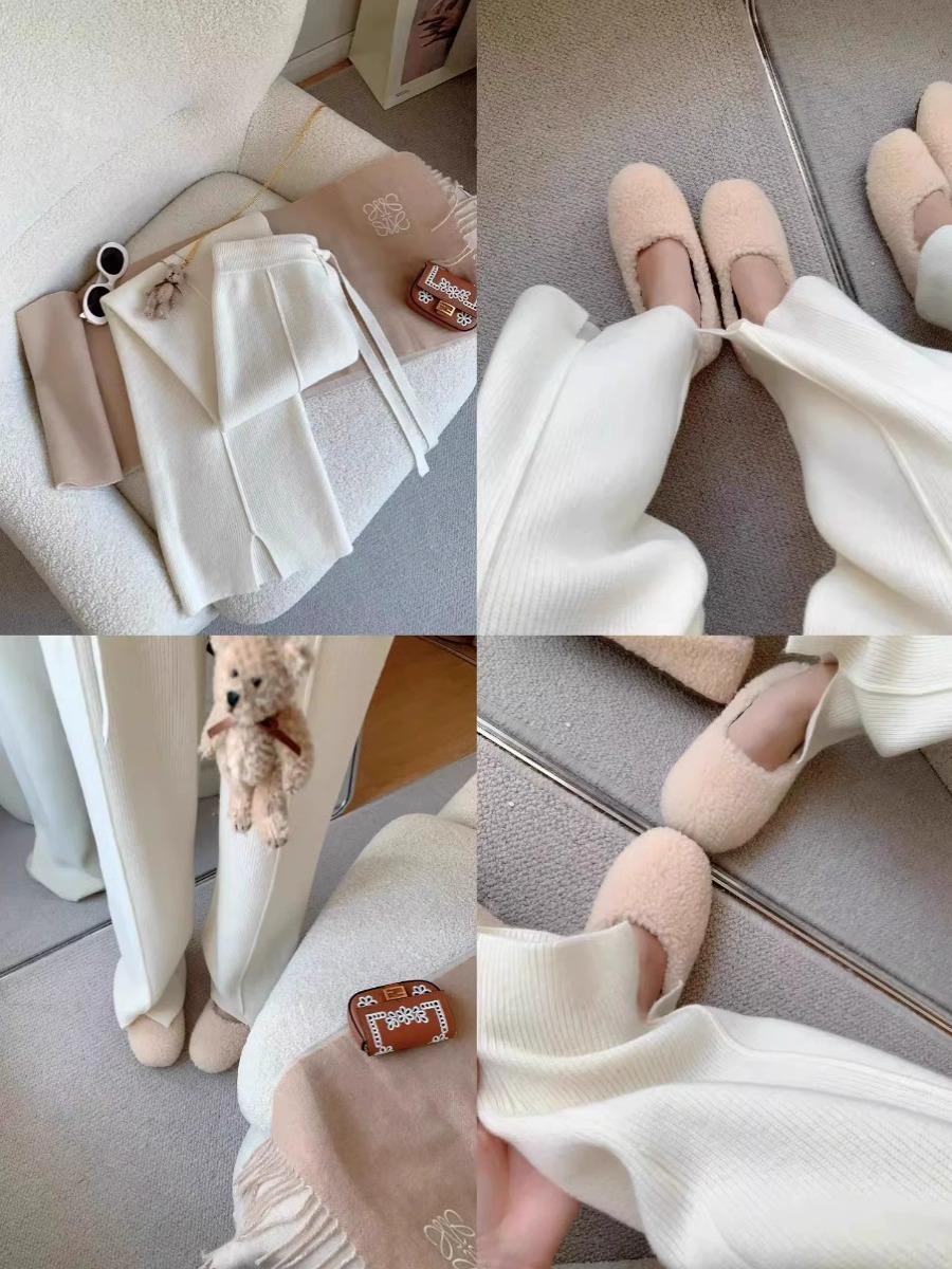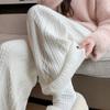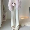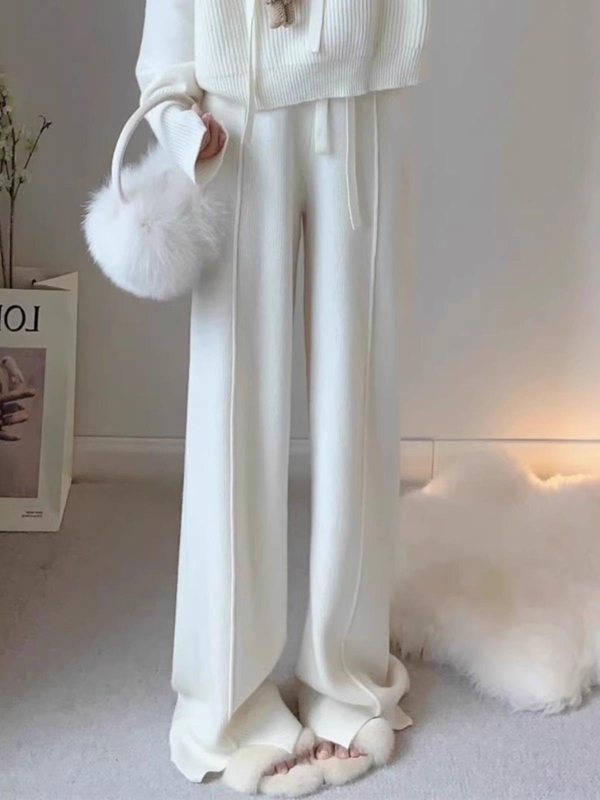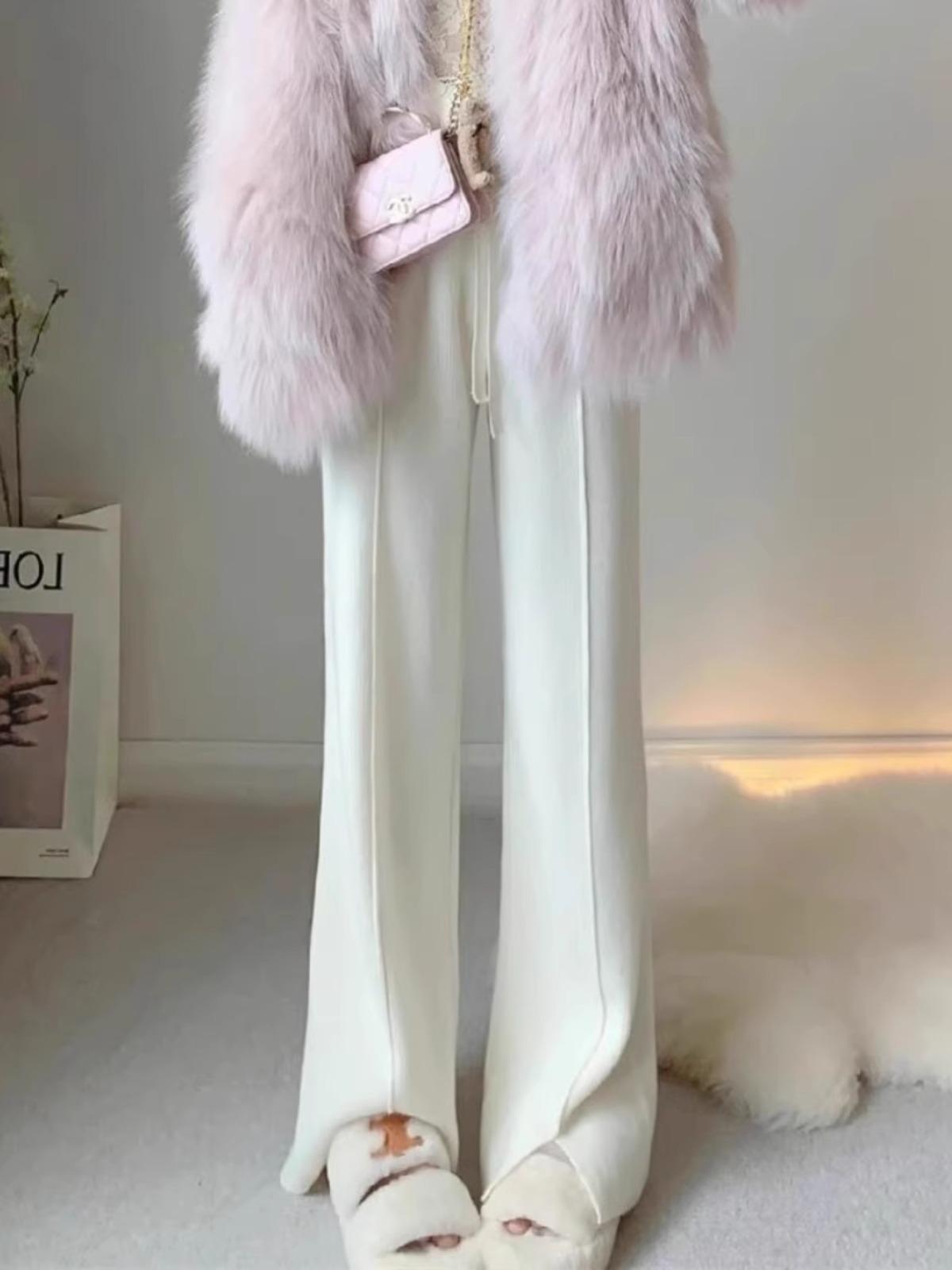 Pantalones anchos de punto encerados suaves blancos para mujer, de otoño e invierno, gruesos, de cintura alta, con aberturas, pantalones casuales, pantalones largos adelgazantes