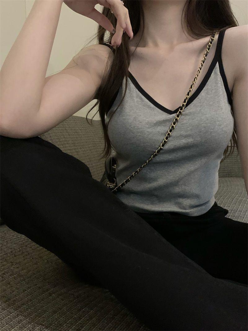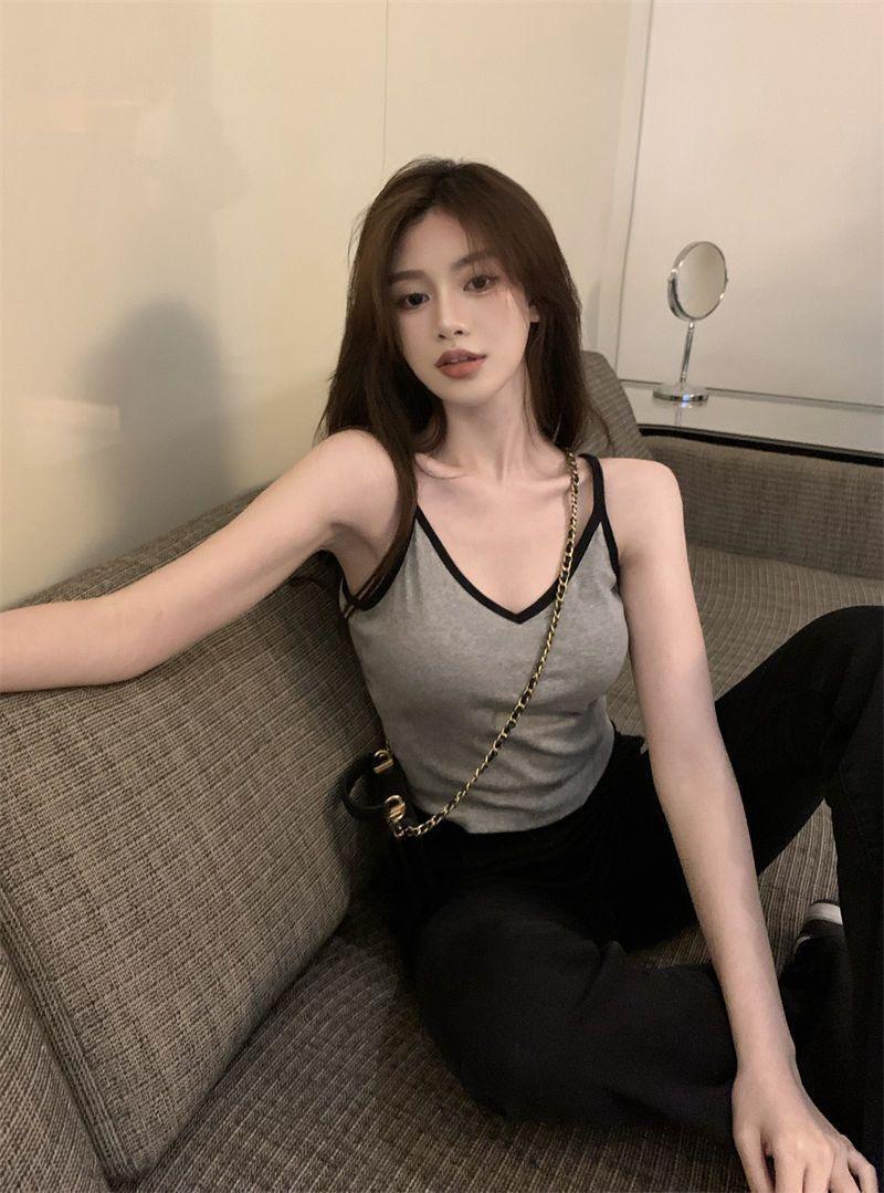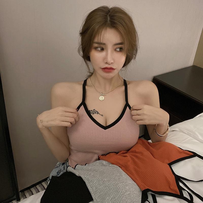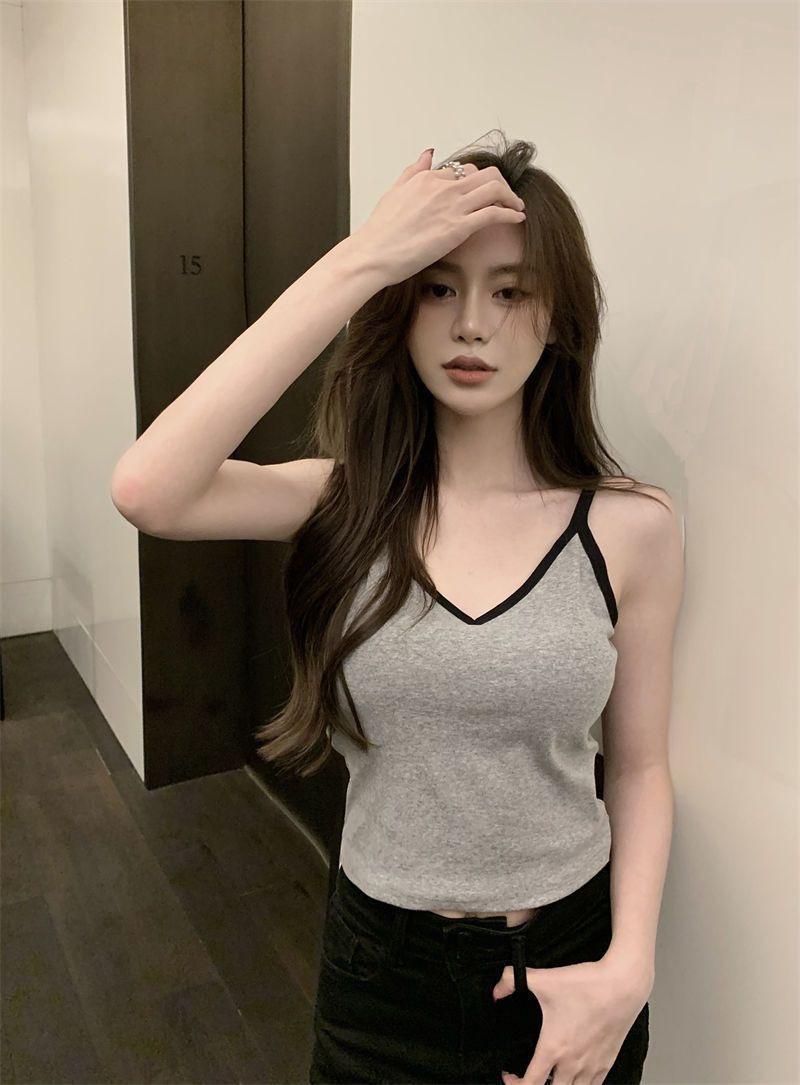 Ropa de Mujer Ins Nuevo Sexy Verano Deseo Puro Cuello en V Ropa Exterior Chaleco Corto Interior Chica Caliente Ajustado Ajustado Tirantes de Moda