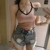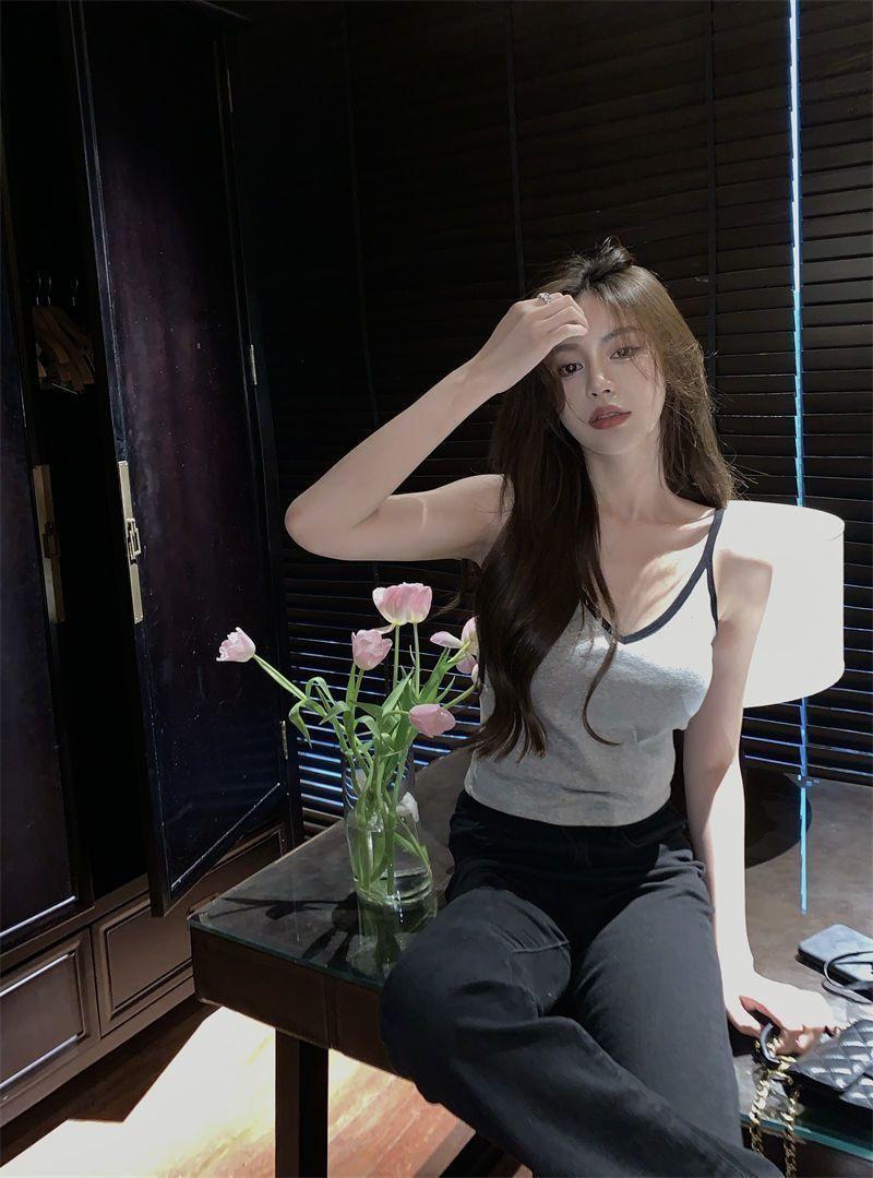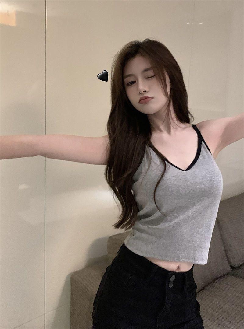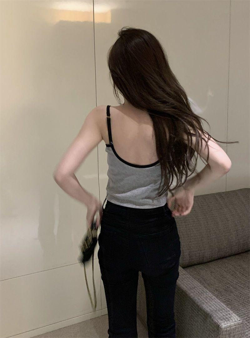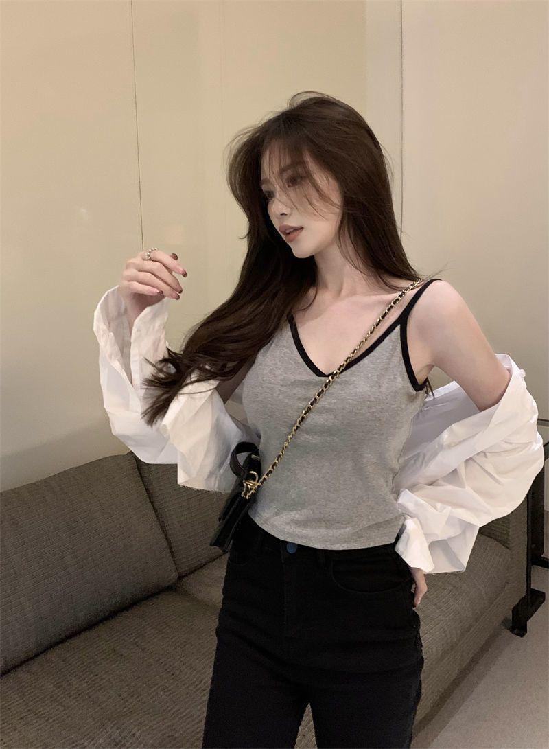Ropa de Mujer Ins Nuevo Sexy Verano Deseo Puro Cuello en V Ropa Exterior Chaleco Corto Interior Chica Caliente Ajustado Ajustado Tirantes de Moda
