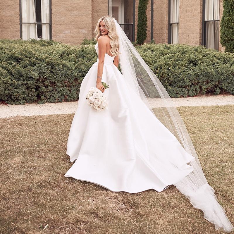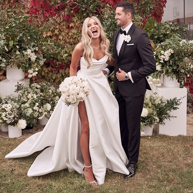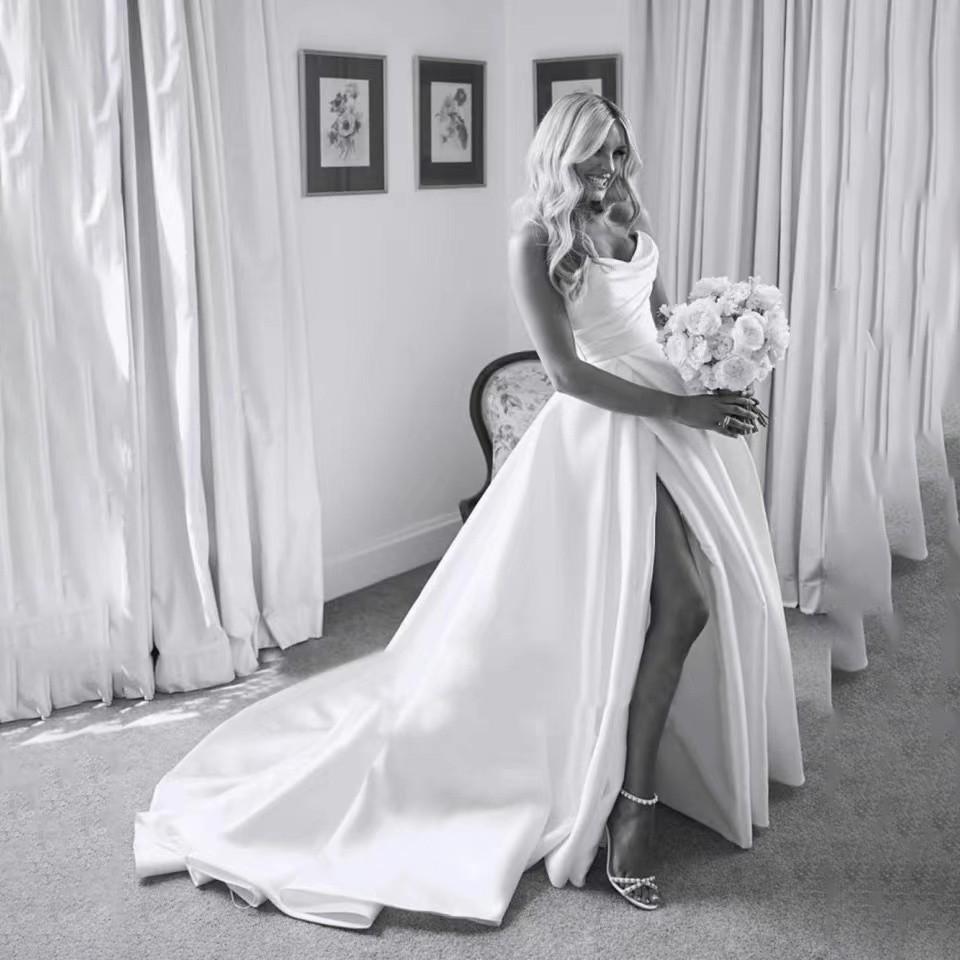 Vestido de novia nuevo de satén de comercio exterior europeo y americano 2025 wish Amazon temperamento de alta gama strapless con abertura