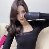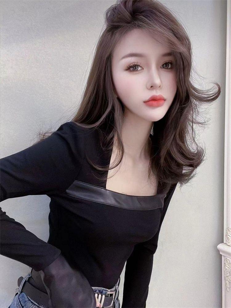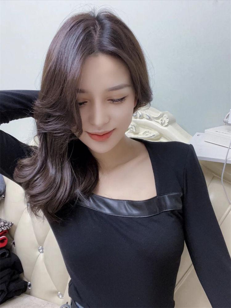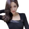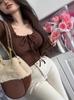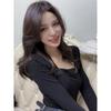 Camiseta de manga larga con cuello cuadrado sexy de Sweet Spice Girl, otoño e invierno, corte entallado, estilo Pure Desire, top de moda único de nicho.