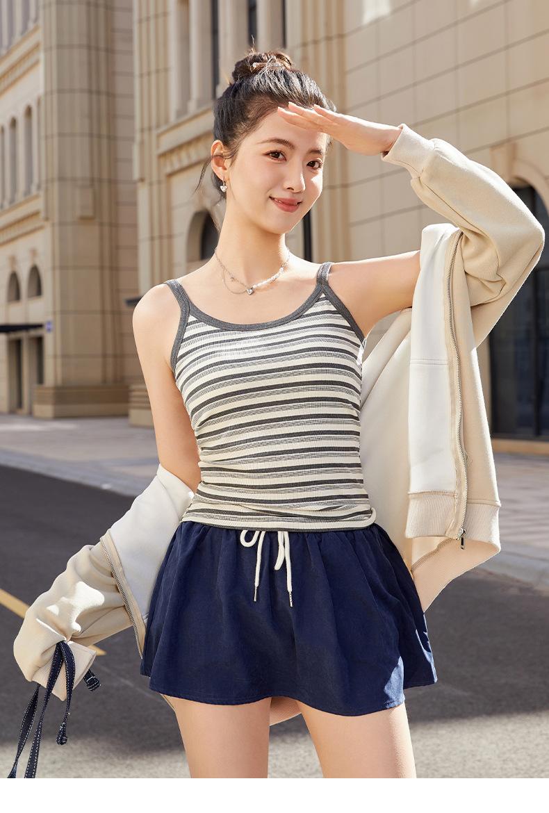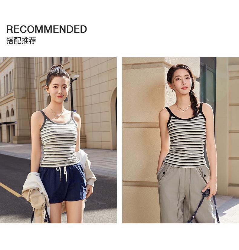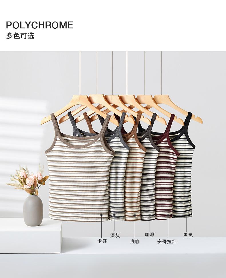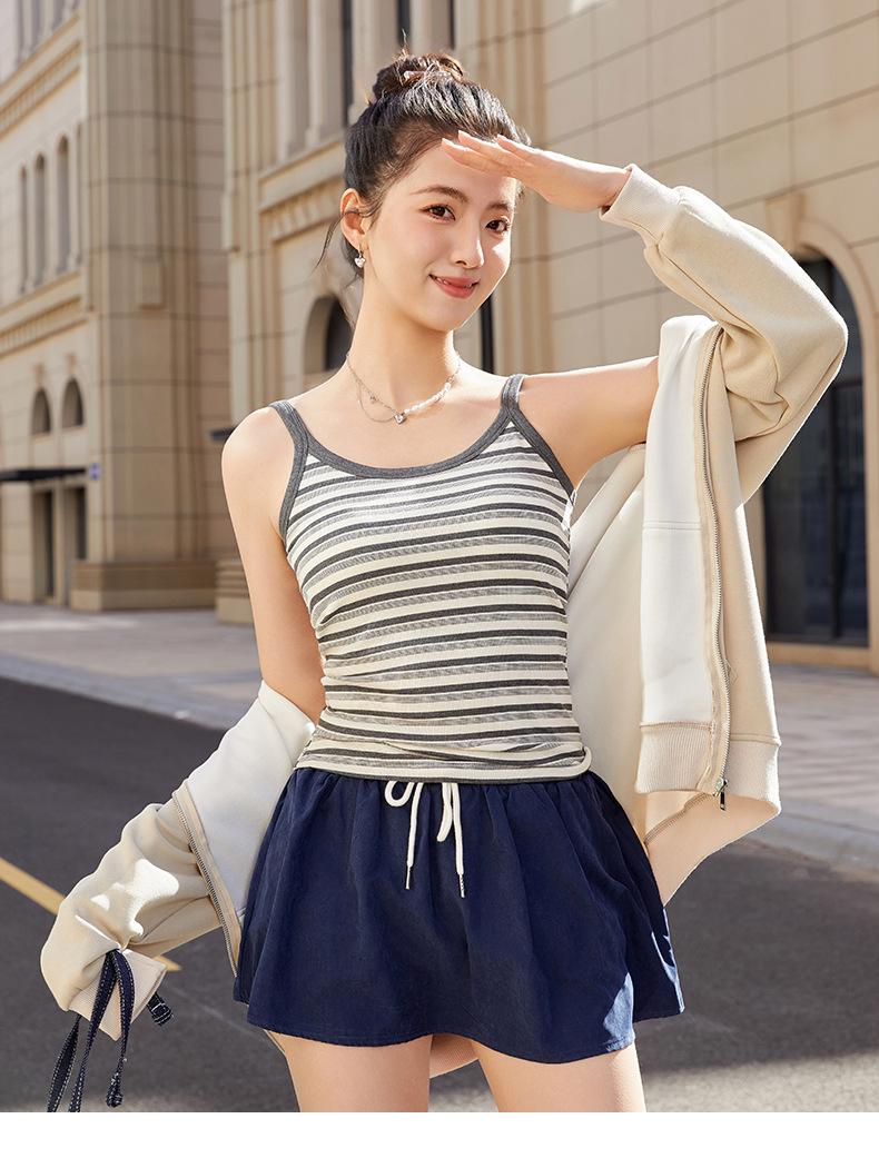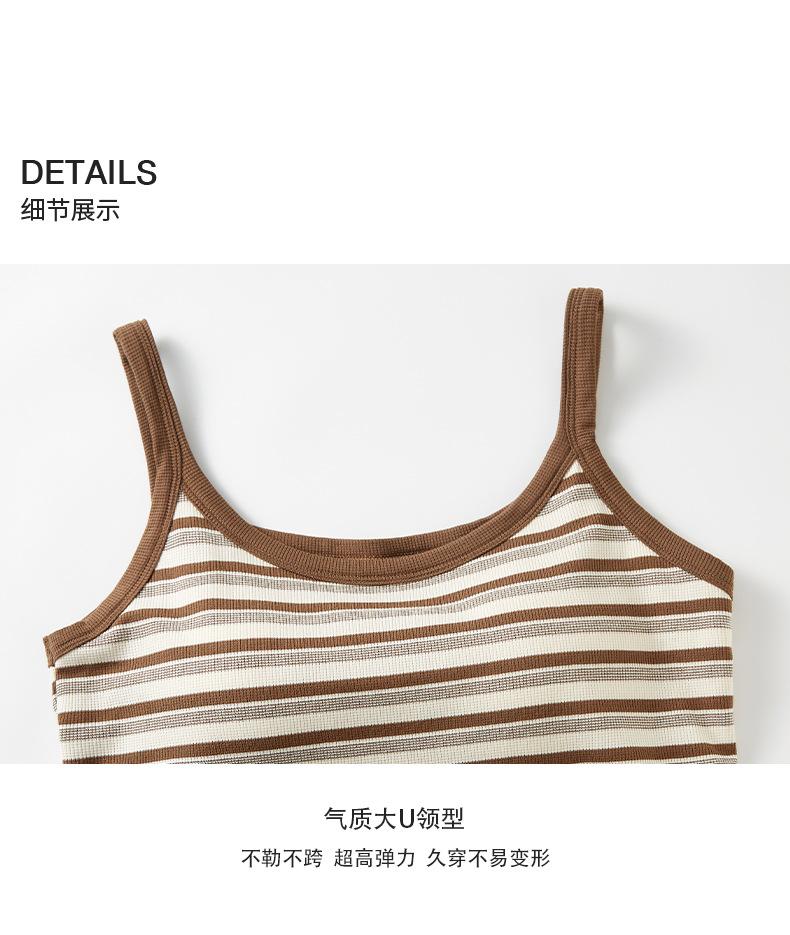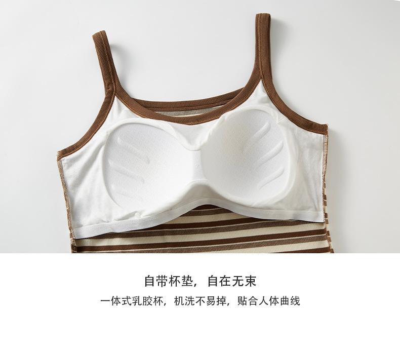 Camisola de Rayas de Primavera y Verano para Mujer con Almohadilla en el Pecho Enterizo Interior Ajustado Adelgazante Exterior Top Básico Largo para Mujer