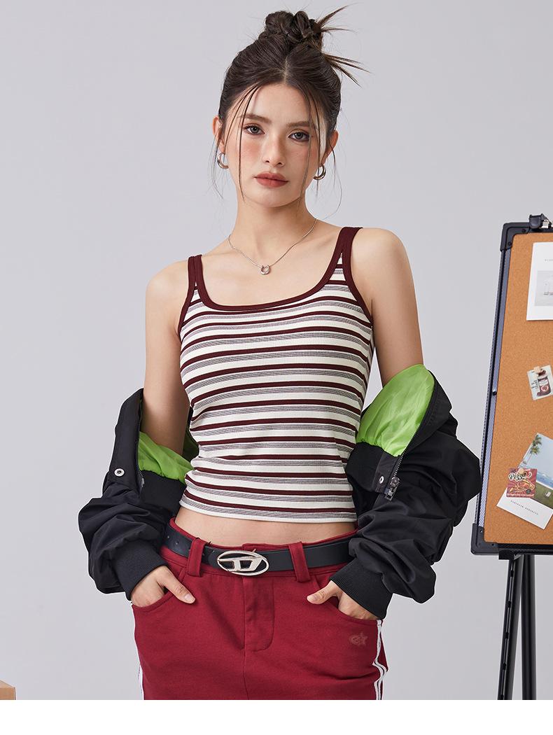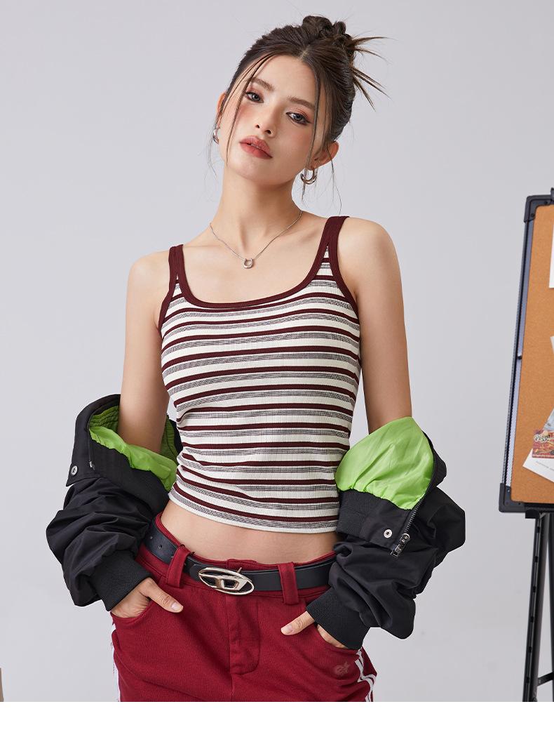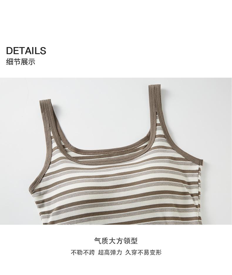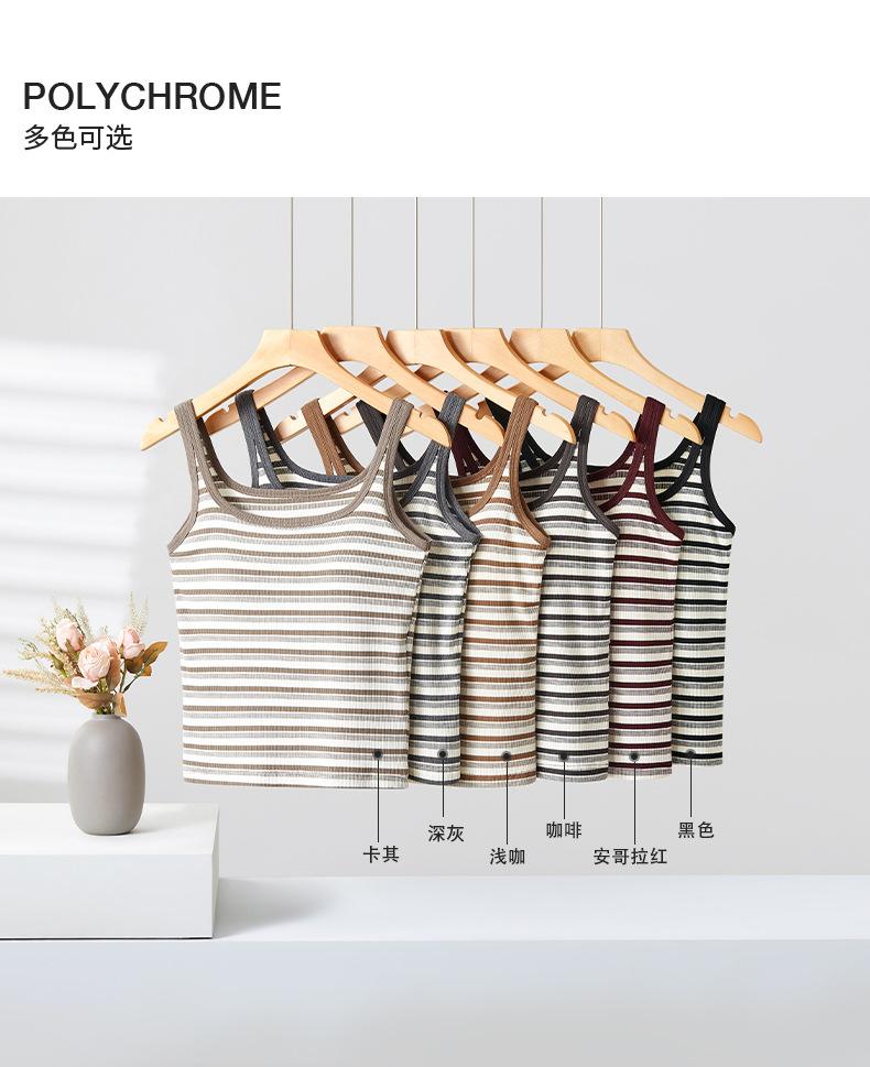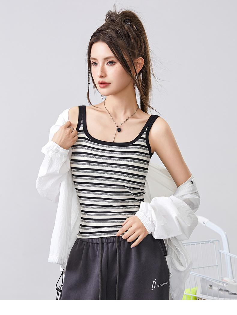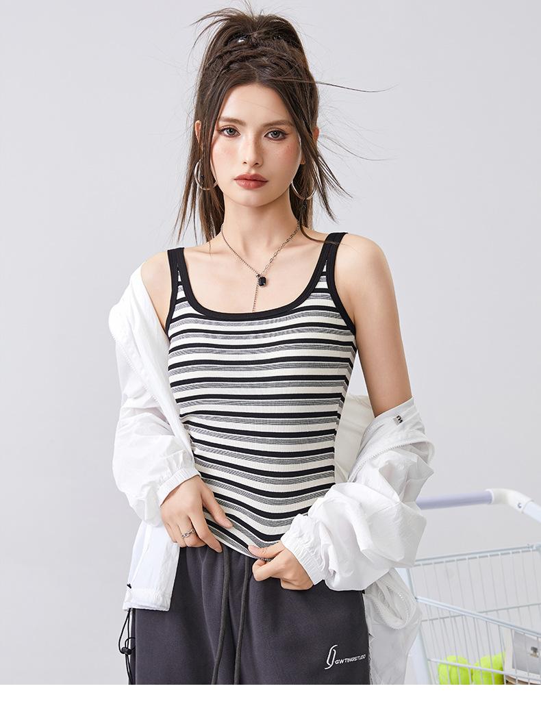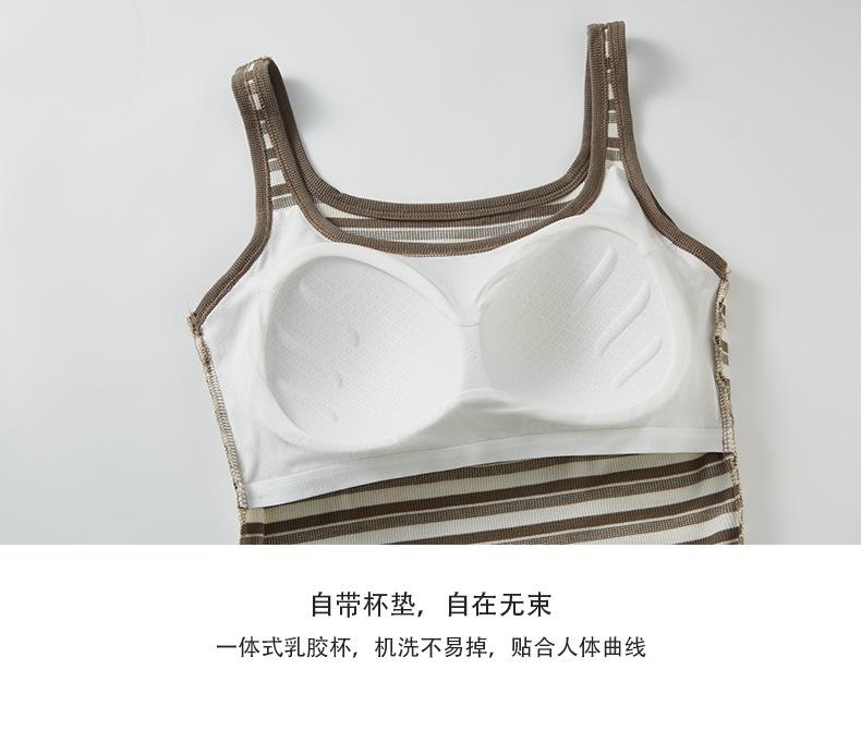 Camisola pequeña a rayas con almohadilla para el pecho para mujer, base interior de primavera y verano, top sin mangas adelgazante de corte ajustado