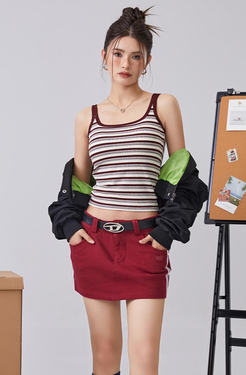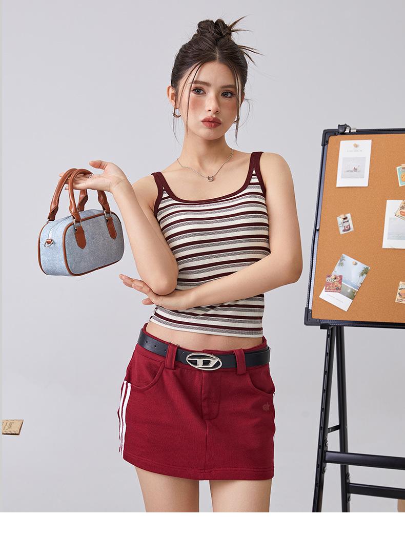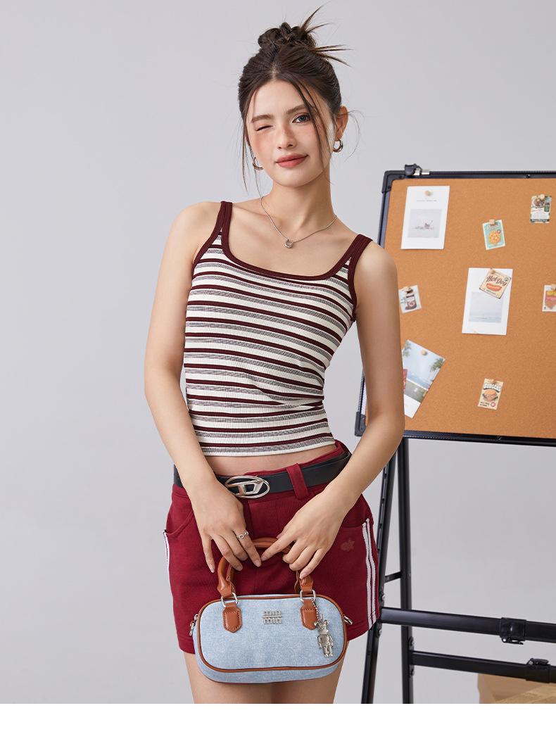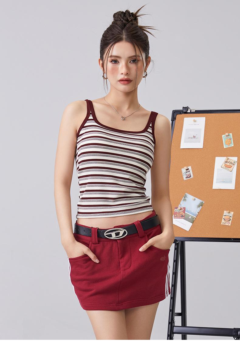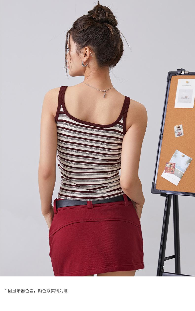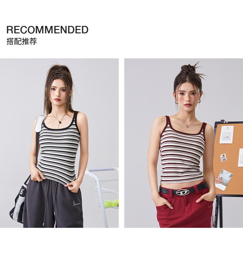 Camisola pequeña a rayas con almohadilla para el pecho para mujer, base interior de primavera y verano, top sin mangas adelgazante de corte ajustado