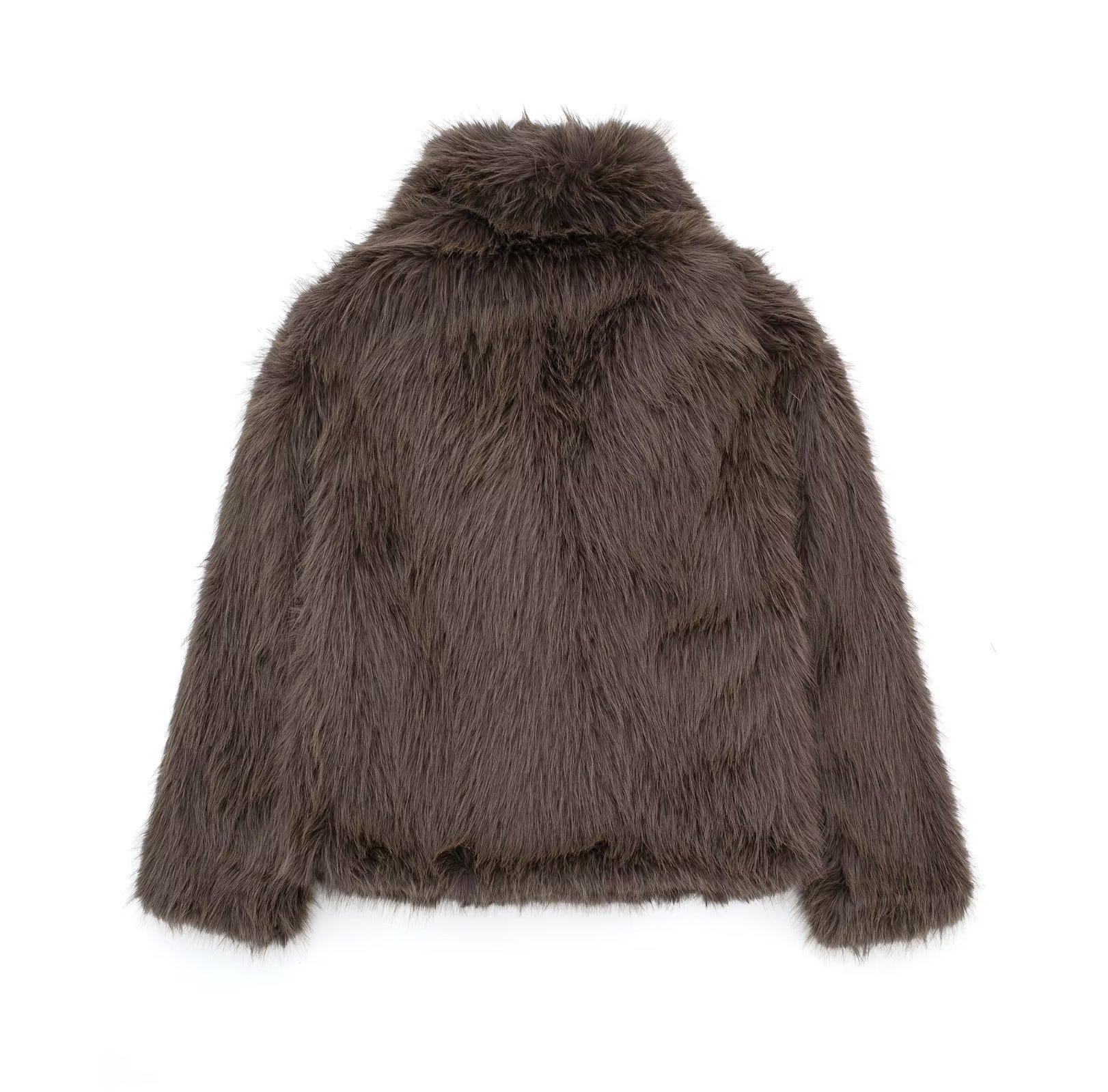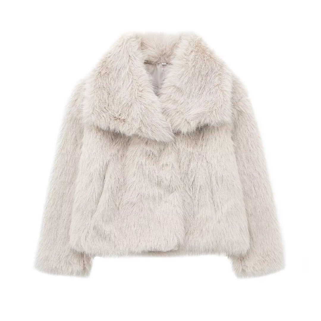Nuevos Productos Otoño e Invierno 2023 Moda Femenina Transfronteriza Europea y Americana Lujo Efecto Piel Sintética Abrigo Corto