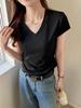 Camiseta de manga corta con escote en V y hombros descubiertos para mujer, diseño con cintura adelgazante, dulce y sexy, de verano 2025