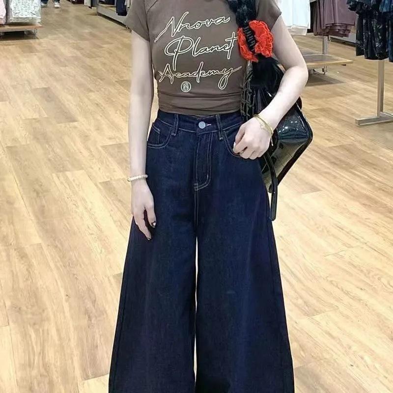Pantalones vaqueros de pierna ancha lavados vintage Spice Girl para mujer, pantalones rectos holgados y adelgazantes de cintura alta