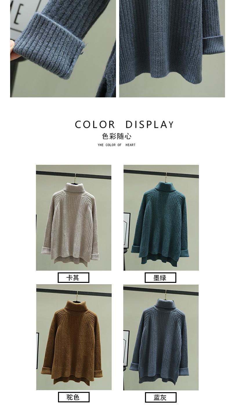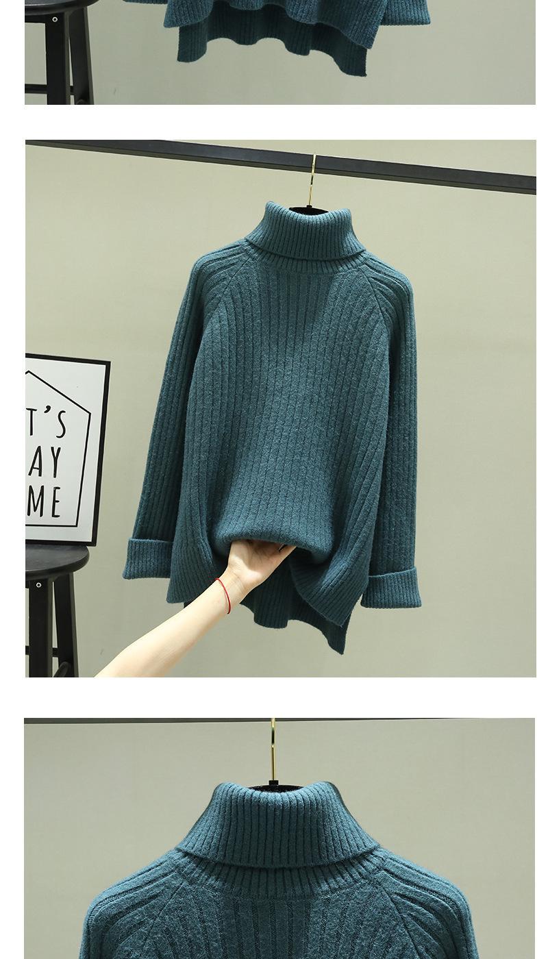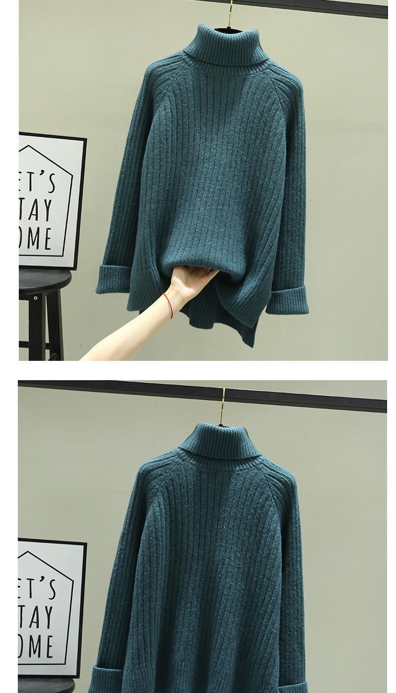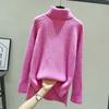 Suéter de Cuello Alto para Mujer Otoño e Invierno 2024 Nueva Moda Holgado Perezoso Color Sólido Tejido Camiseta Base Top de Moda