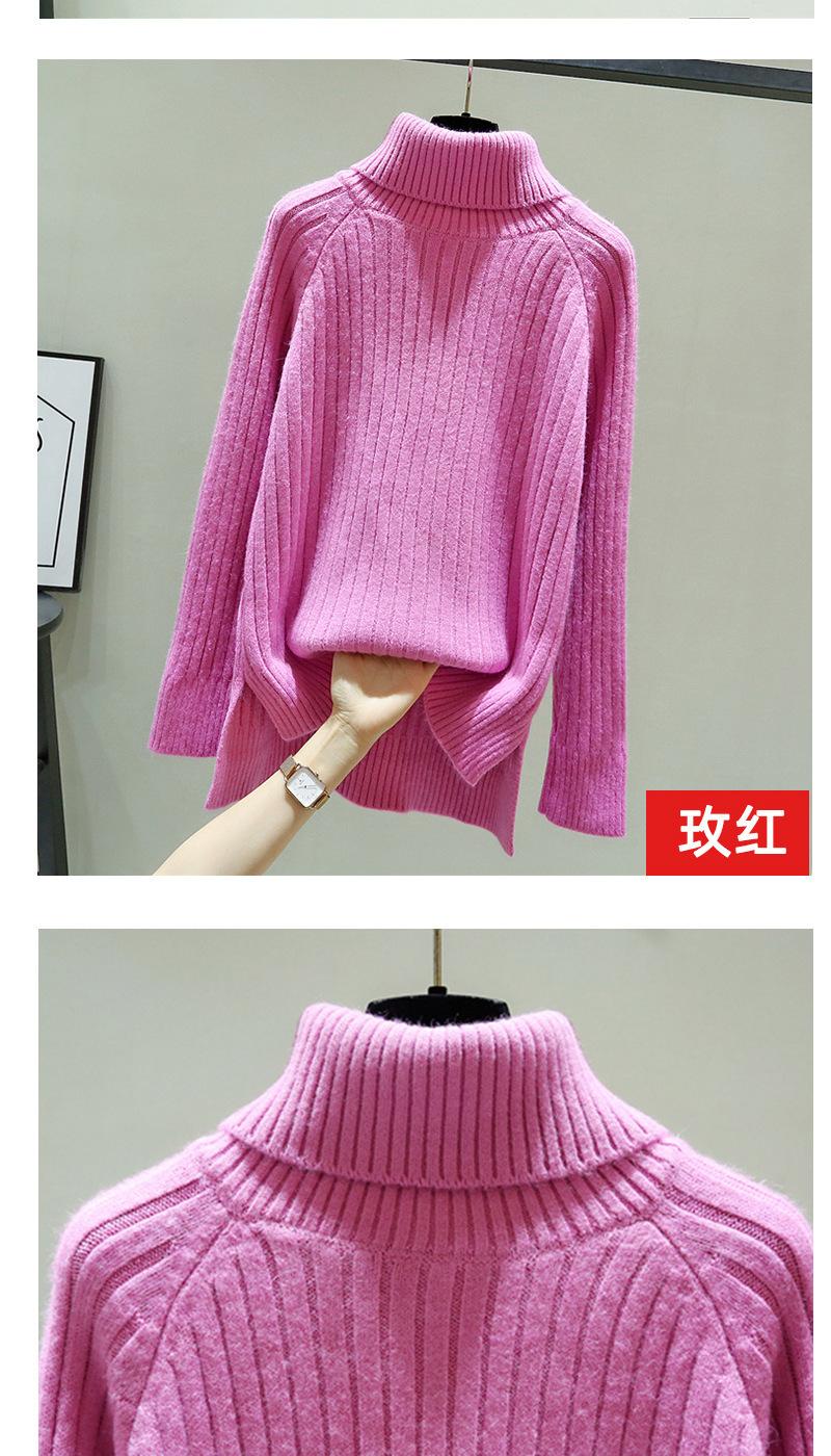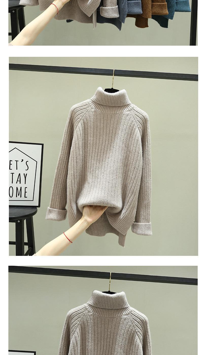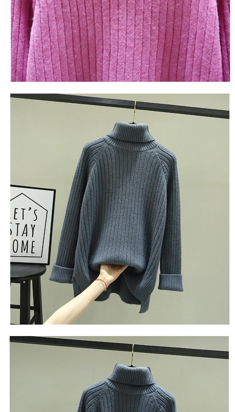 Suéter de Cuello Alto para Mujer Otoño e Invierno 2024 Nueva Moda Holgado Perezoso Color Sólido Tejido Camiseta Base Top de Moda