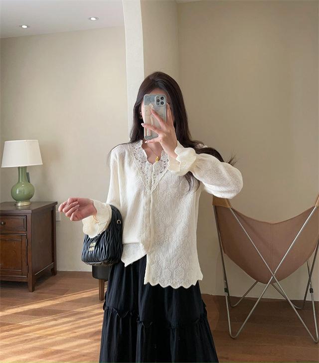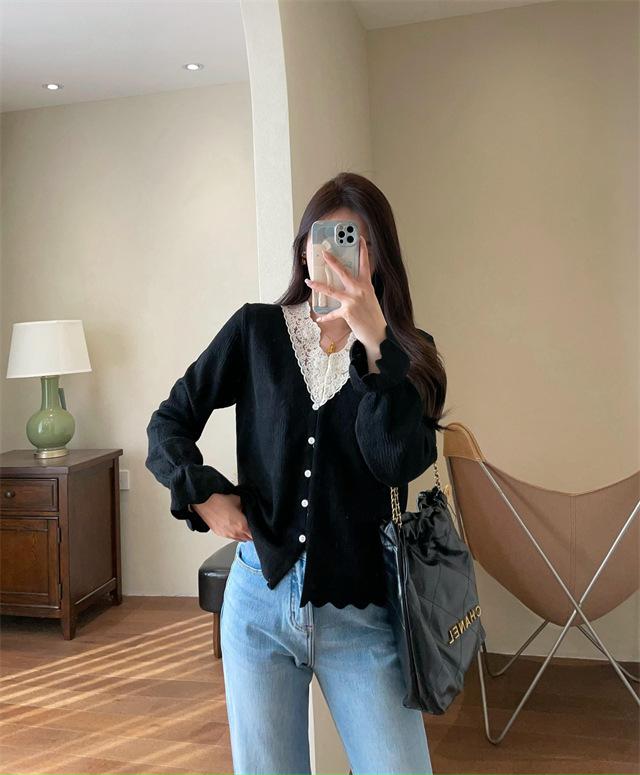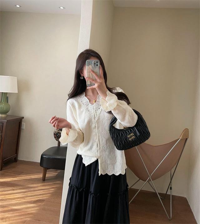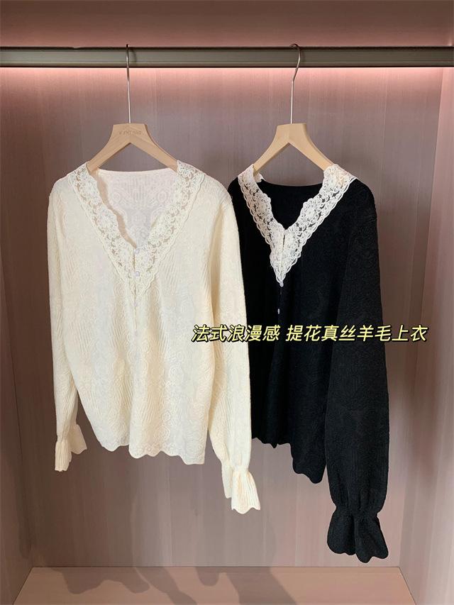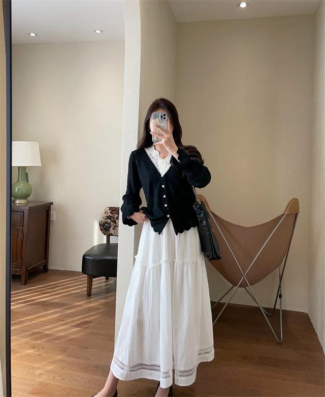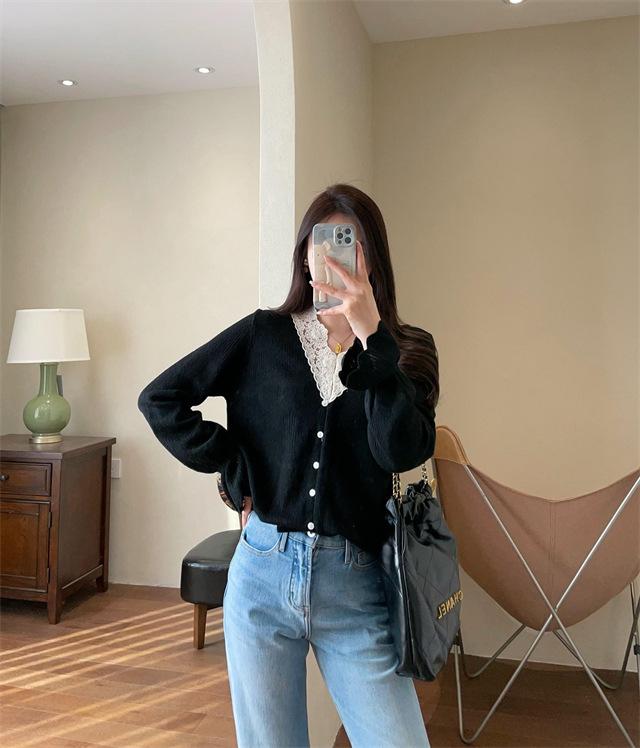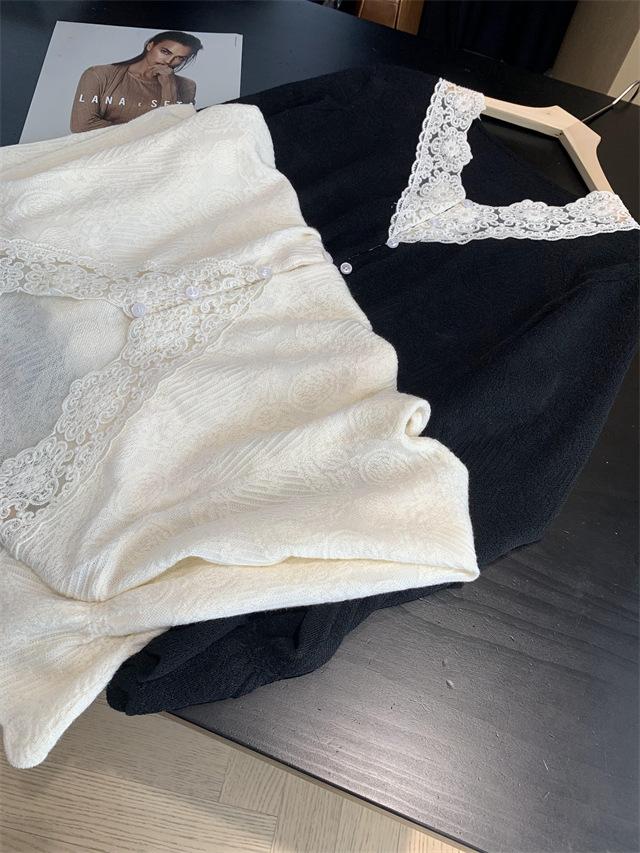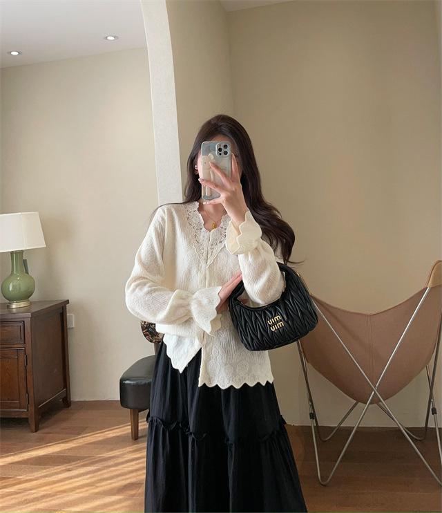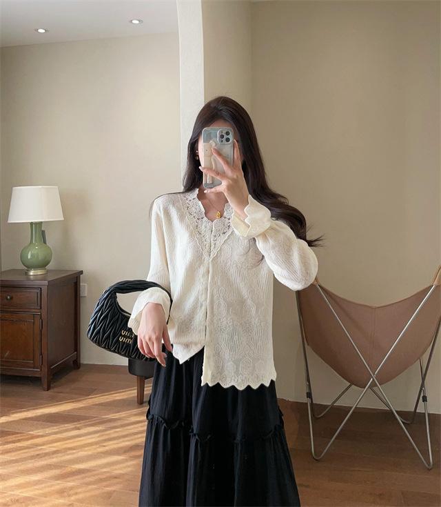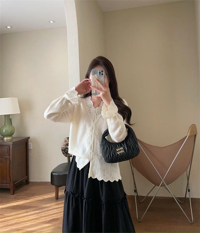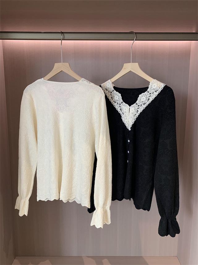 El suéter con costura de encaje muestra tu temperamento elegante.