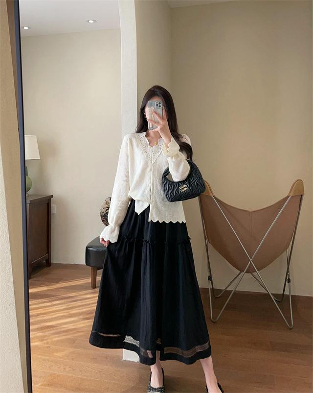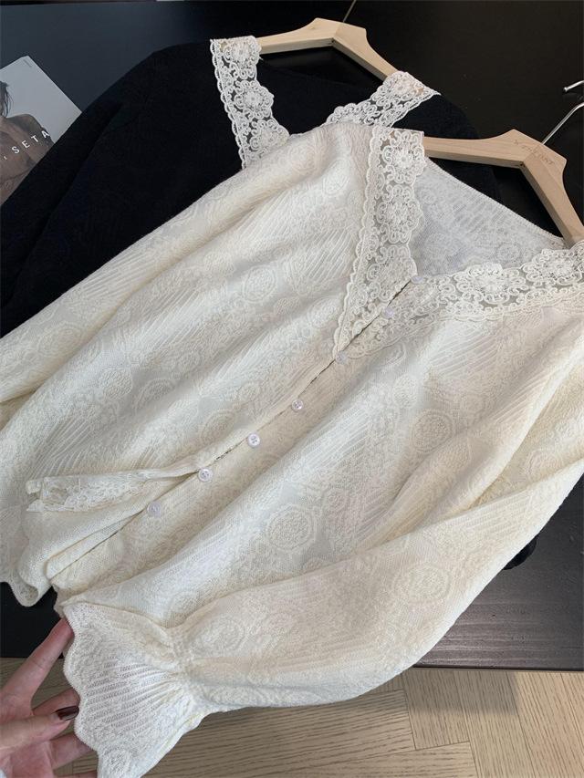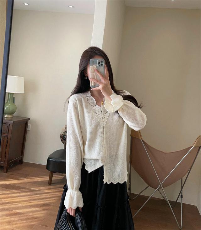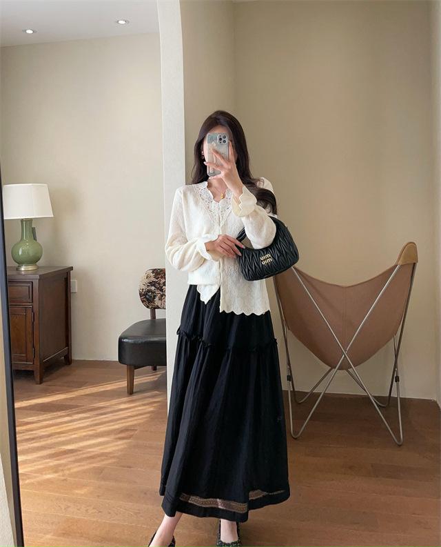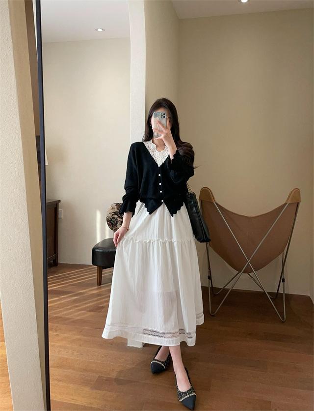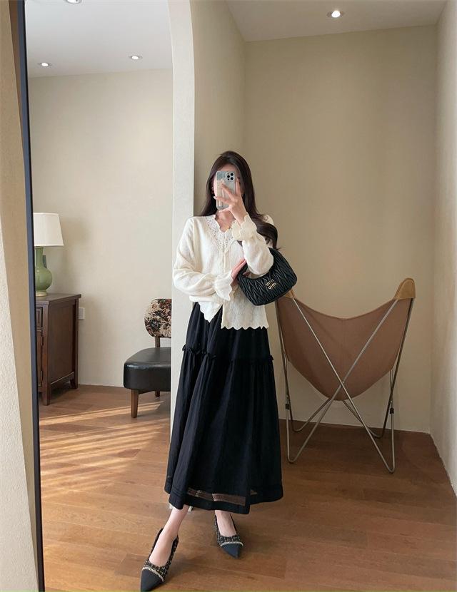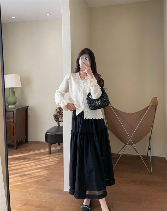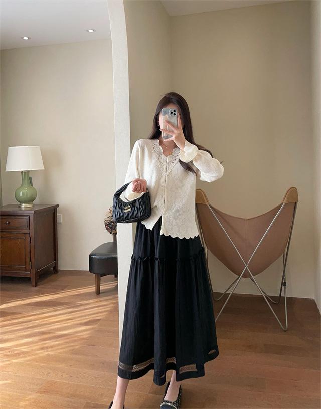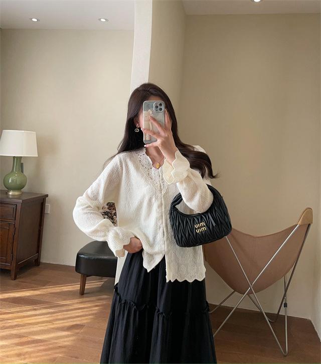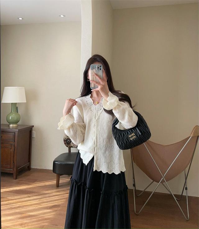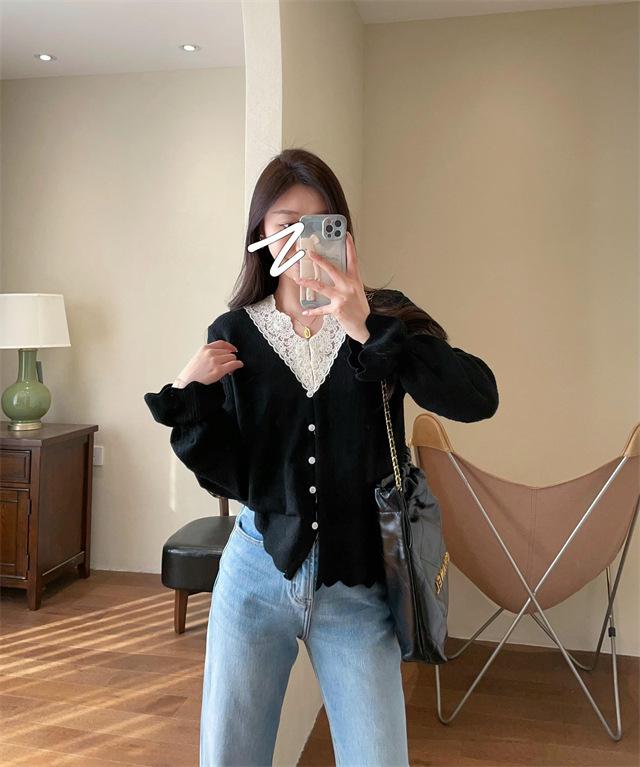 El suéter con costura de encaje muestra tu temperamento elegante.