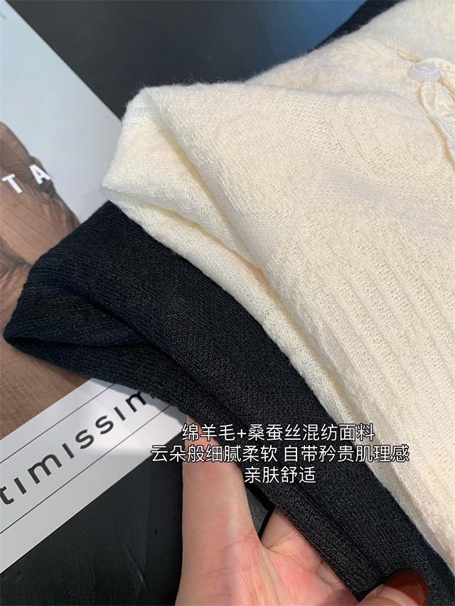 Toda la prenda está confeccionada con un tejido mixto de seda morera + lana + acrílico.
