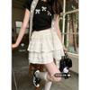 Falda Blanca Bordada Calada para Mujer, Falda Línea A de Cintura Alta, Estilo Petite de Largo Medio, Adelgazante, Fresca y Dulce