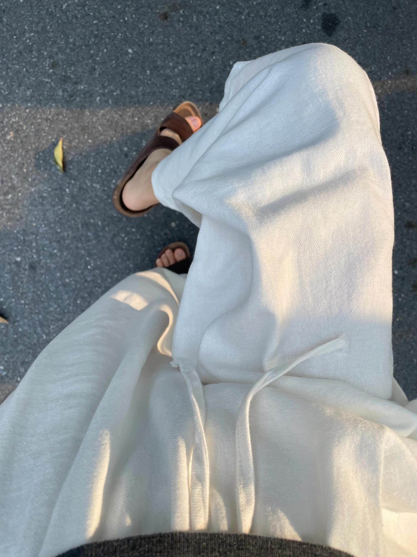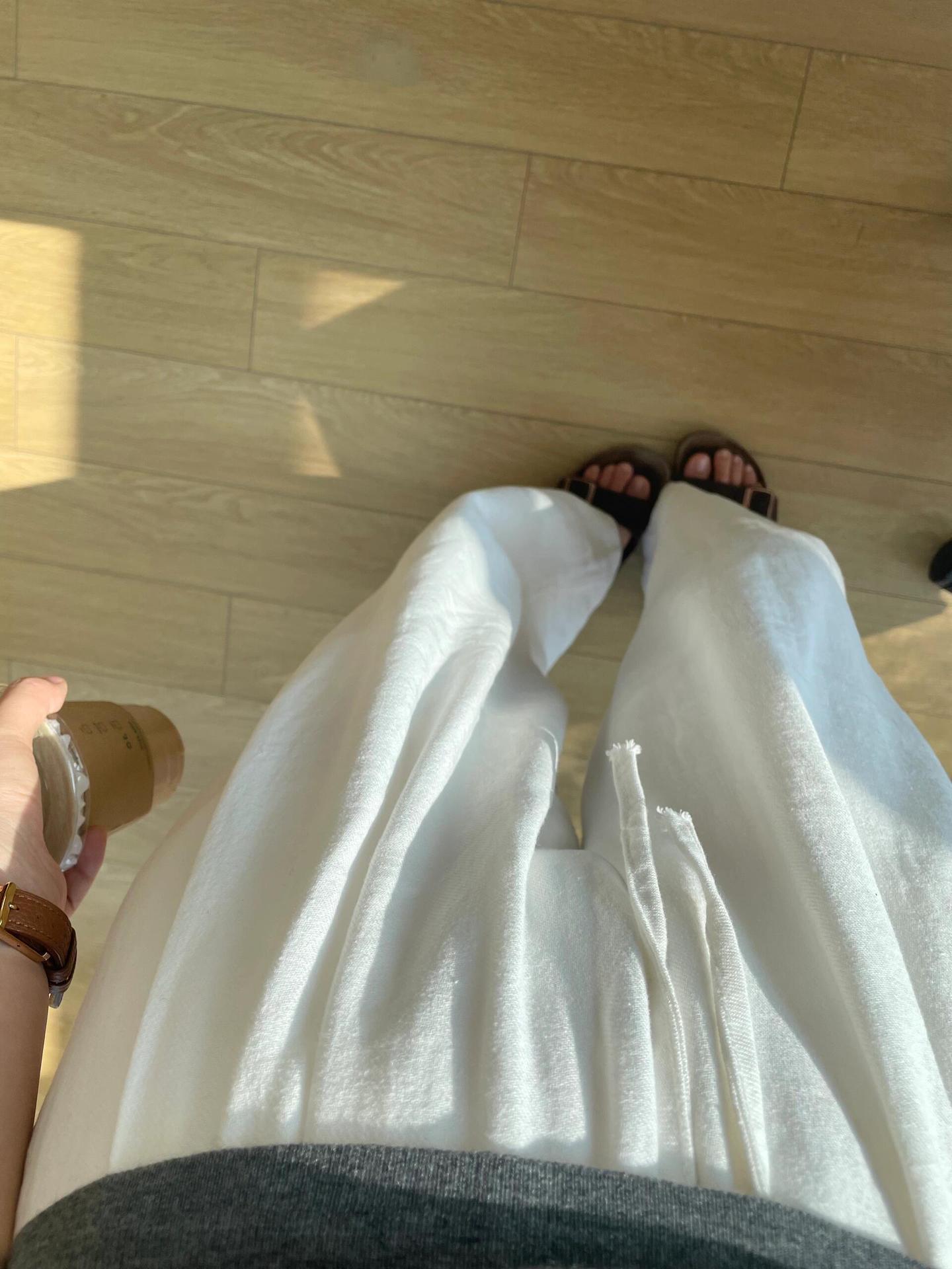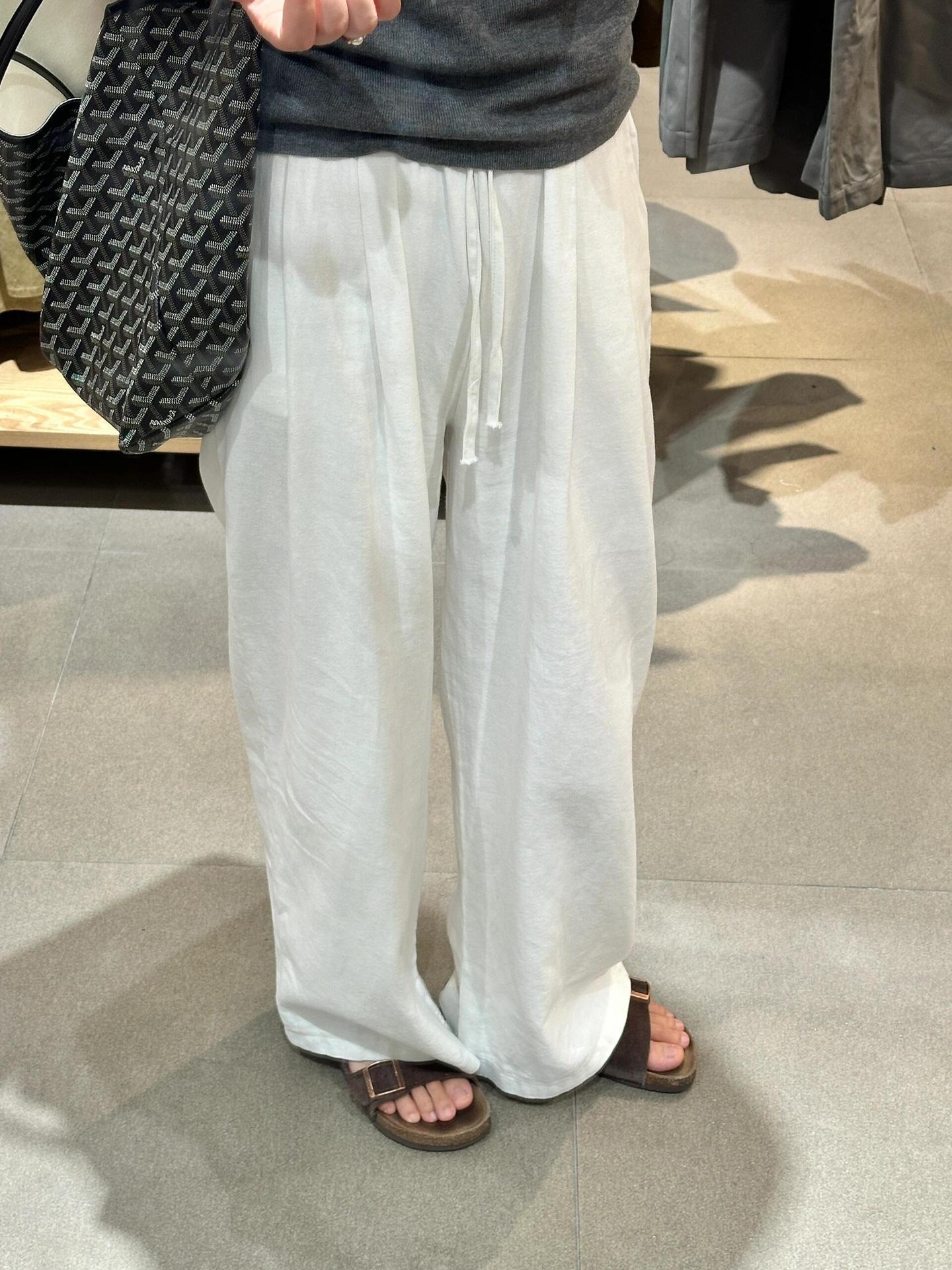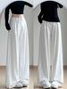 Pantalones anchos de algodón y lino blancos de primavera y verano para mujer, cintura elástica fina, suaves, cerosos, versátiles, casuales, sueltos y rectos, pantalones para mujer
