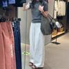 Pantalones anchos de algodón y lino blancos de primavera y verano para mujer, pantalones rectos holgados casuales versátiles con cintura elástica fina